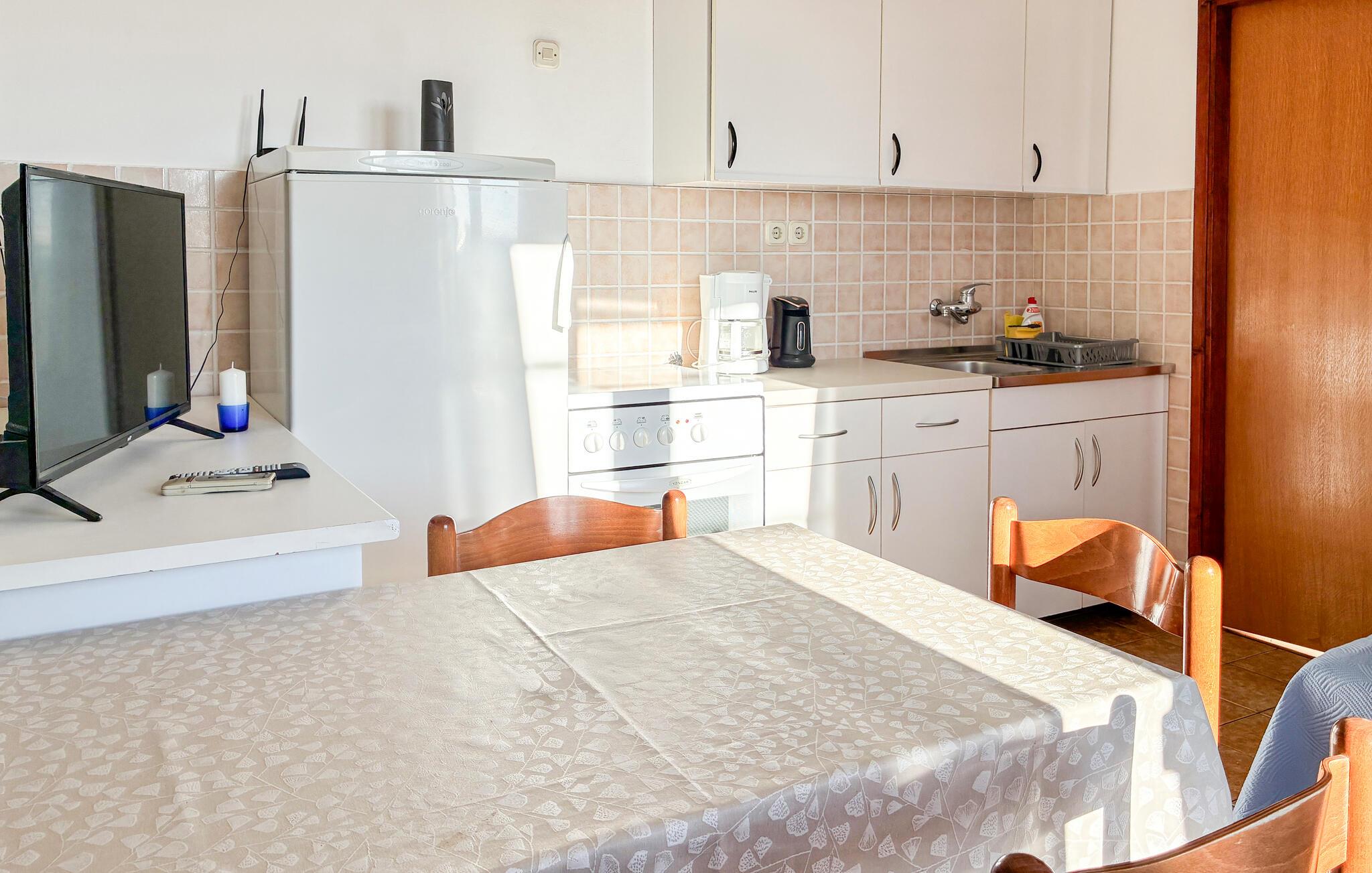 Denne lejlighed tilbyder alt, hvad I behøver for en afslappende ferie ved havet. Find jer til rette i sofaen med en kop kaffe, lyt til en interessant podcast eller spil kort med børnene. Tilbered friske måltider i det veludstyrede køkken og server dem med et glas vin.