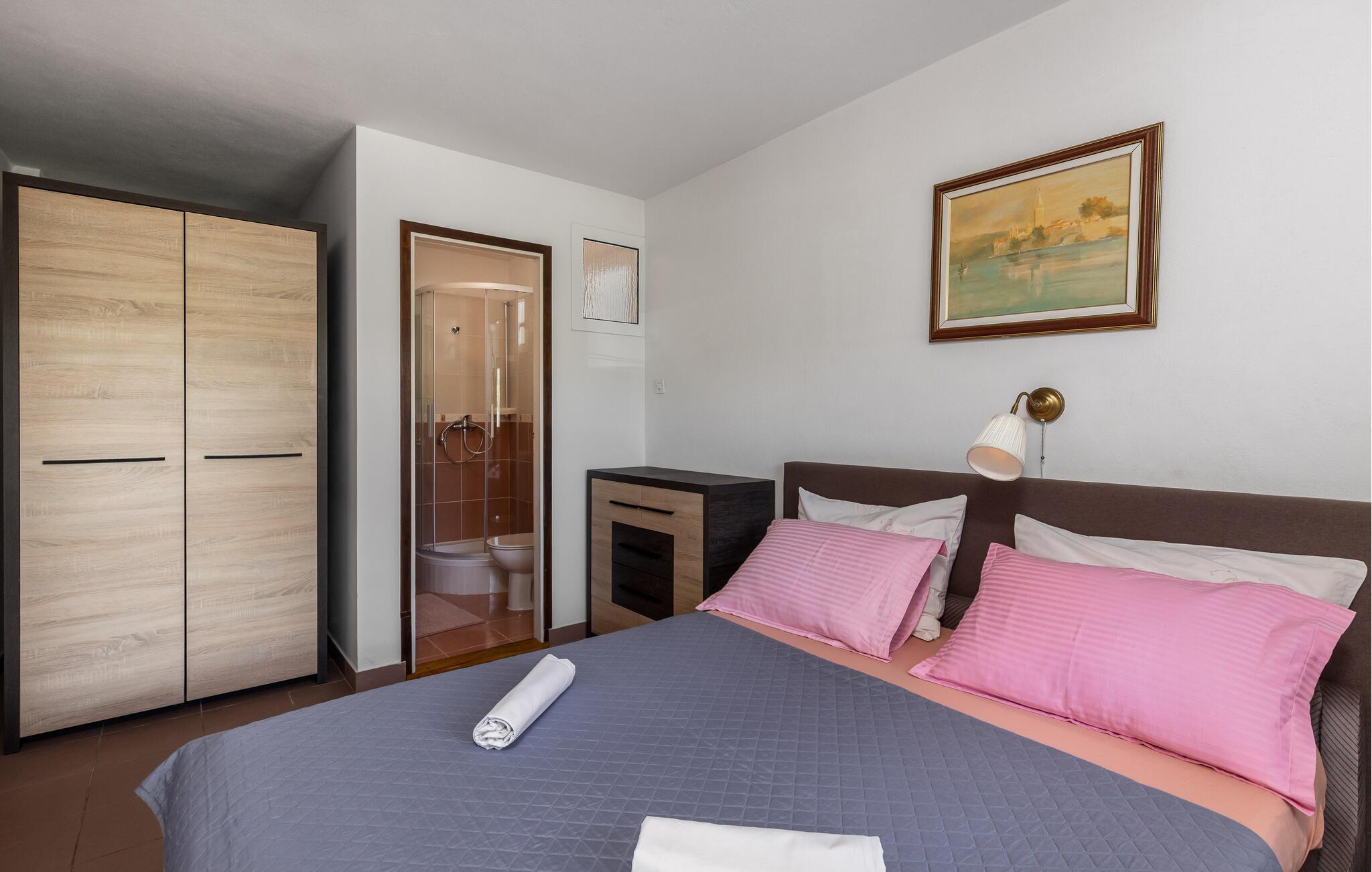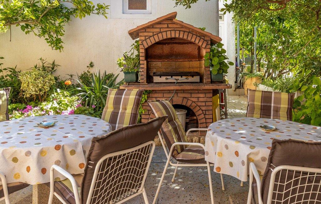 Denne lejlighed ligger i stueetagen i et dejligt hus og er ideel til en familie. I kommer til at bo tæt på stranden i et roligt område, så placeringen er helt perfekt. Der er hyggelige forhold indenfor, og hvis I gerne vil nyde solen uden at pakke en taske, kan I bare sætte jer ud på terrassen. Tænd op i fællesgrillen og tilbered noget lækkert fra Kroatiens rige udvalg af råvarer.