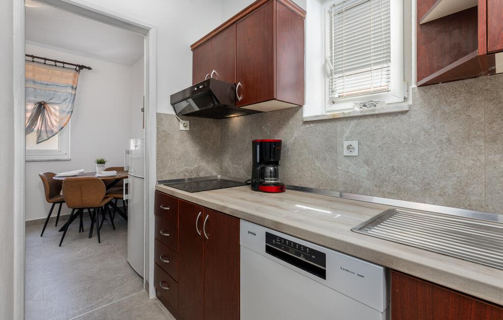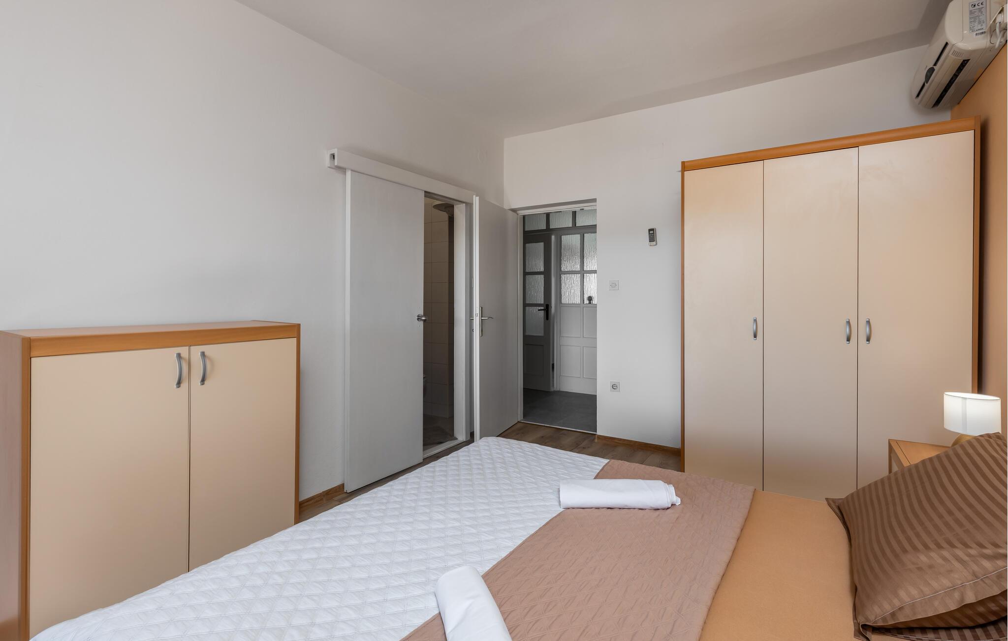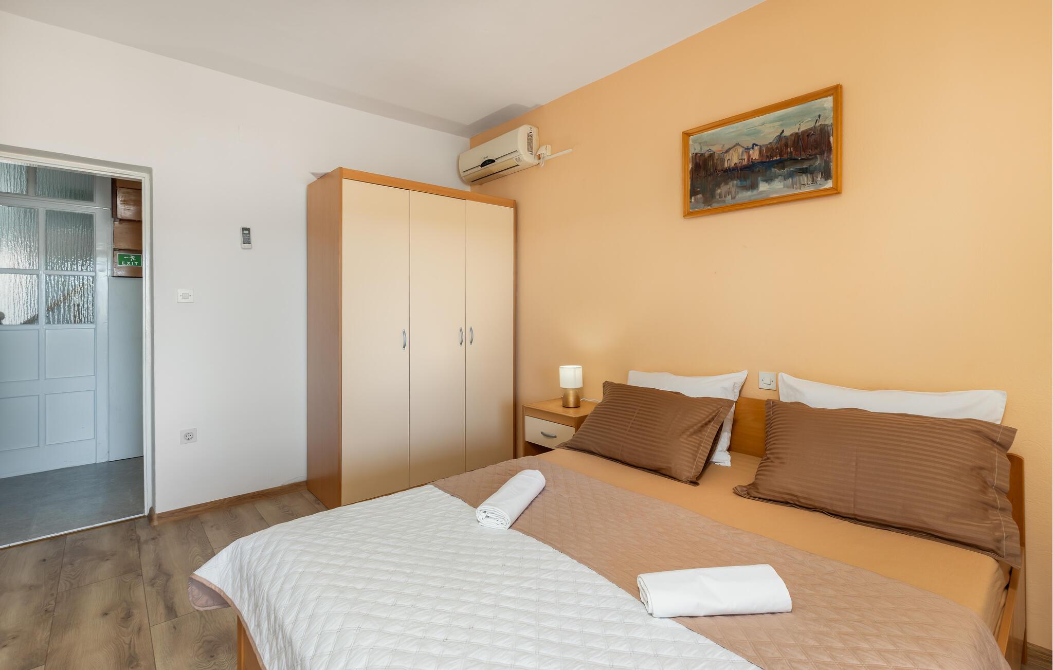 Denne lejlighed ligger placeret på 1. sal og er ideel til en familie. I kommer til at bo tæt på stranden i et roligt område, så placeringen er helt perfekt. Der er hyggelige forhold indenfor, og hvis I gerne vil nyde solen uden at pakke en taske, kan I bare sætte jer ud på altanen. Herfra kan I se ned til havet, som I kan gå til på bare to minutter. Tænd op i fællesgrillen og tilbered noget lækkert fra Kroatiens rige udvalg af råvarer.