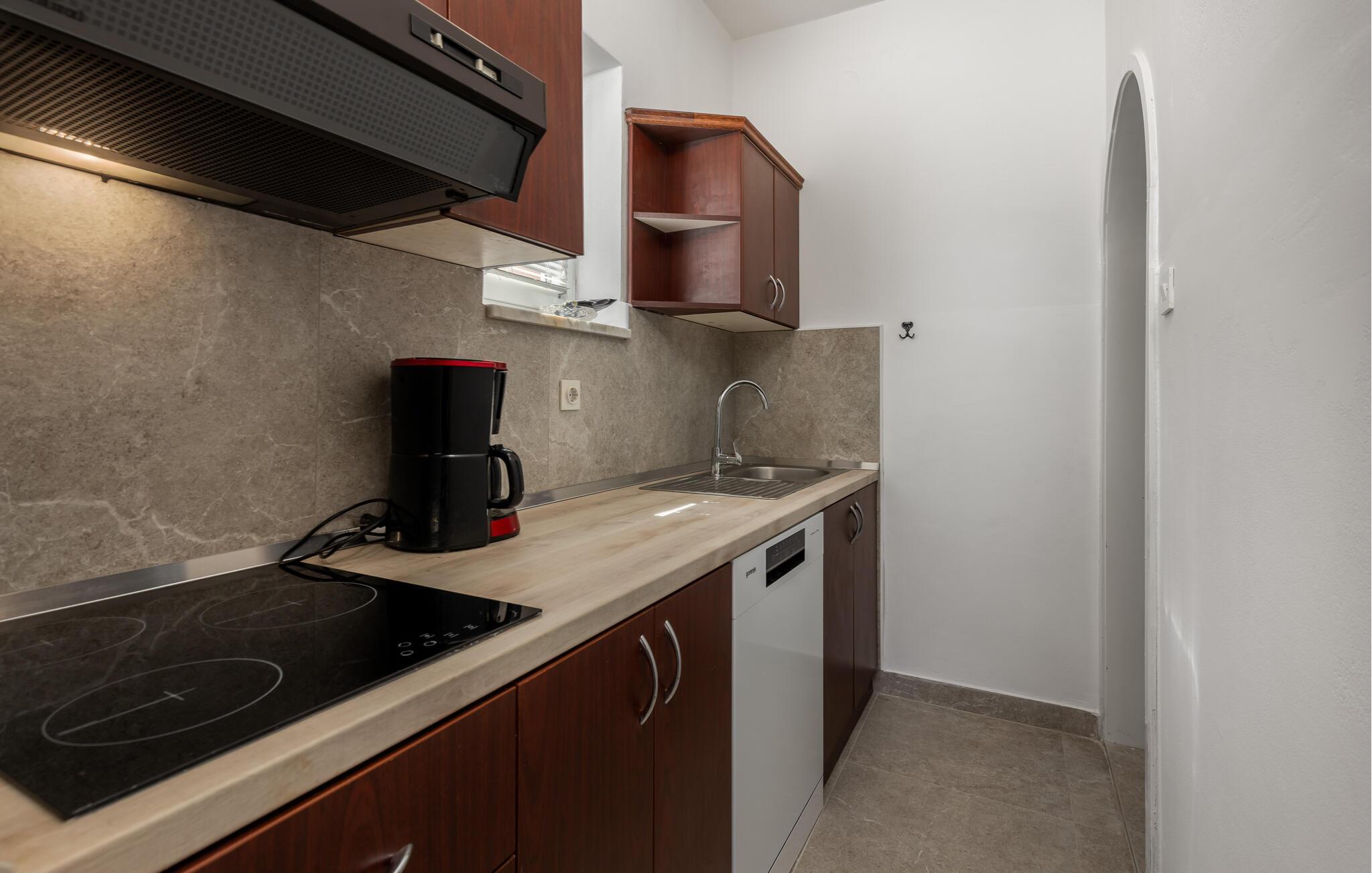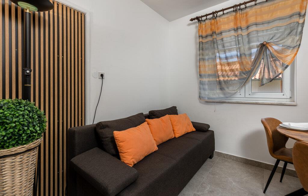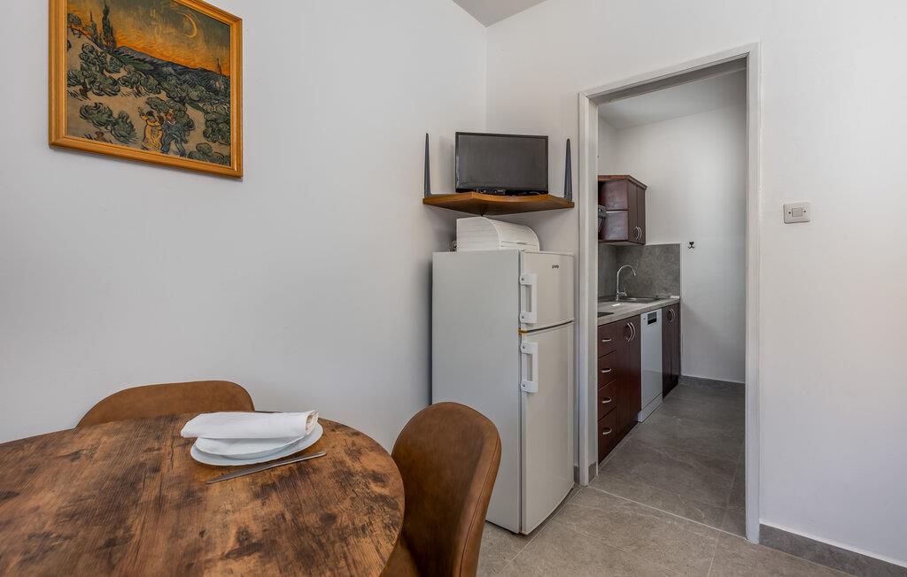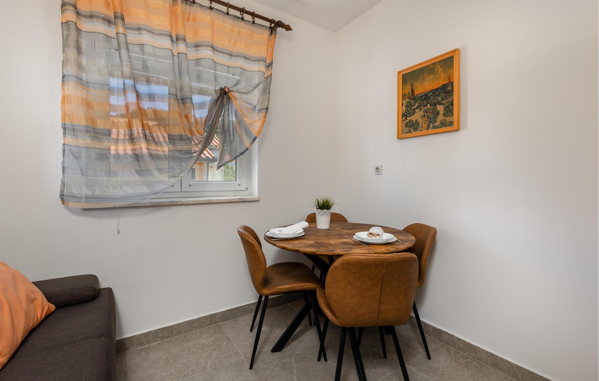 Denne lejlighed ligger placeret på 1. sal og er ideel til en familie. I kommer til at bo tæt på stranden i et roligt område, så placeringen er helt perfekt. Der er hyggelige forhold indenfor, og hvis I gerne vil nyde solen uden at pakke en taske, kan I bare sætte jer ud på altanen. Herfra kan I se ned til havet, som I kan gå til på bare to minutter. Tænd op i fællesgrillen og tilbered noget lækkert fra Kroatiens rige udvalg af råvarer.