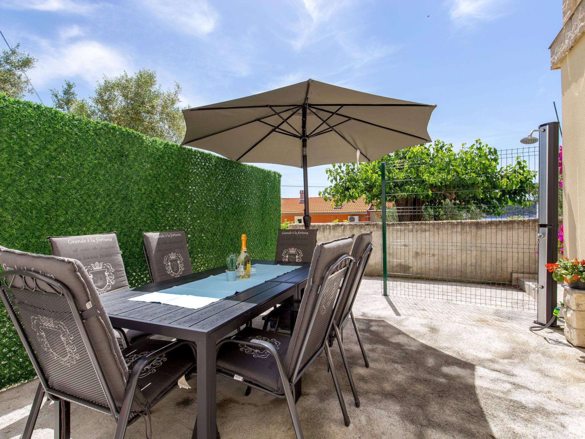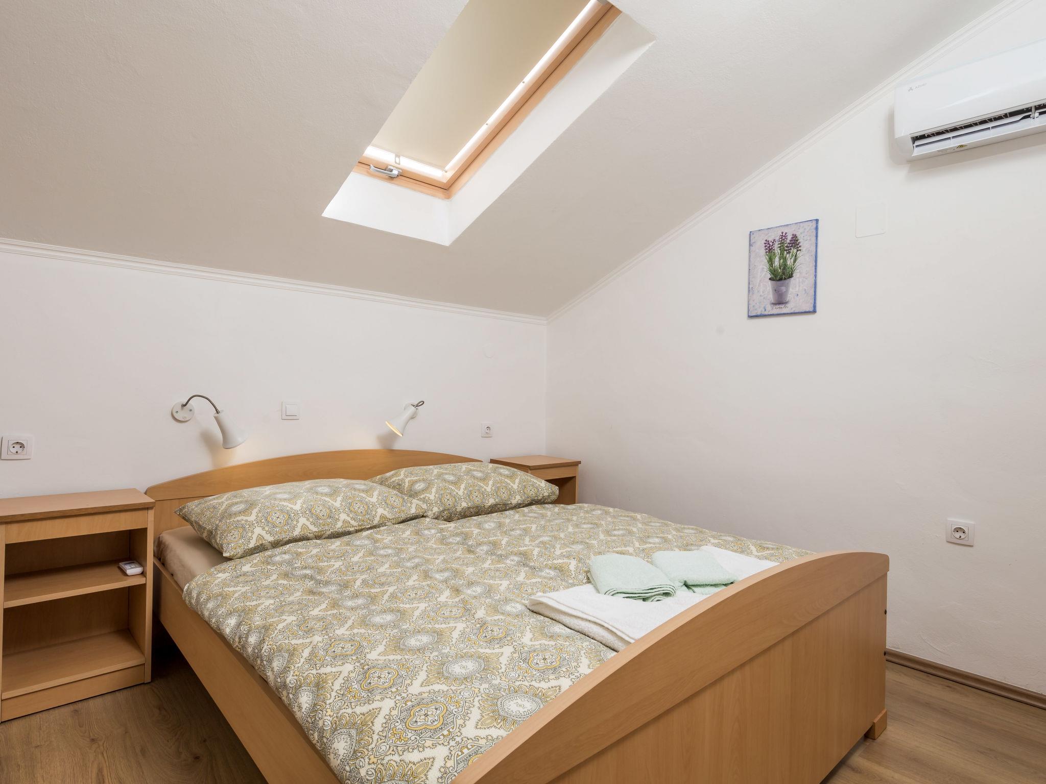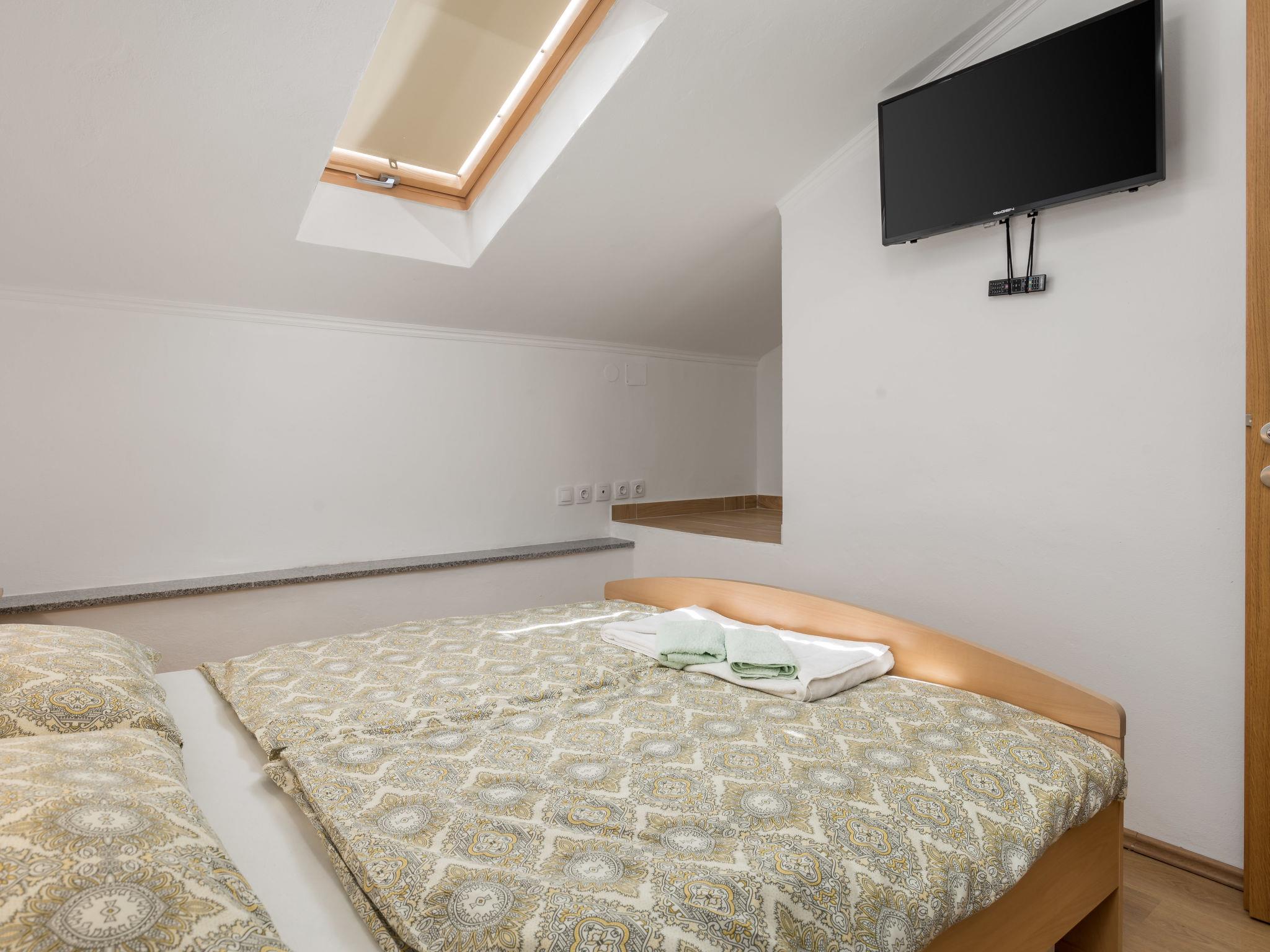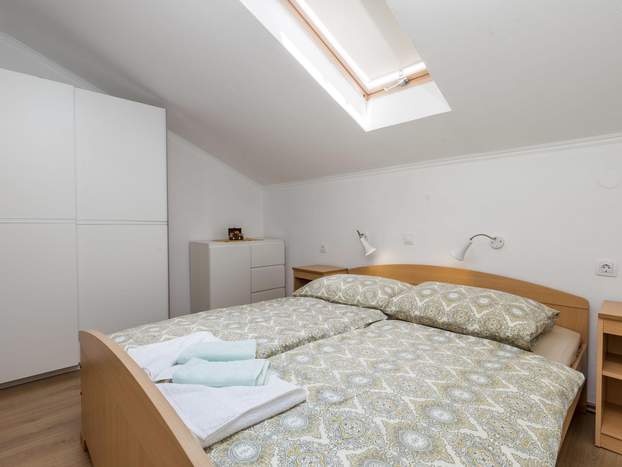 3-room terraced house 80 m2 on 3 levels. Object suitable for 4 adults + 1 child. Beautiful and modern furnishings: dining room. Open kitchen (oven, dishwasher, 4 induction hot plates, toaster, kettle, microwave, freezer, electric coffee machine). Shower/WC. Upper floor: living room with 1 sofabed (140 cm, length 220 cm), satellite TV. Exit to the terrace. Shower/WC. Top floor: 2 rooms with sloping ceilings, ceiling height 150 - 250 cm with rooflight, each room with 1 double bed (2 x 90 cm, length 200 cm), satellite TV. Forced-air heating. Terrace 20 m2, terrace 8 m2. Terrace furniture. Partial view of the sea. Facilities: safe, iron, children's high chair, baby cot (extra), hair dryer. Internet (WiFi, free). Please note: non-smoking house. Fire extinguisher. Max. occupancy: 4 adults, 1 child up to 12 years old.