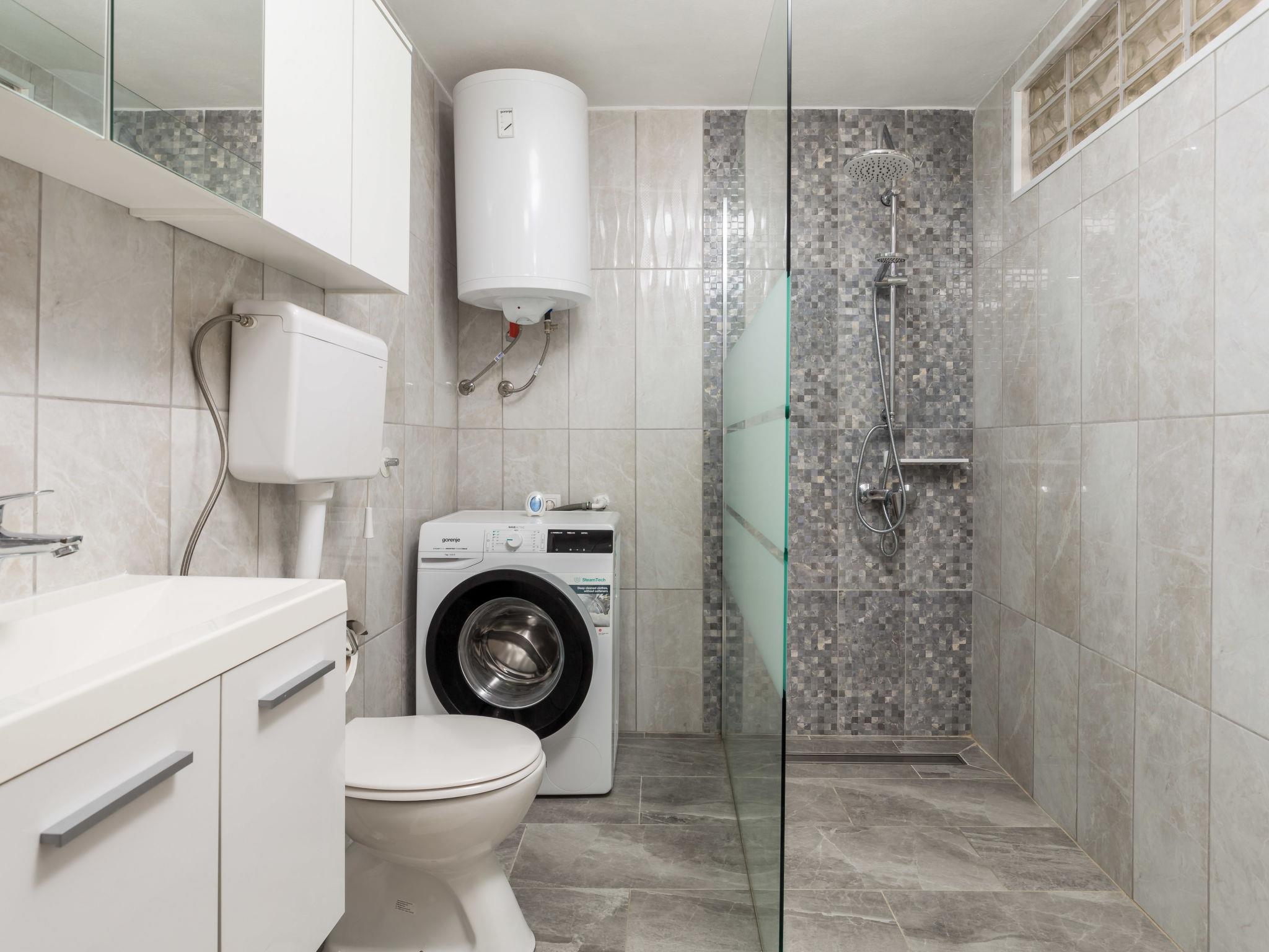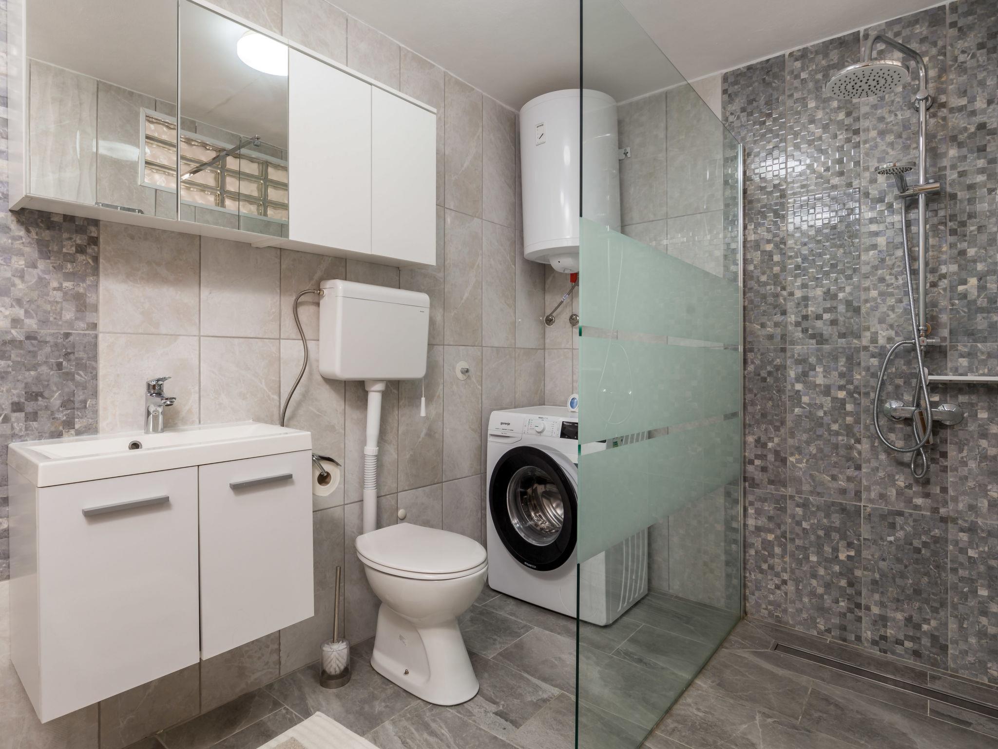 Barbat 4 km from Rab: Terraced house "Domy", 3 storeys, renovated in 2021. From the sea, 50 m from the beach. Private: outdoor shower, barbecue. In the house: internet access, air conditioning, washing machine. Parking (for 2 cars) at 50 m. Shop 200 m, restaurant 500 m, bus stop 2.3 km, ferry 7 km, pebble beach 50 m. Please note: private mooring (extra) on request.