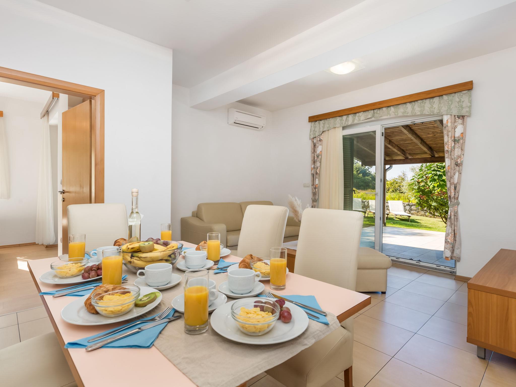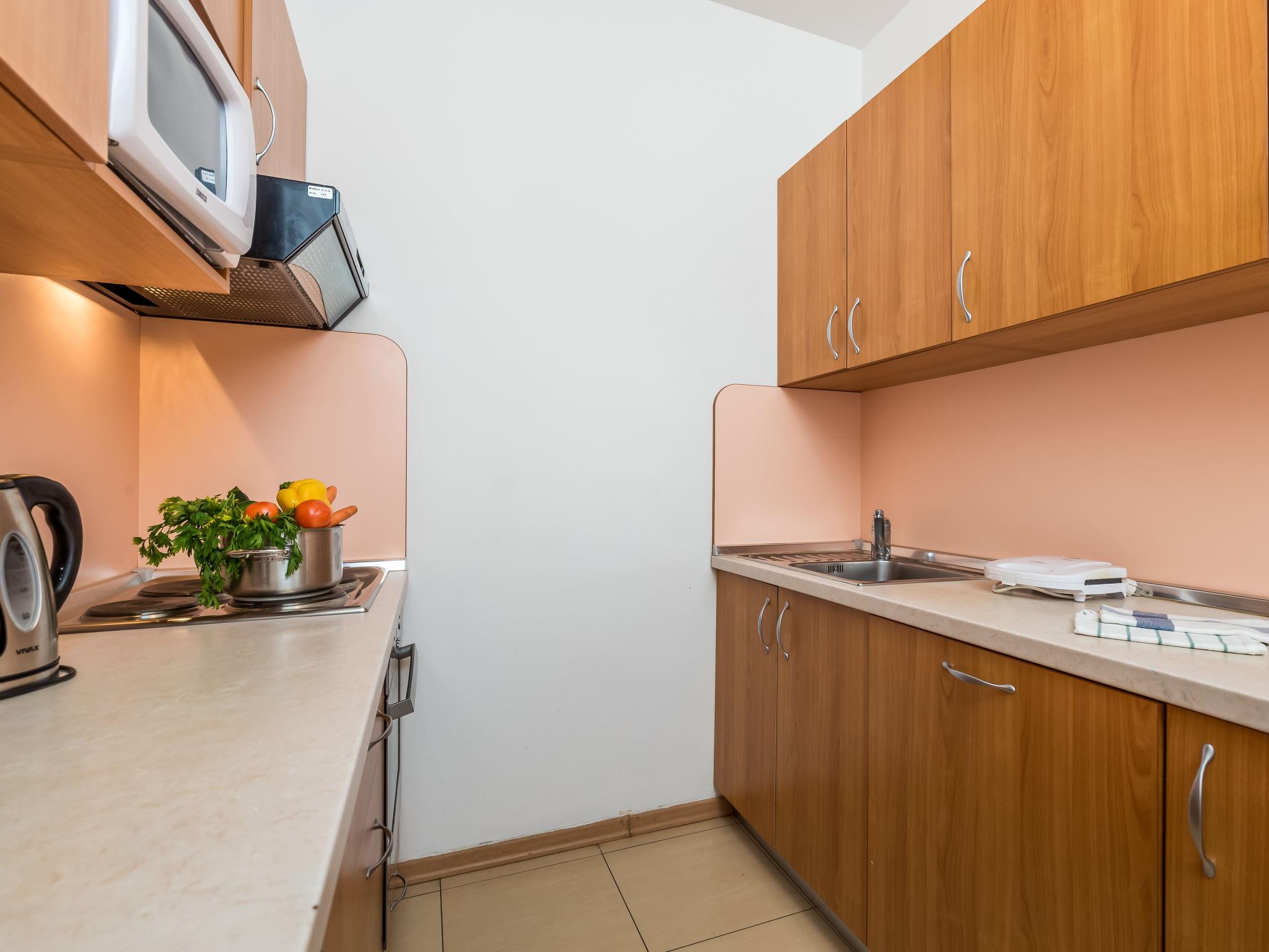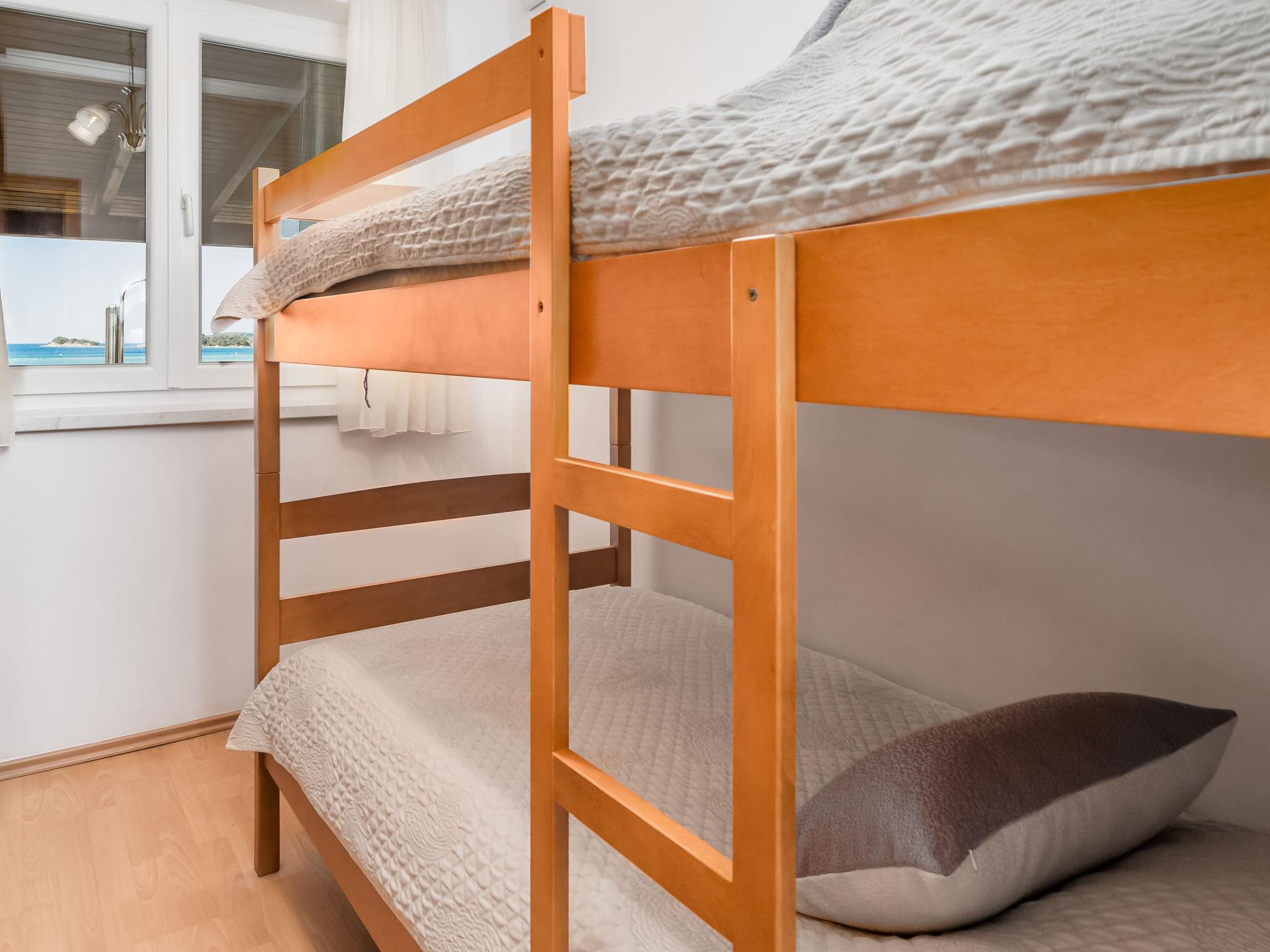 "Mare 2", 3-room apartment 50 m2, on the ground floor. Beautiful and modern furnishings: living/dining room 18 m2 with 1 double sofabed, satellite TV and air conditioning. Exit to the terrace. 1 room with 1 double bed (160 cm, length 200 cm). 1 room with 1 x 2 bunk beds. Open kitchen (4 hot plates, dishwasher, microwave, freezer). Shower/WC. Terrace 25 m2, roofed. Terrace furniture. Beautiful view of the sea. Facilities: safe. Internet (WiFi, free). Parking.