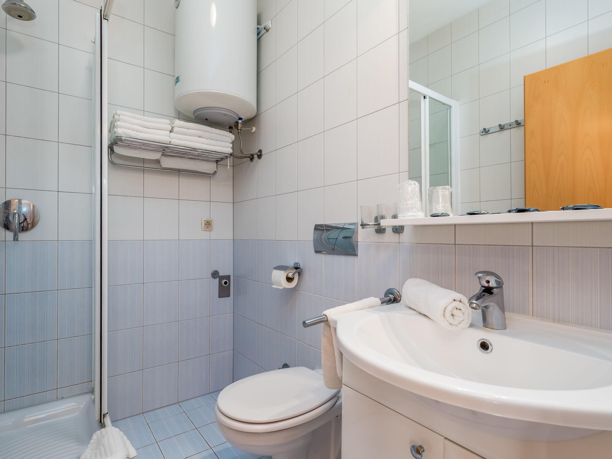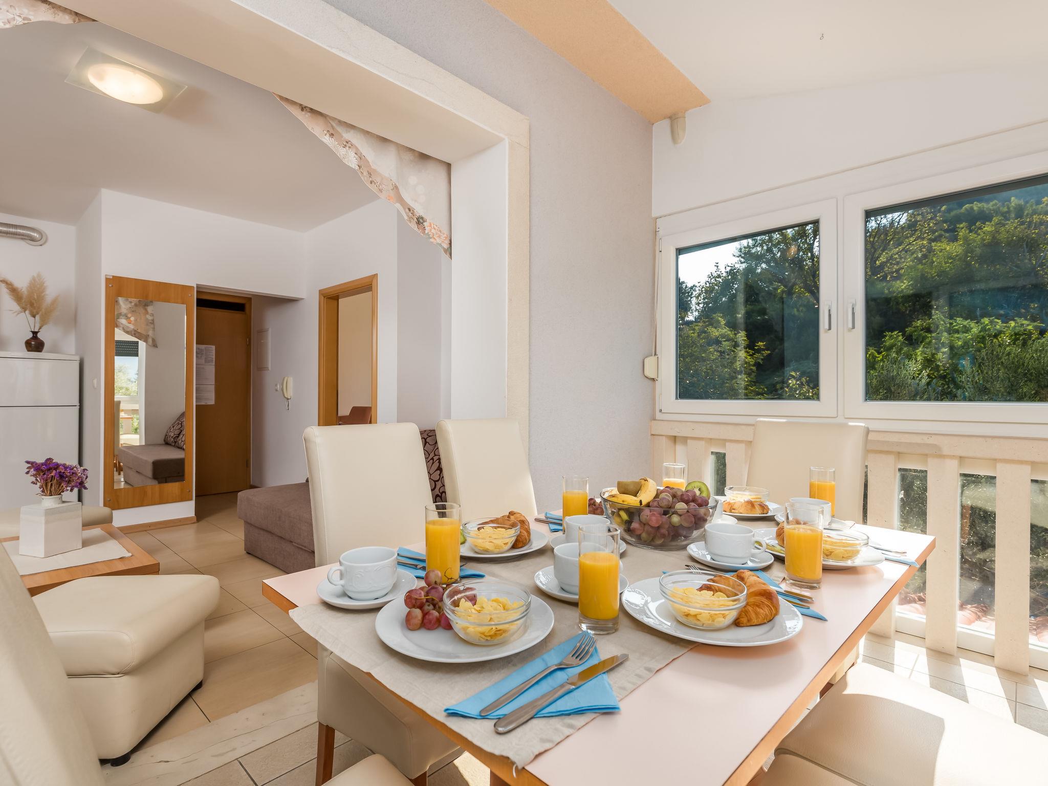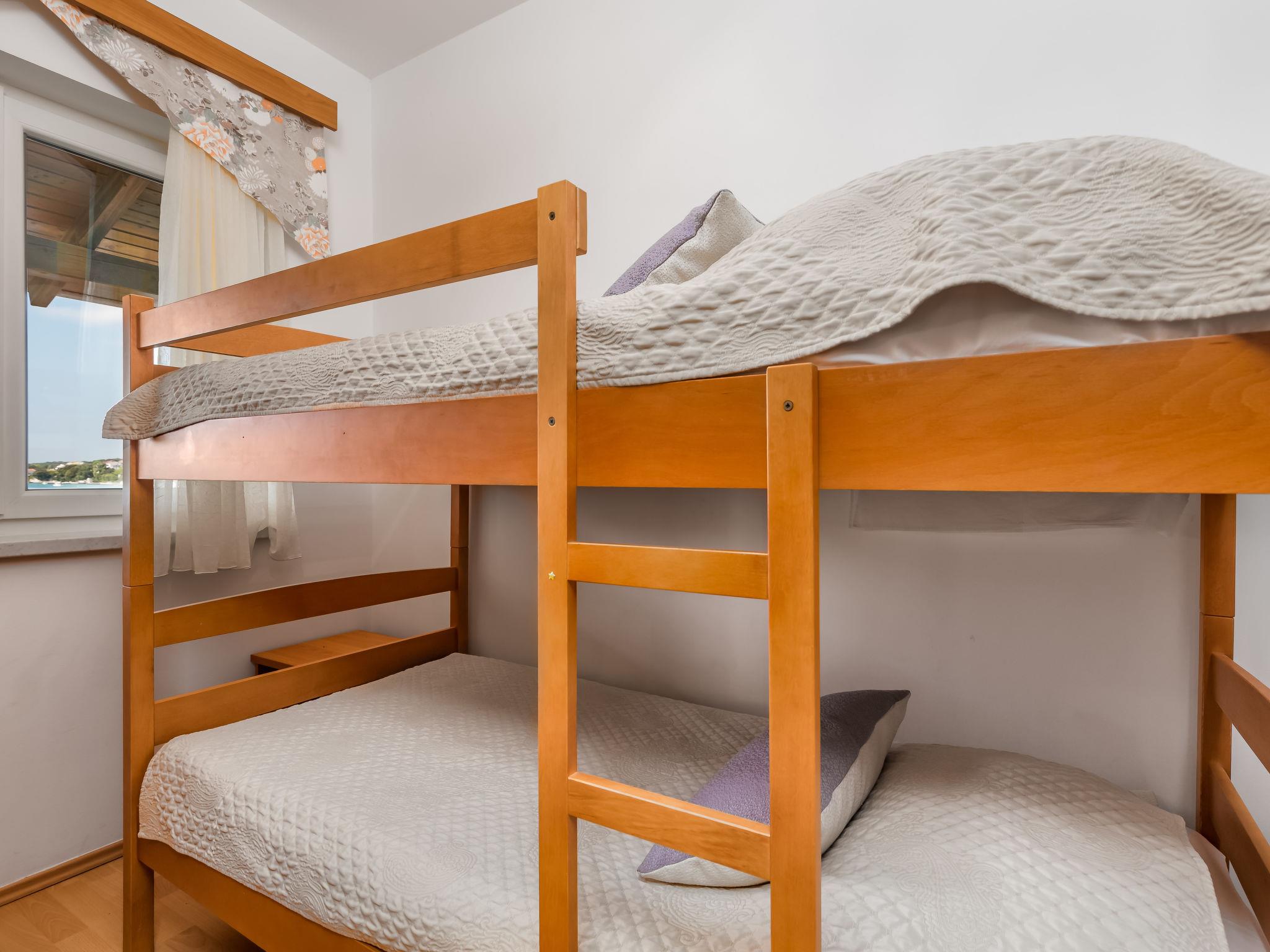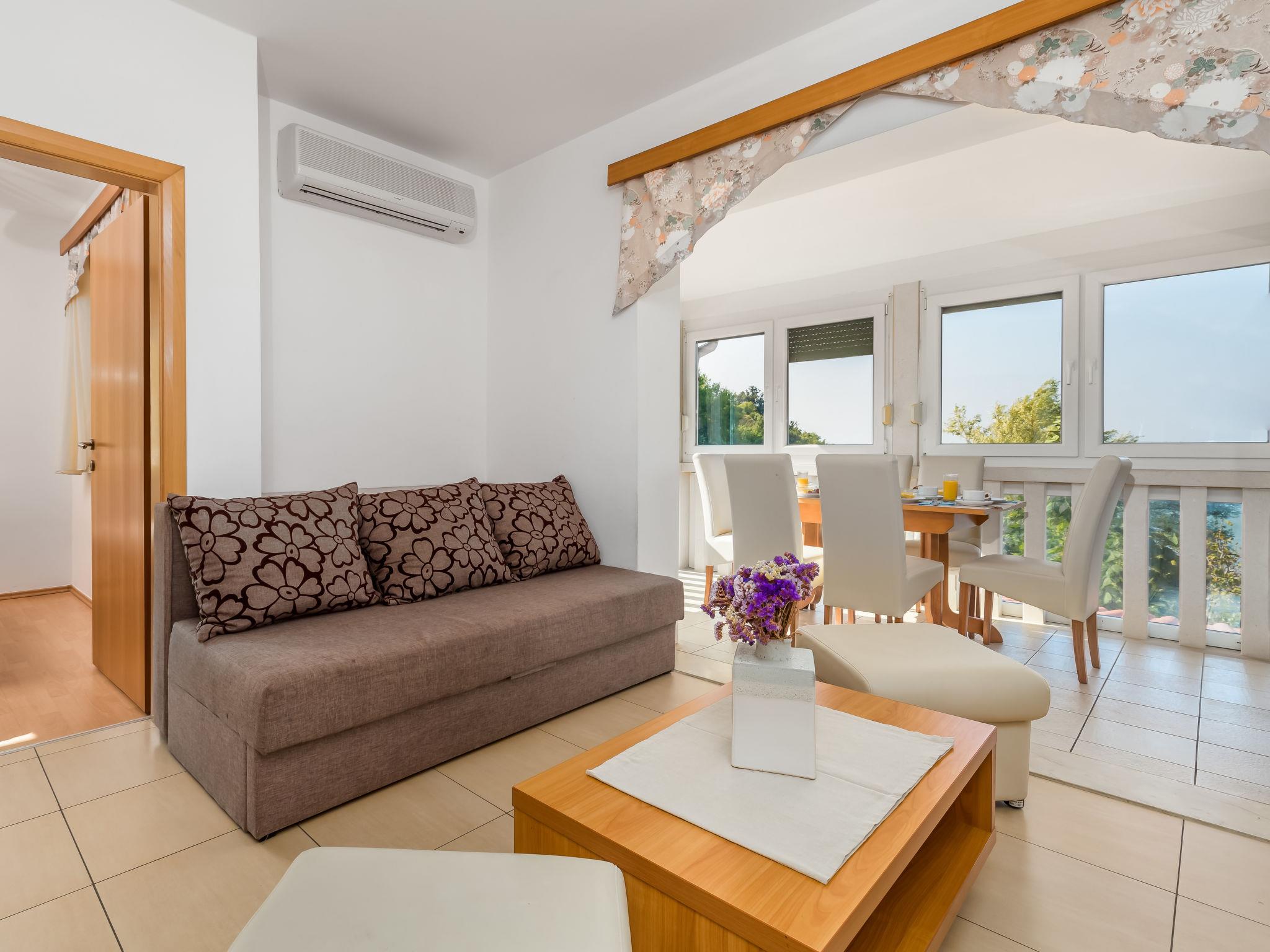 "Mare 6", 3-room apartment 50 m2 on 1st floor. Beautiful and modern furnishings: living/dining room 25 m2 with 1 double sofabed, satellite TV and air conditioning. Exit to the loggia. 1 room with 1 double bed (160 cm, length 200 cm). 1 room with 1 x 2 bunk beds. Open kitchen (4 hot plates, microwave, freezer). Shower/WC. Marvellous view of the sea. Facilities: safe. Internet (WiFi, free). Parking.