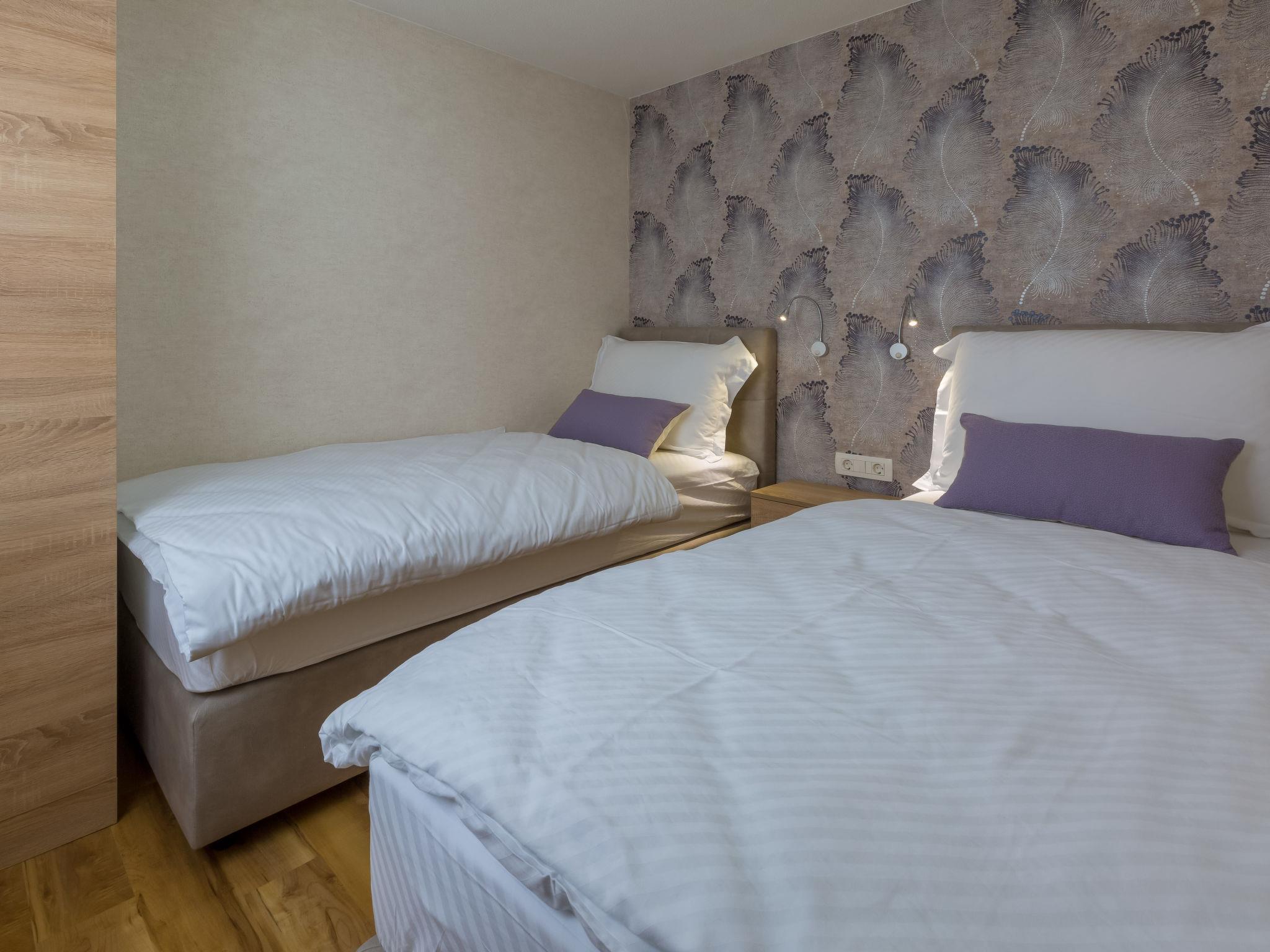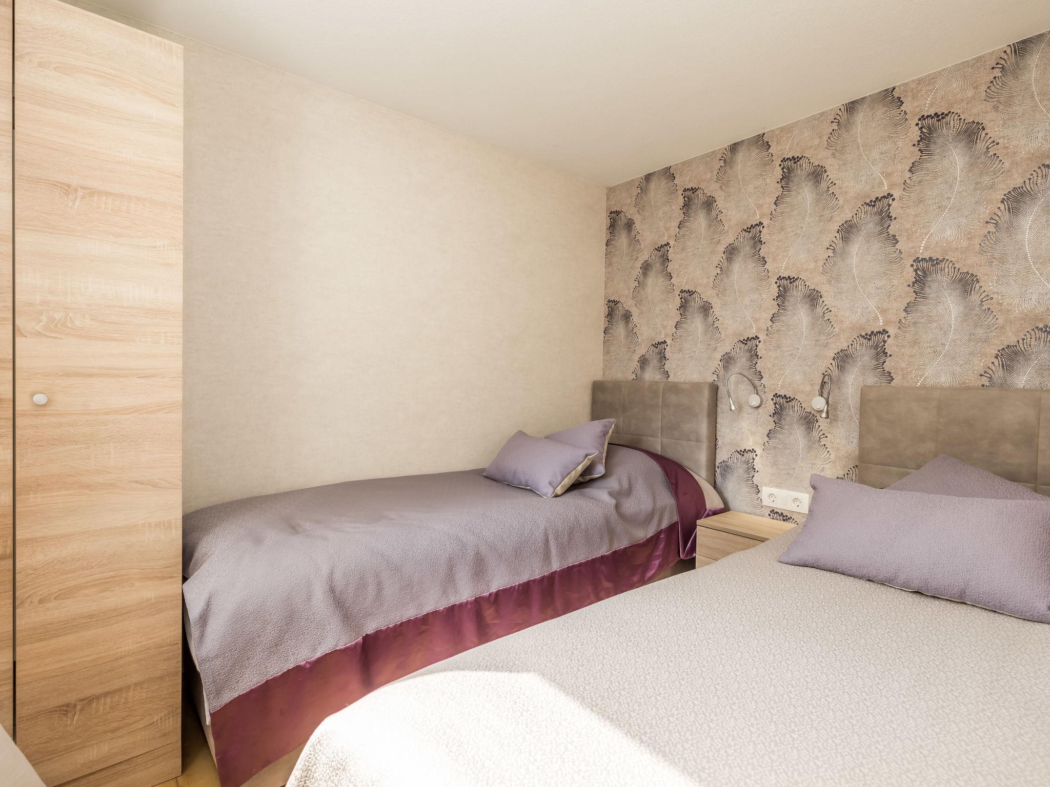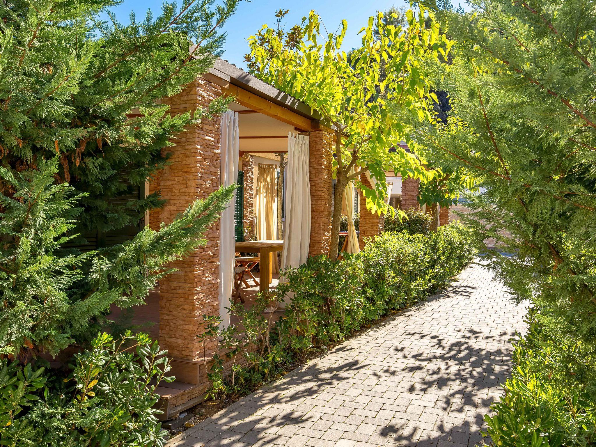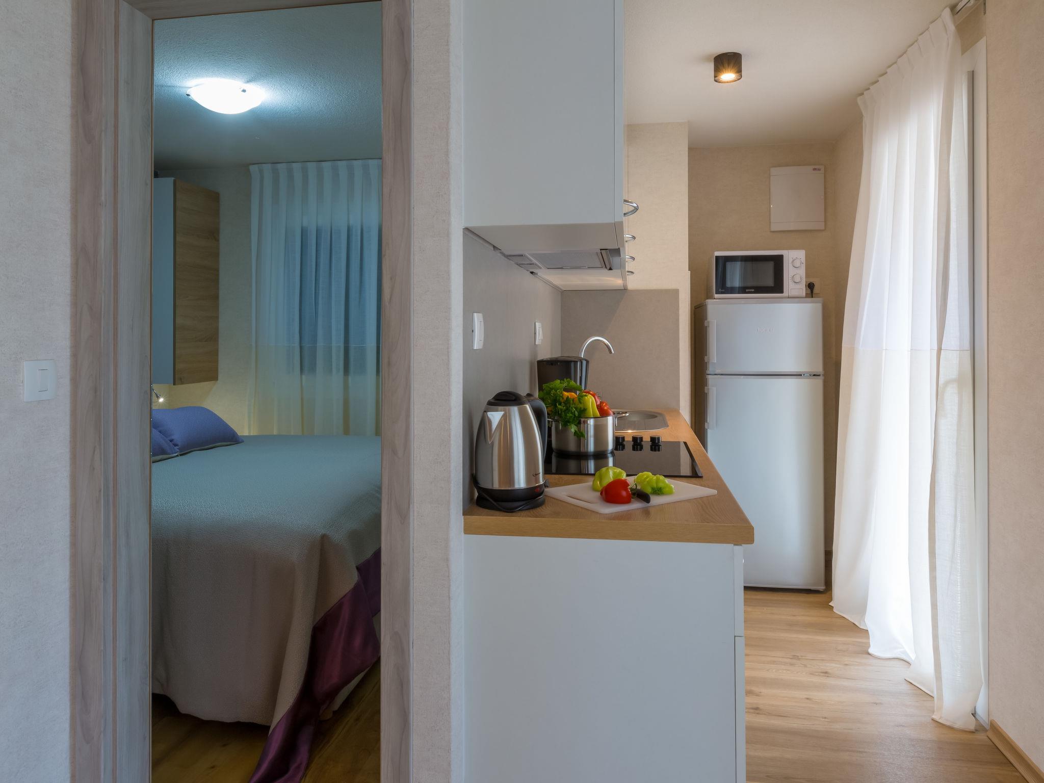 "Standard", 3-room house 40 m2. Living/dining room with 1 double sofabed (160 cm, length 200 cm), satellite TV (flat screen), air conditioning. Exit to the terrace. 1 room with 1 french bed (160 cm, length 200 cm), shower/WC. 1 room with 2 beds (90 cm, length 200 cm). Open kitchen (dishwasher, 2 ceramic glass hob hotplates, microwave, freezer). Shower/WC. Terrace 20 m2. Terrace furniture. Facilities: hair dryer. Internet (WiFi, free).