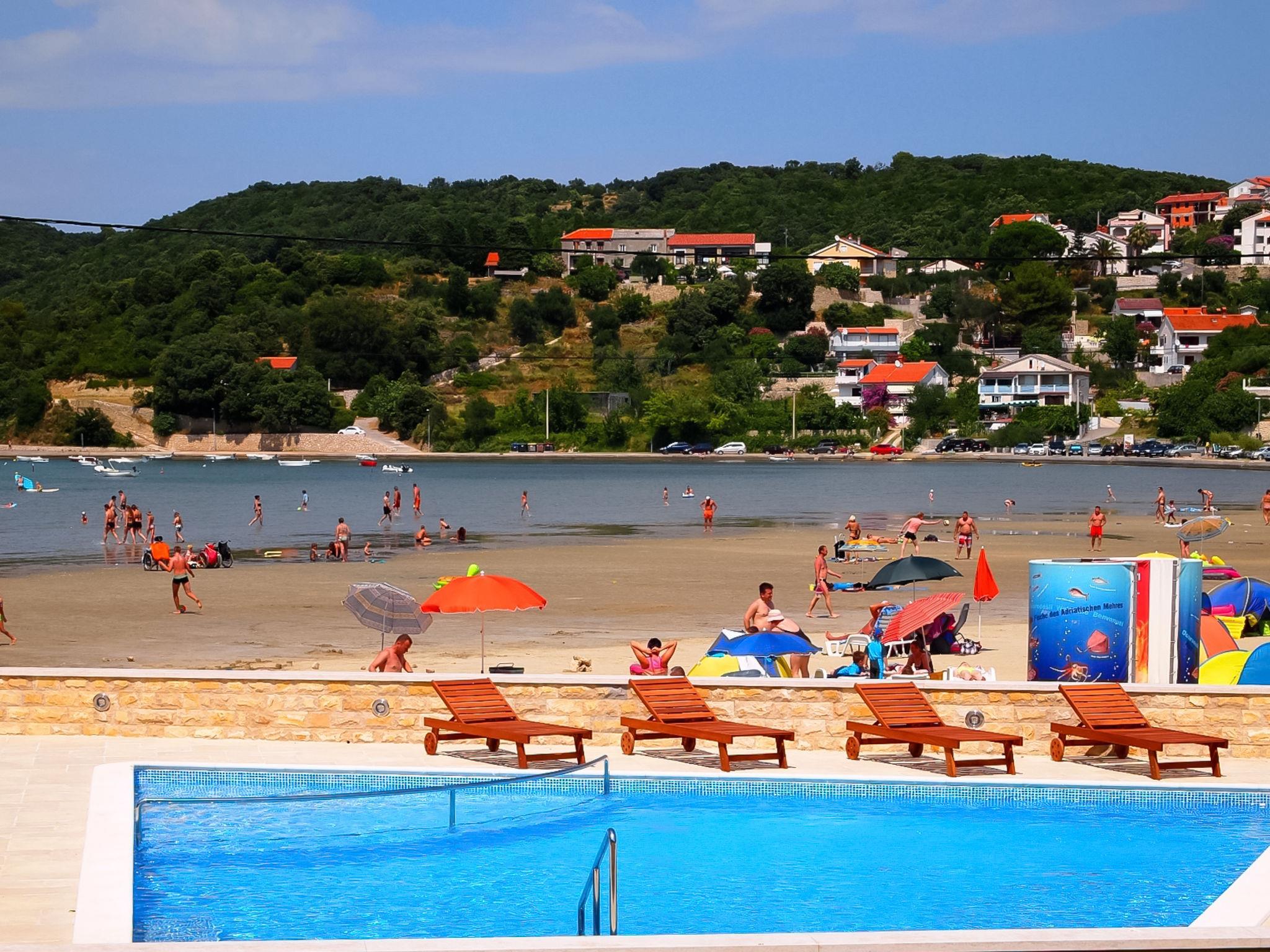 Kampor 7 km from Rab: Small, beautiful holiday village "Camping Lando". 11 houses in the resort. In a quiet, sunny position, at the seaside, on the beach. For shared use: 2 swimming pools angular heated (10 x 8 m, 80 m2, depth 120 - 160 cm, seasonal availability: 13.May. - 30.Sep.) with internal staircase. Outdoor shower. In the complex: reception, internet access. Parking on the premises. Shop 500 m, restaurant, bar, café 50 m, bus stop 2.4 km, sandy beach "Lando". Please note: the photograph shows a typical example. The houses are situated 30 - 50 m from the sea and the sandy beach, 10 - 30 m from the swimming pool.