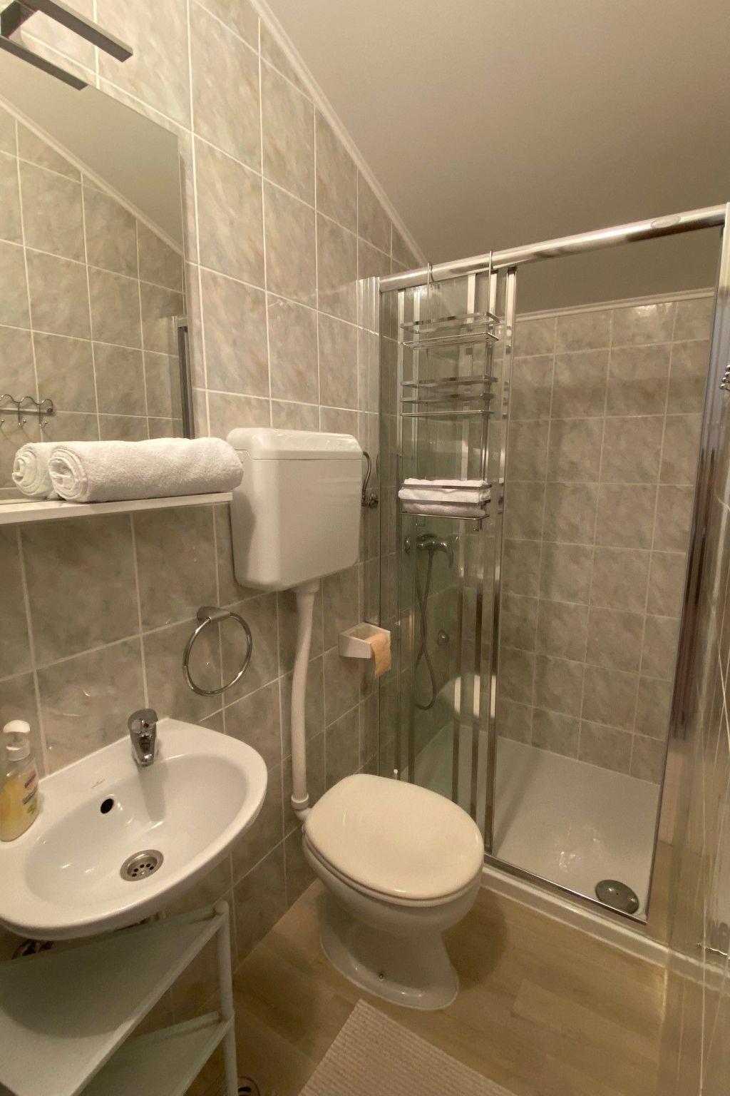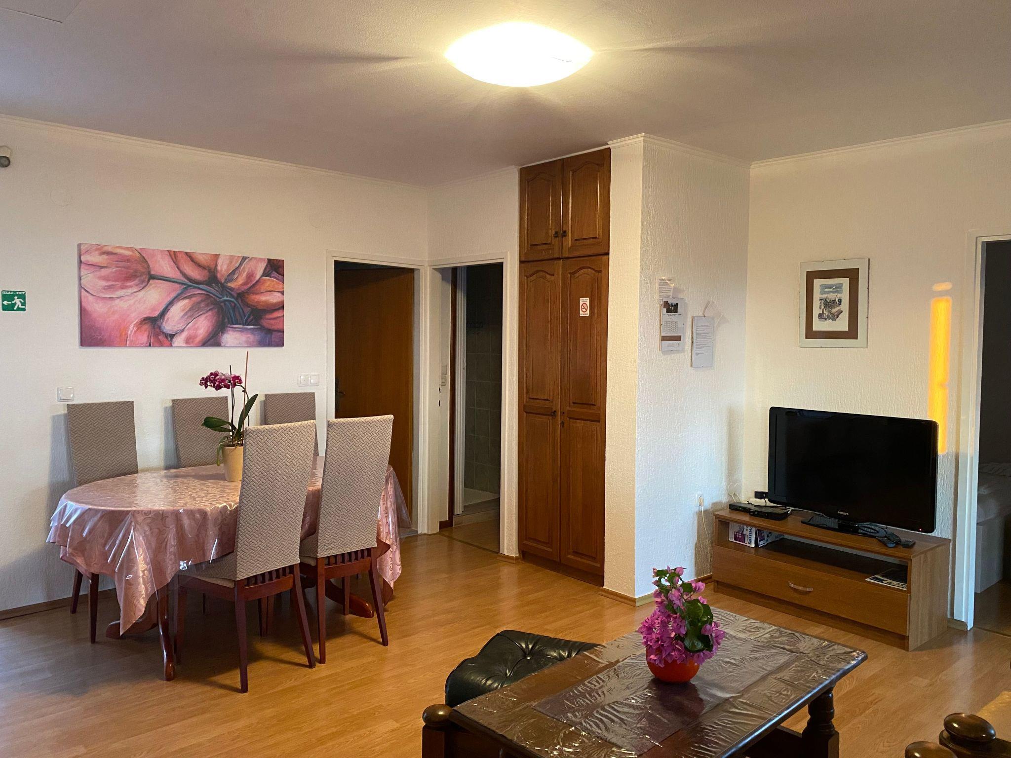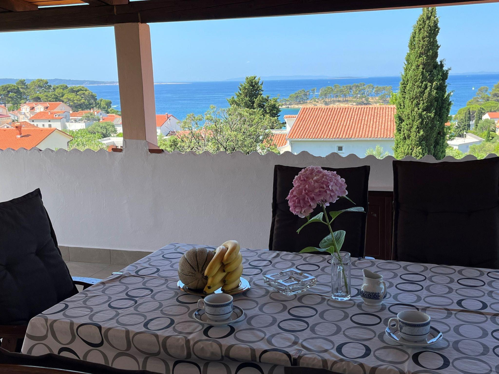 The 125 m² apartment has three bedrooms each with a double bed. A supplementary bed can also be added to two of the bedrooms. The kitchen is fully-equipped with a four-ring stove, oven, coffee machine, cutlery and crockery. The living and dining room has a sofa and a dining table with chairs for six to eight people. Satellite TV, air conditioning and Internet are available. There are two bathrooms with a bath or shower respectively. The terrace has a table, chairs and deckchairs and affords a wonderful view.