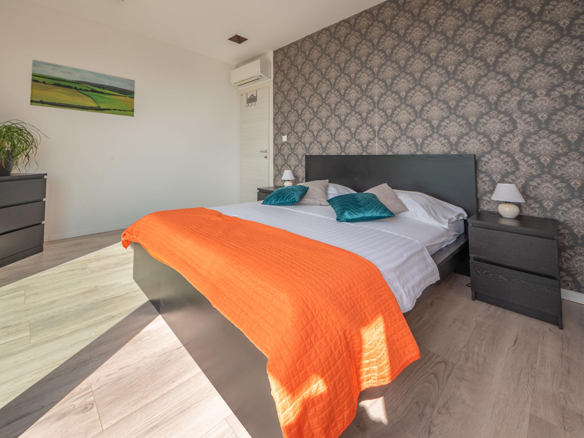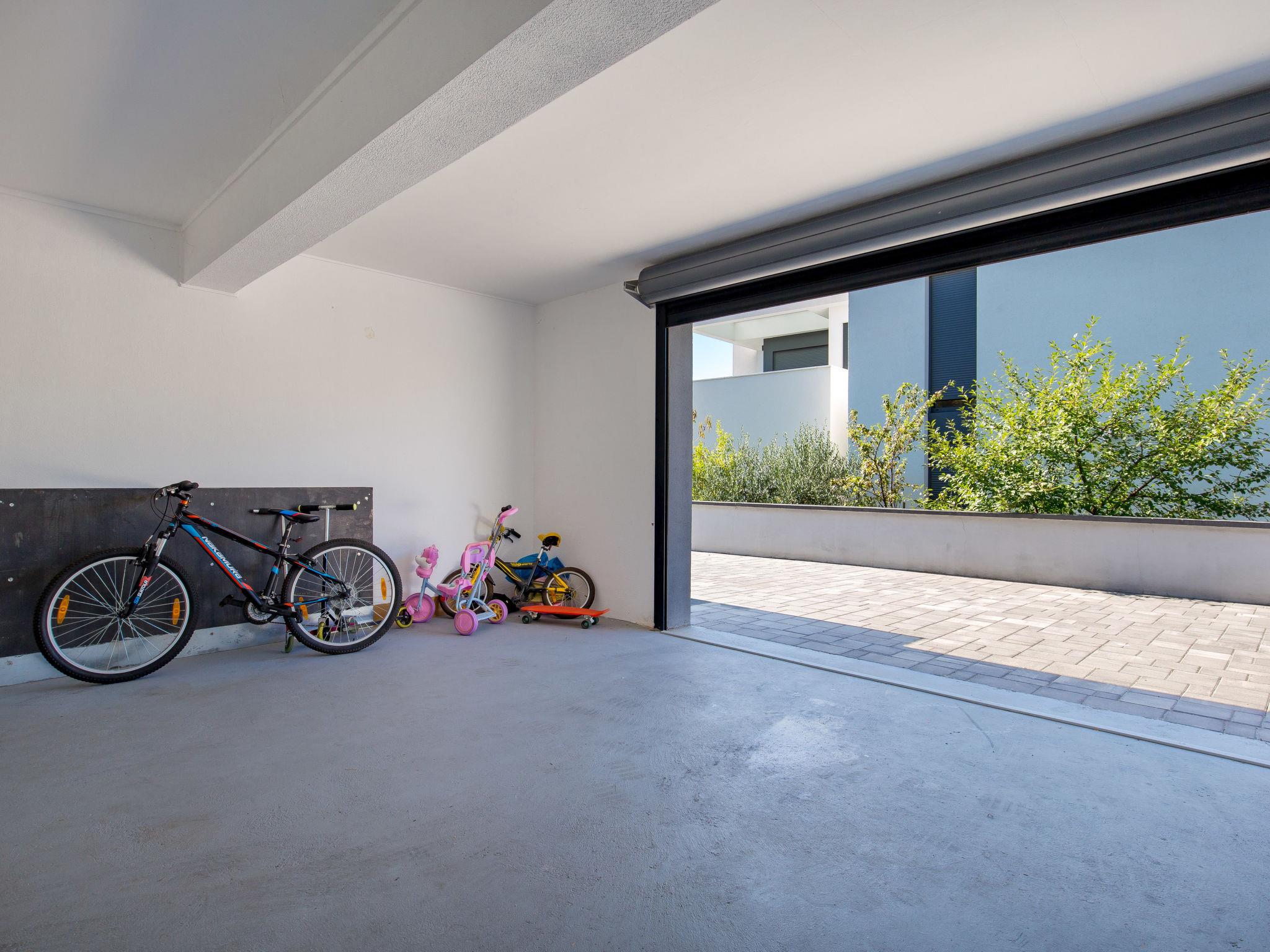 9-room villa 330 m2 on 3 levels, south facing position. Beautiful and modern furnishings: dining room with kitchen corner. Exit to the terrace. 1 room with 1 double bed (180 cm, length 200 cm), TV and international TV channels (flat screen), air conditioning. Exit to the terrace. Living/dining room with TV and international TV channels (flat screen), air conditioning. Exit to the terrace, to the swimming pool. Open kitchen (oven, dishwasher, 4 ceramic glass hob hotplates, microwave, freezer, electric coffee machine). Shower/bidet/WC, sep. WC. On the lower ground floor: playroom with shower/WC. Upper floor: 1 room with 1 french bed (160 cm, length 200 cm), air conditioning. 1 room with 1 french bed (160 cm, length 200 cm), air conditioning. Exit to the balcony. 1 room with 1 french bed (180 cm, length 200 cm), bath/bidet/WC and air conditioning. Exit to the balcony. 1 room with 1 bed (90 cm, length 200 cm), 1 pull-out bed (length 200 cm), air conditioning. (exterior staircase) living/dining room with 2 sofabeds (80 cm, length 190 cm), TV and international TV channels (flat screen), air conditioning. 1 room with 1 french bed (160 cm, length 200 cm). Open kitchen (oven, dishwasher, 4 ceramic glass hob hotplates). Shower/WC, shower/bidet/WC, double hand-basin. Heating. Heating available only from 01.10. to 01.05. 2 small balconies, 2 terraces 4 m2, terrace 50 m2 partly roofed. Terrace furniture, barbecue (portable), deck chairs. View of the sea. Facilities: children's high chair, baby cot, hair dryer. Internet (WiFi, free). Maximum 3 pets/ dogs allowed. The first apartment is on the ground floor with 1 bedroom, dining room and open kitchen. The second apartment on 2 levels with living/dining area, open kitchen on the ground floor and 4 bedrooms on the first floor. Third apartment on the first floor with living / dining area, open kitchen and 1 bedroom. Playstation available. Internet over fiber optic. Additional kitchen appliances: wine cooler, pressure cooker, bread maker, ice maker, air fryer.