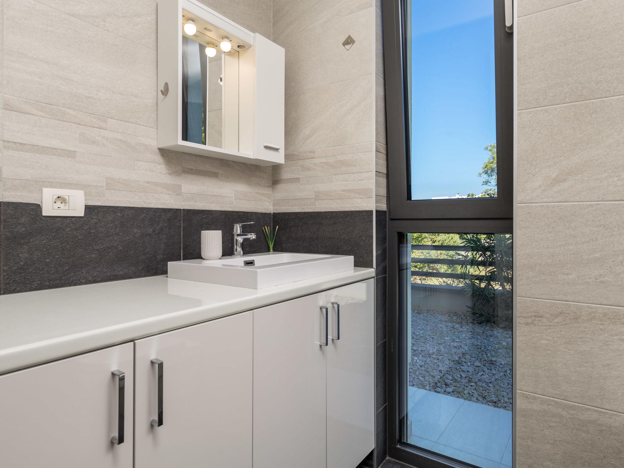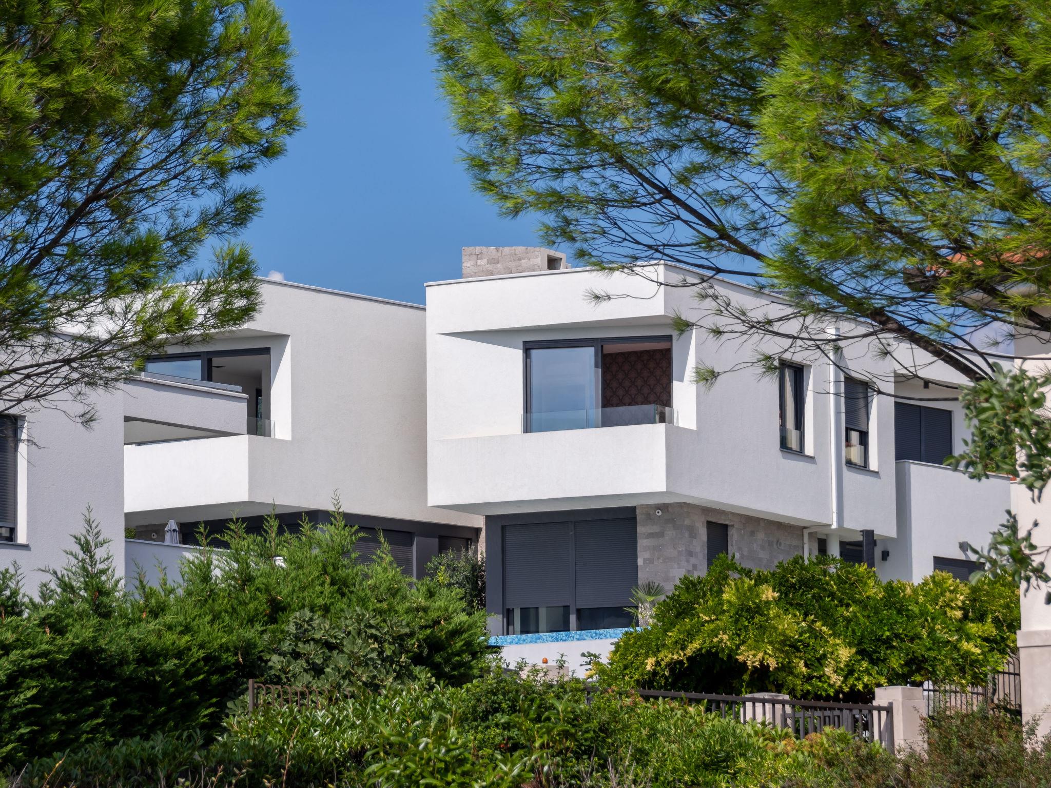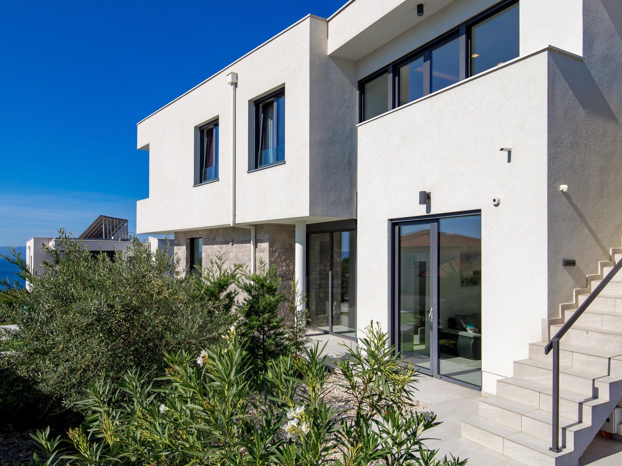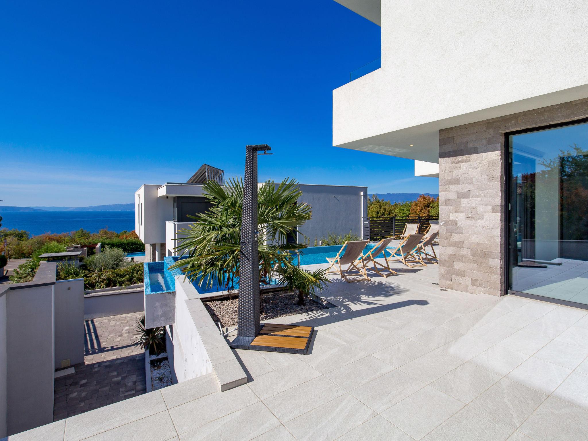 Villa "Albi", 3 storeys. In the district of Kostrena 5 km from the centre of Rijeka, in a quiet, sunny, elevated position, 250 m from the sea, 300 m from the beach, in the countryside. Private: property 603 m2 (fenced), swimming pool (25 m2, depth 150 cm, seasonal availability: 01.Jan. - 31.Dec.) with salt-electrolysis pool-cleaning system. Unconventional pool shape. Outdoor shower, barbecue. In the house: internet access, sauna, table tennis, table football, washing machine, tumble dryer. Available: bicycles (2). Parking (for 4 cars) at the house on the premises, single garage. Shop 1 km, supermarket 1.5 km, restaurant 250 m, bus stop 60 m, pebble beach, rocky beach 300 m. Groups of teenagers on request only. By groups of young people double deposit is requested on arrival. The house consists of 3 apartments rented as one unit. Each apartment with external and separate entrance. Organizing a party is not allowed. Dog beach 800 m.