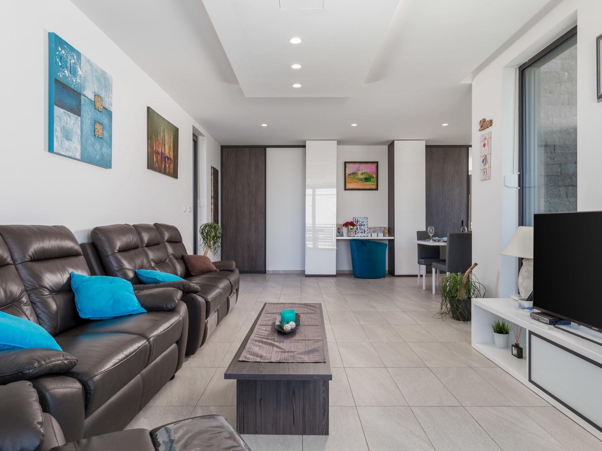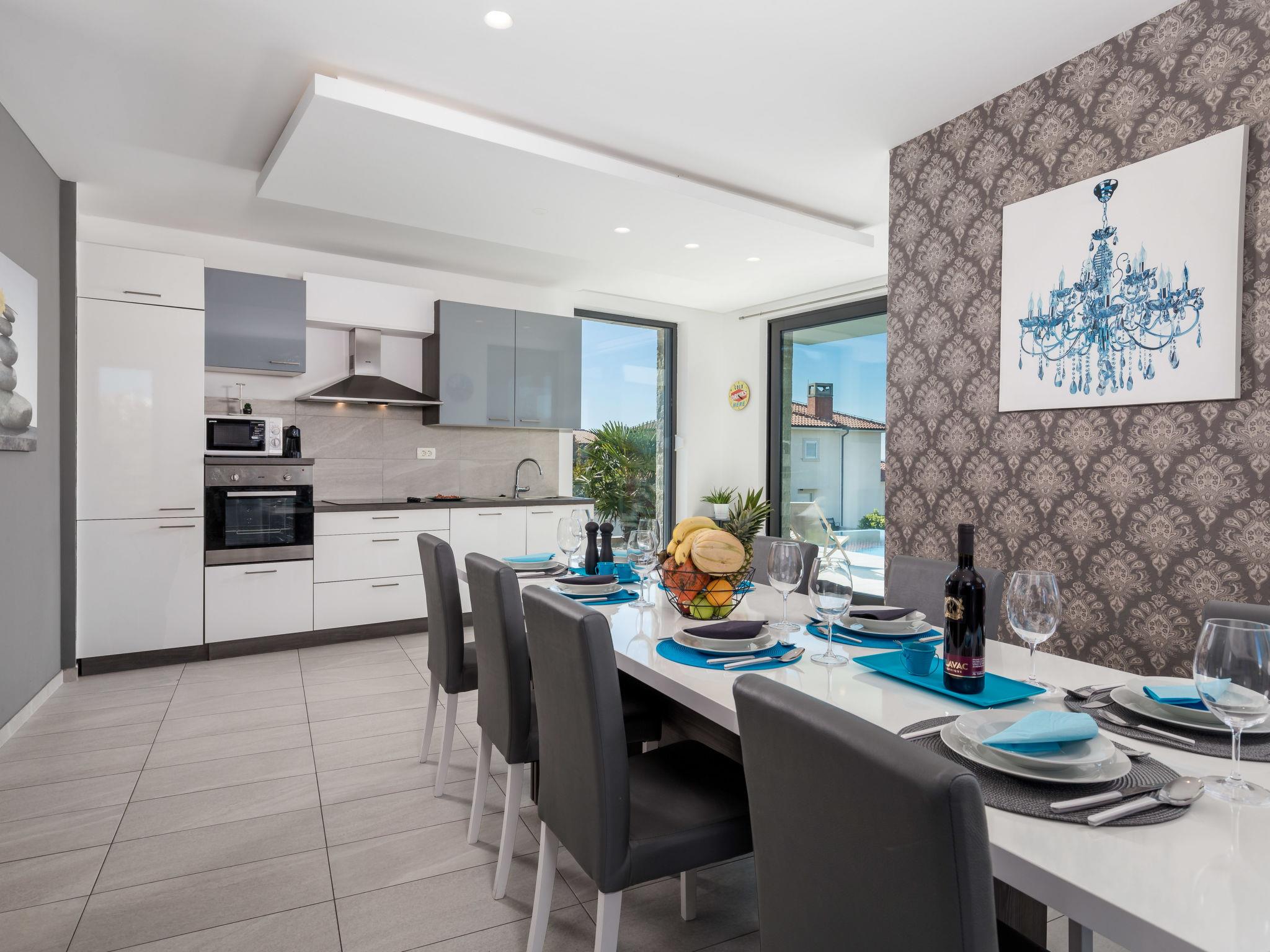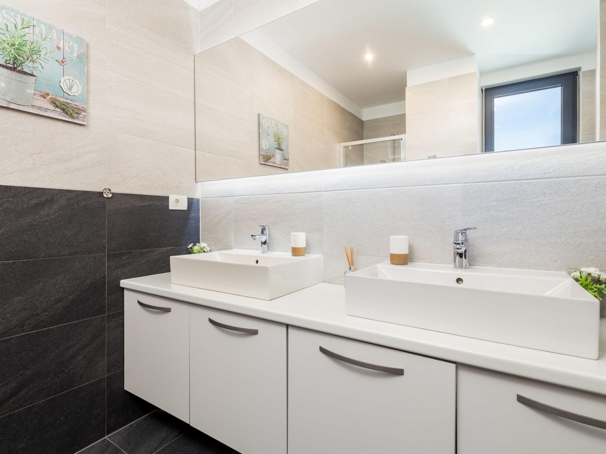 6-room apartment 230 m2 on 2 levels, on the ground floor. Living/dining room with international TV channels, flat screen and air conditioning. Exit to the terrace, to the swimming pool. Open kitchen (oven, dishwasher, 4 ceramic glass hob hotplates, microwave, freezer, electric coffee machine). Sep. WC. On the lower ground floor: playroom with shower/WC. Upper floor: 1 room with 1 french bed (160 cm, length 200 cm), air conditioning. 1 room with 1 french bed (160 cm, length 200 cm), air conditioning. Exit to the balcony. 1 room with 1 french bed (180 cm, length 200 cm), bath/bidet/WC and air conditioning. Exit to the balcony. 1 room with 1 bed (90 cm, length 200 cm), 1 pull-out bed (length 200 cm), air conditioning. Shower/bidet/WC, double hand-basin. Heating. Heating available only from 01.10. to 01.05. Barbecue (portable), deck chairs. View of the sea. Facilities: washing machine, dryer, sauna, baby cot, hair dryer. Internet (WiFi, free). Parking (3 cars), garage on the property (1 car). Please note: maximum 2 pets/ dogs allowed. Private entrance. Playstation available. Internet over fiber optic. Additional kitchen appliances: wine cooler, pressure cooker, bread maker, ice maker, air fryer.