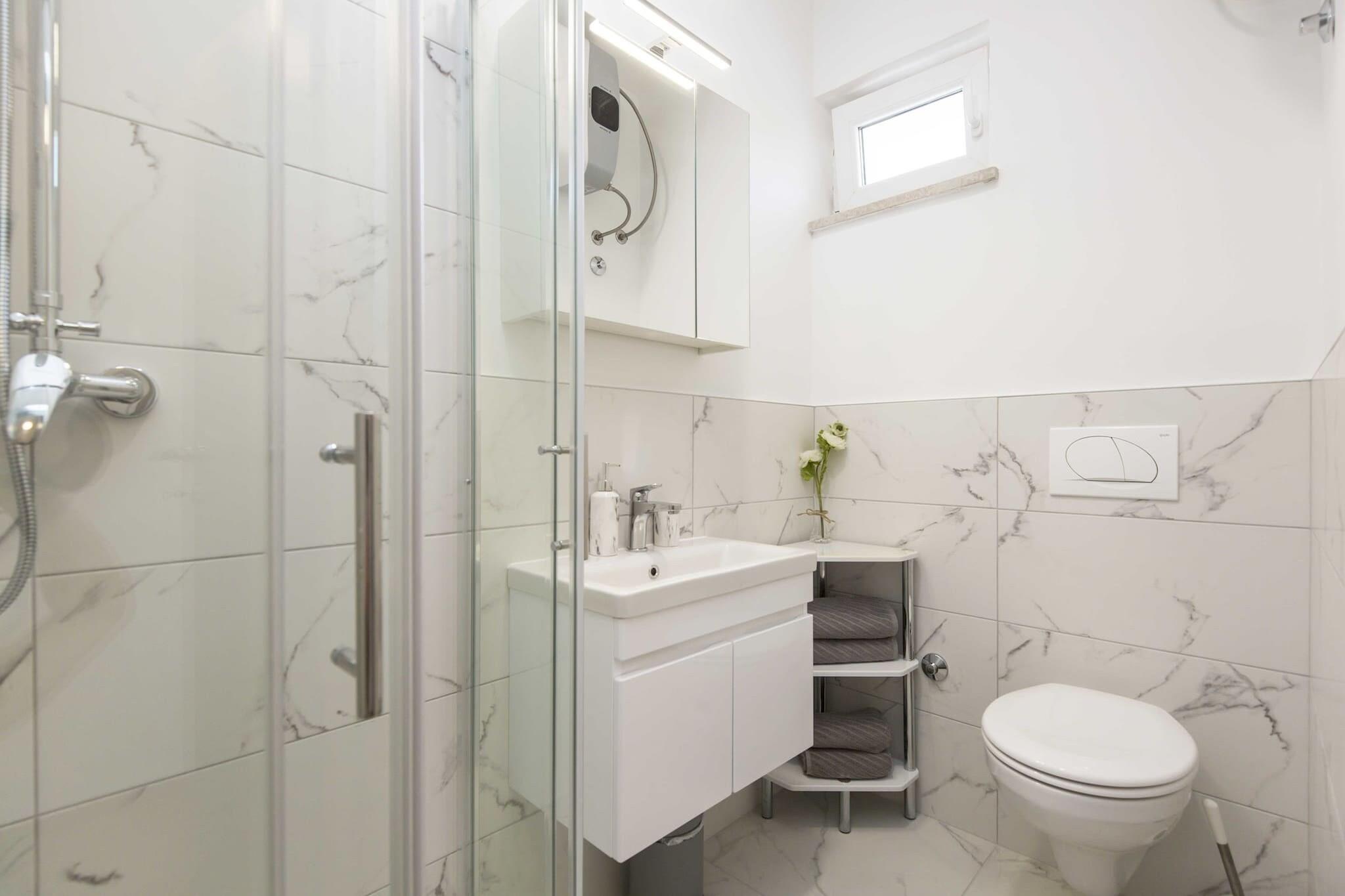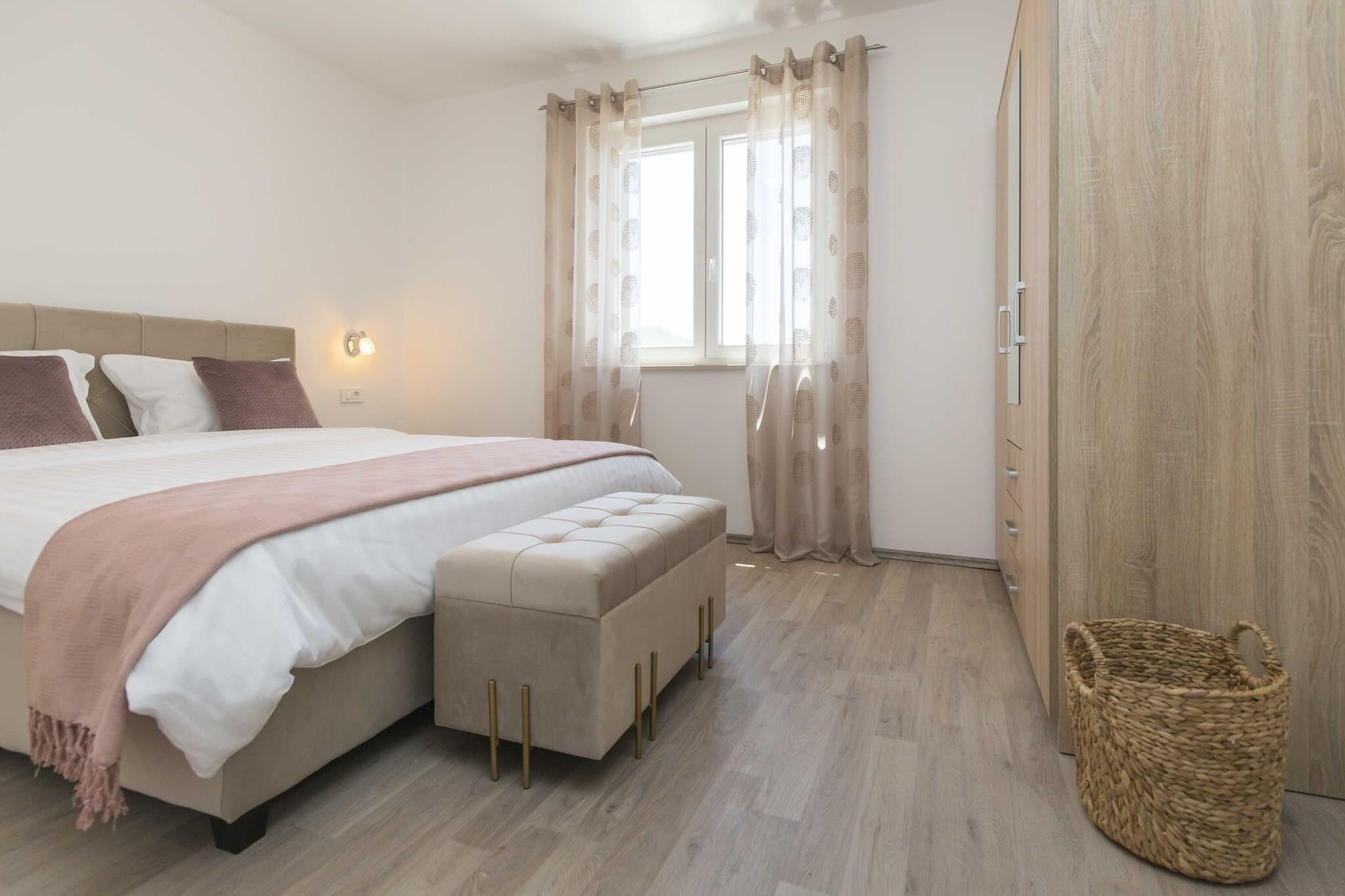 Denne charmerende ferielejlighed, beliggende i det fredelige landskab i Ripenda Verbanci, tilbyder et perfekt tilflugtssted for familier eller venner. Ejendommen har et privat udendørs område med en velholdt have, en grill og en møbleret balkon, ideel til udendørs spisning og afslapning. Indvendigt er lejligheden komfortabelt indrettet med et fuldt udstyret køkken, herunder komfur, køleskab, fryser, kaffemaskine og opvaskemaskine, hvilket gør det nemt at tilberede måltider. To rummelige soveværelser med king-size senge sikrer et afslappende ophold for alle gæster. Lejligheden kan rumme op til 4 personer. Ejendommen er ideelt beliggende kun 3 kilometer fra byen Labin, der tilbyder nem adgang til restauranter, butikker og historiske steder. Labins gamle bydel med dens museer og gallerier giver et indblik i den lokale historie, mens Labin-slottet byder på panoramaudsigt over Rabac og de nærliggende øer. De populære Blå Flag-strande i Rabac, herunder Maslinica og Girandella, ligger kun en kort køretur væk og byder på uberørt vand og forskellige vandaktiviteter. Gæsterne kan nyde den private 32 kvadratmeter store swimmingpool og slappe af i det fredfyldte have- og terrasseområde, komplet med havemøbler. Lejligheden har også to badeværelser med bruser, aircondition for komfort året rundt og væsentlige faciliteter såsom håndklæder, sengetøj og gratis Wi-Fi. Denne ferielejlighed er det ideelle valg for dem, der søger et fredeligt tilflugtssted, mens de forbliver tæt på de livlige kystattraktioner.