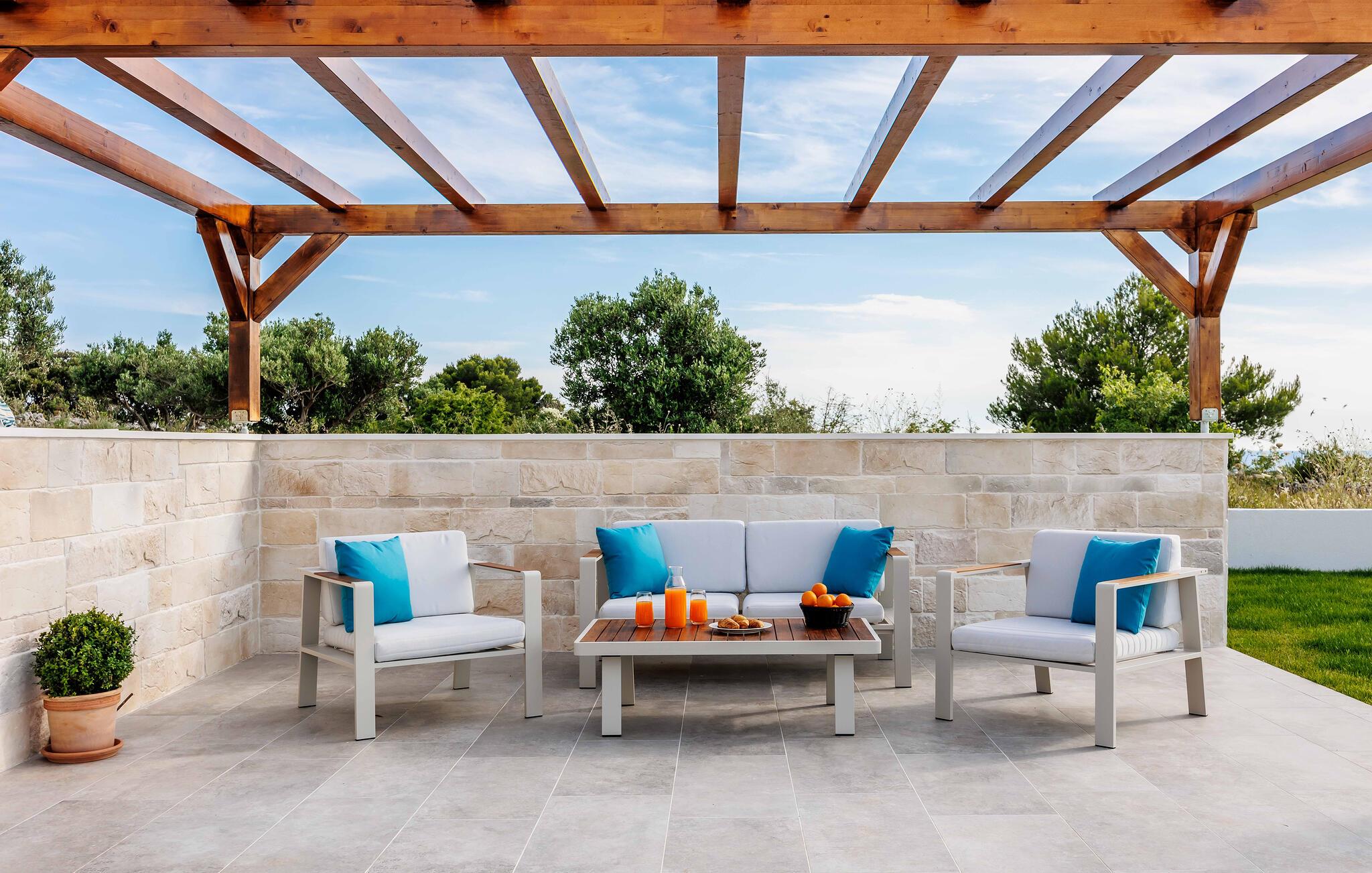 På terrassen kan I fuldt ud værdsætte omgivelsernes skønhed, svømme i poolen til jeres hjertes lyst og slappe af i liggestolene. Glæd jer til lange sommeraftener med grillmad under åben himmel.