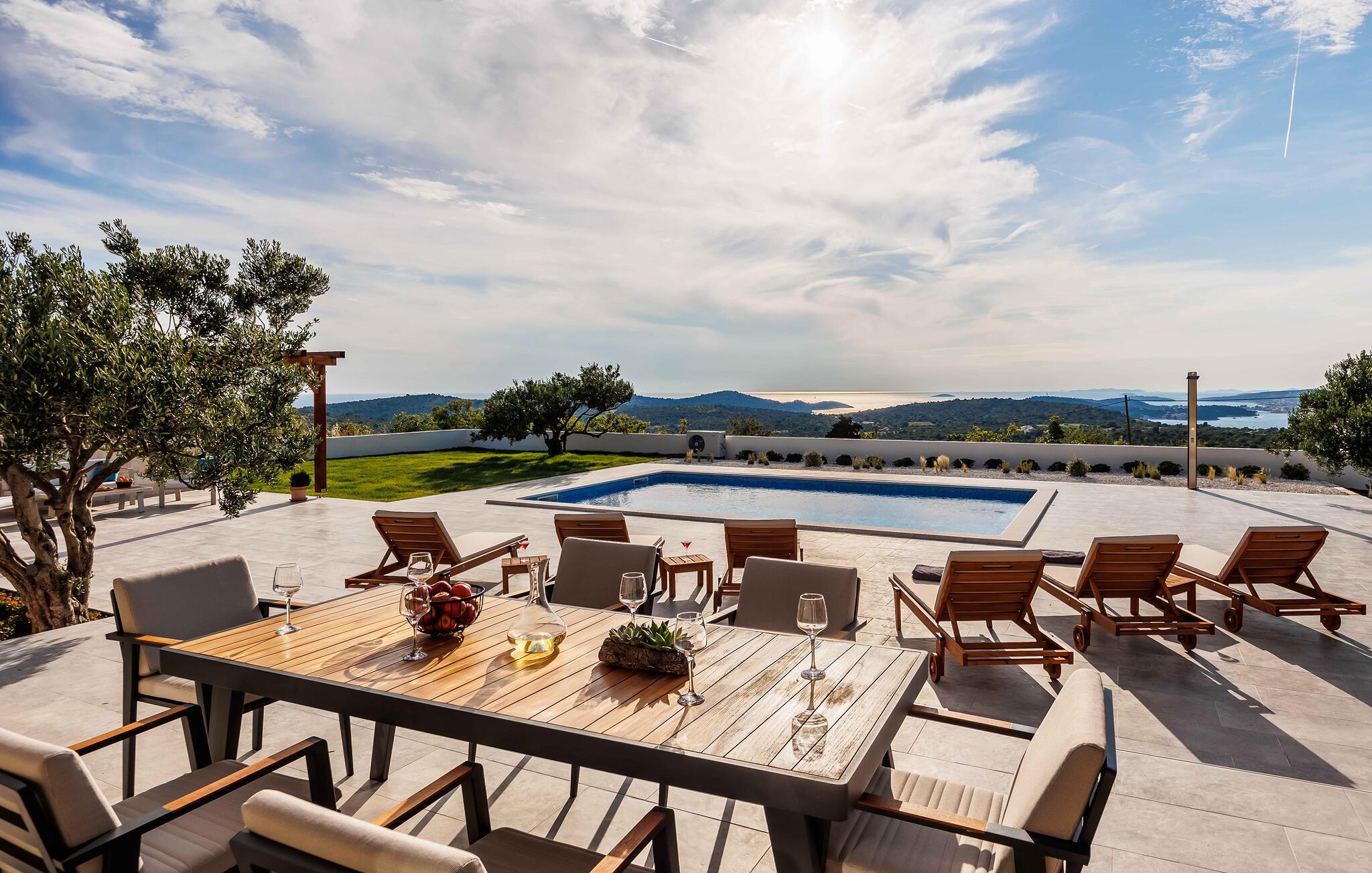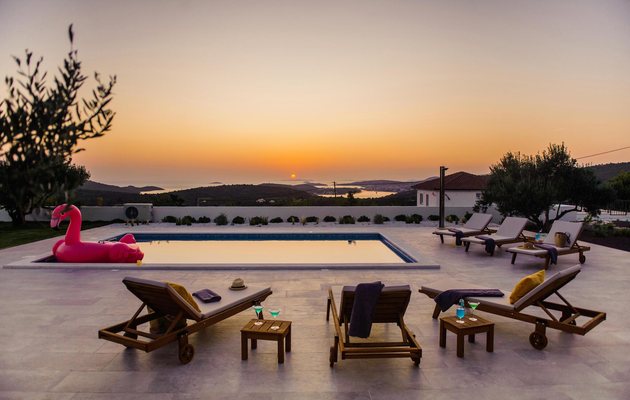 Nyd den fantastiske panoramaudsigt fra dette komfortable feriehus med pool.