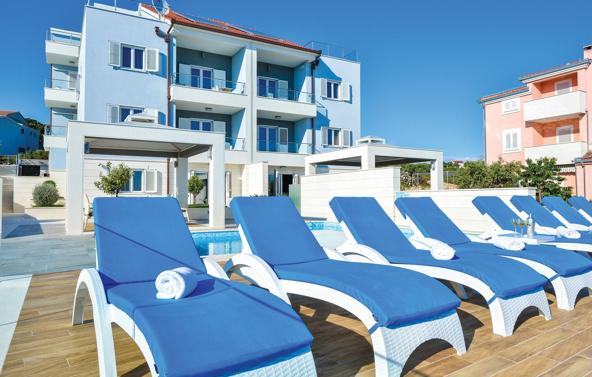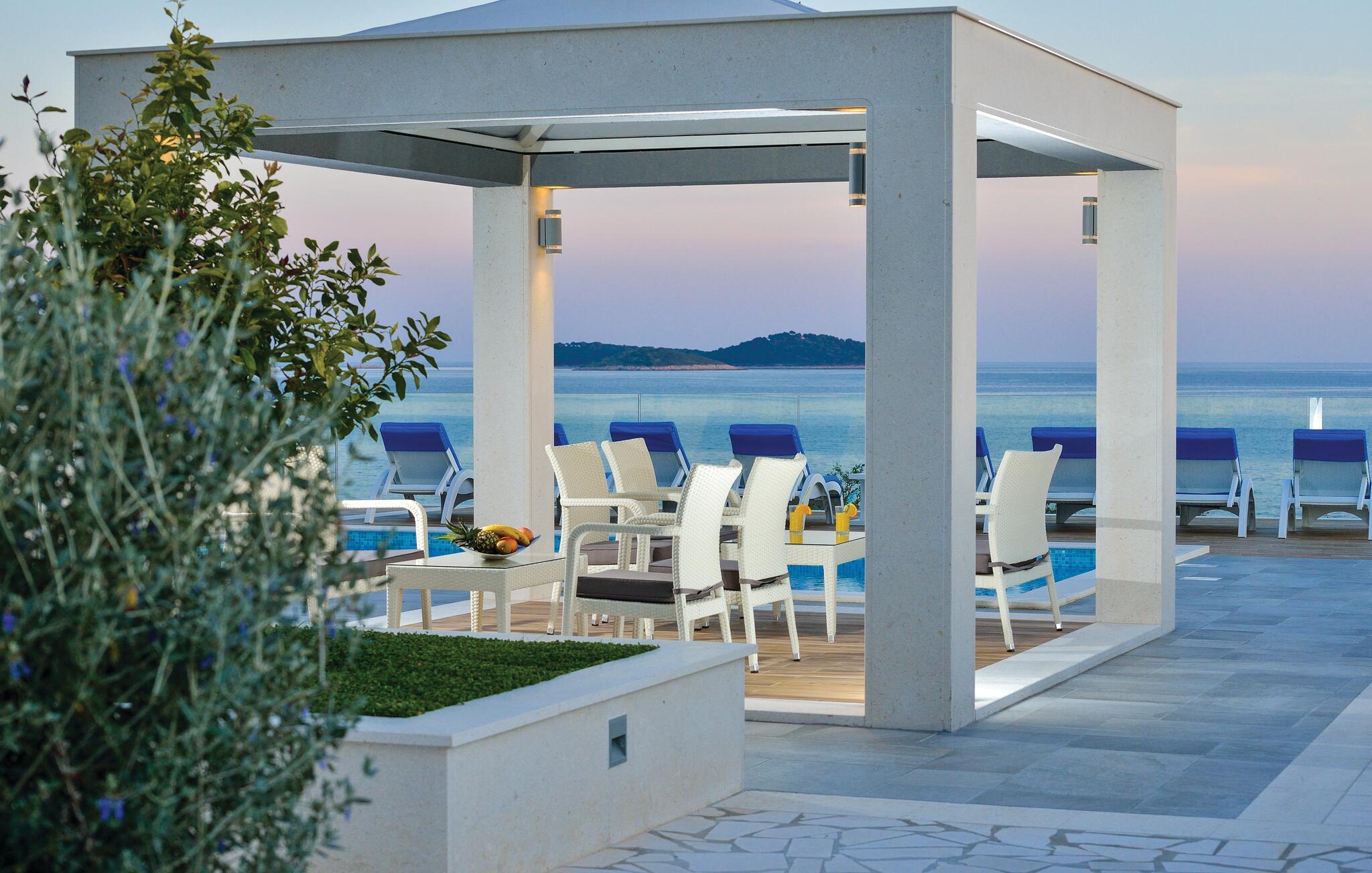 Glæd jer til smukke solopgange over Adriaterhavet, smid jeres håndklæde over skulderen lige efter morgenmaden og lad batterierne op ved den smukke pool. Nyd den sensationelle havudsigt fra en af ??de komfortable liggestole og om aftenen socialiser jer med andre gæster over en grill eller få hyggelige samtaler under den smarte pergola.