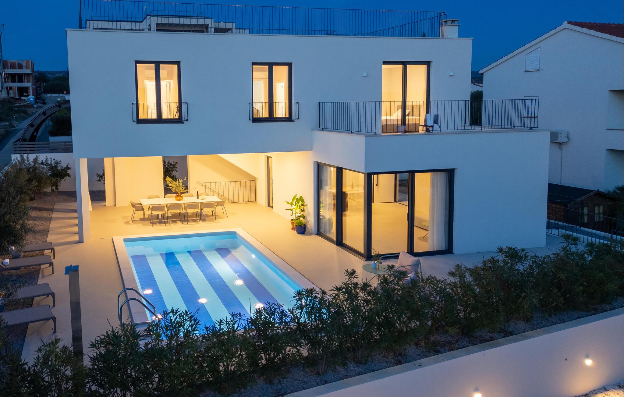 Tilbring en drømmeferie sammen i dette luksuriøse feriehus med pool og havudsigt. Træd indenfor og lad jer betage af den lyse og indbydende atmosfære i denne moderne villa, hvor I vil føle jer fuldstændig veltilpas på alle tider af året. Skab kulinariske lækkerier, saml jer til stilfulde måltider, og glæd jer til hyggelige aftener i den behagelige sofa. Stream en spændende film, eller brug jeres tid sammen til sjove spilleaftener eller en god samtale over et glas vin. En pragtfuld pool venter jer i det elegante udendørsområde, hvor I kan forfriske jer, når I har lyst. Server jeres morgenmad på terrassen, og lad op på de behagelige liggestole. Udforsk den maleriske havn og strandene i Rogoznica, hvor I kan glide hen over det krystalklare vand på et stand-up paddleboard. Tag en dagstur til øen Prvic for at opdage historiske fyrtårne og charmerende landsbyer, eller udforsk den nærliggende by Šibenik med dens imponerende katedral og snoede gader. Beundr vandfaldene i Krka Naturpark, og smag kroatiske specialiteter i traditionelle taverner.