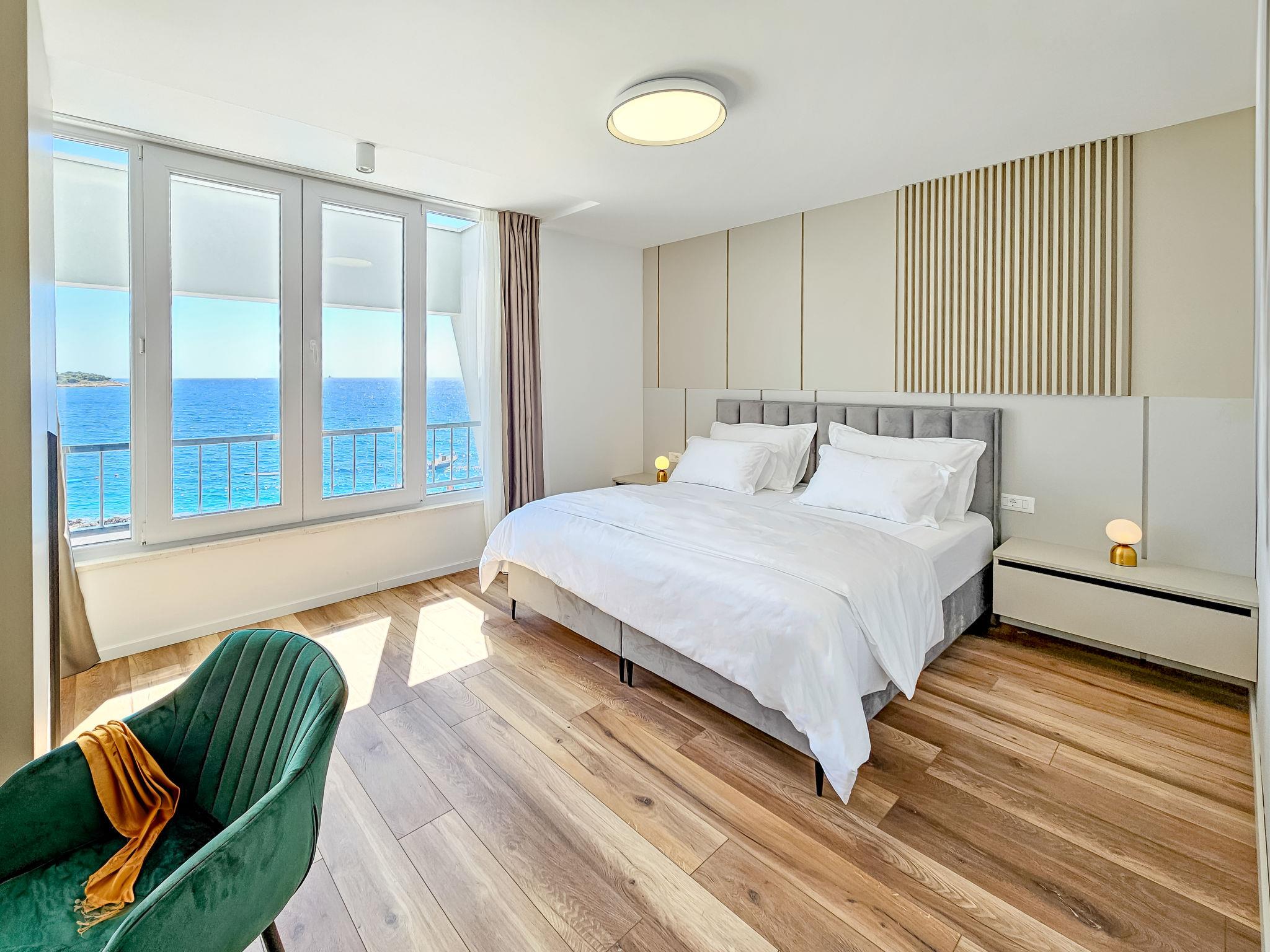 6-room villa 200 m2 on 2 levels. Living room with satellite TV and air conditioning. Exit to the terrace. 4 rooms, each room with 1 double bed (180 cm, length 200 cm), shower/WC and air conditioning. Kitchen (dishwasher, 4 induction hot plates, toaster, kettle, microwave, freezer, electric coffee machine) with dining table, air conditioning. Exit to the terrace. Sep. WC. Large terrace 100 m2. Terrace furniture, barbecue, deck chairs (6). Marvellous panoramic view of the sea. Facilities: iron, hair dryer. Internet (WiFi, free).
