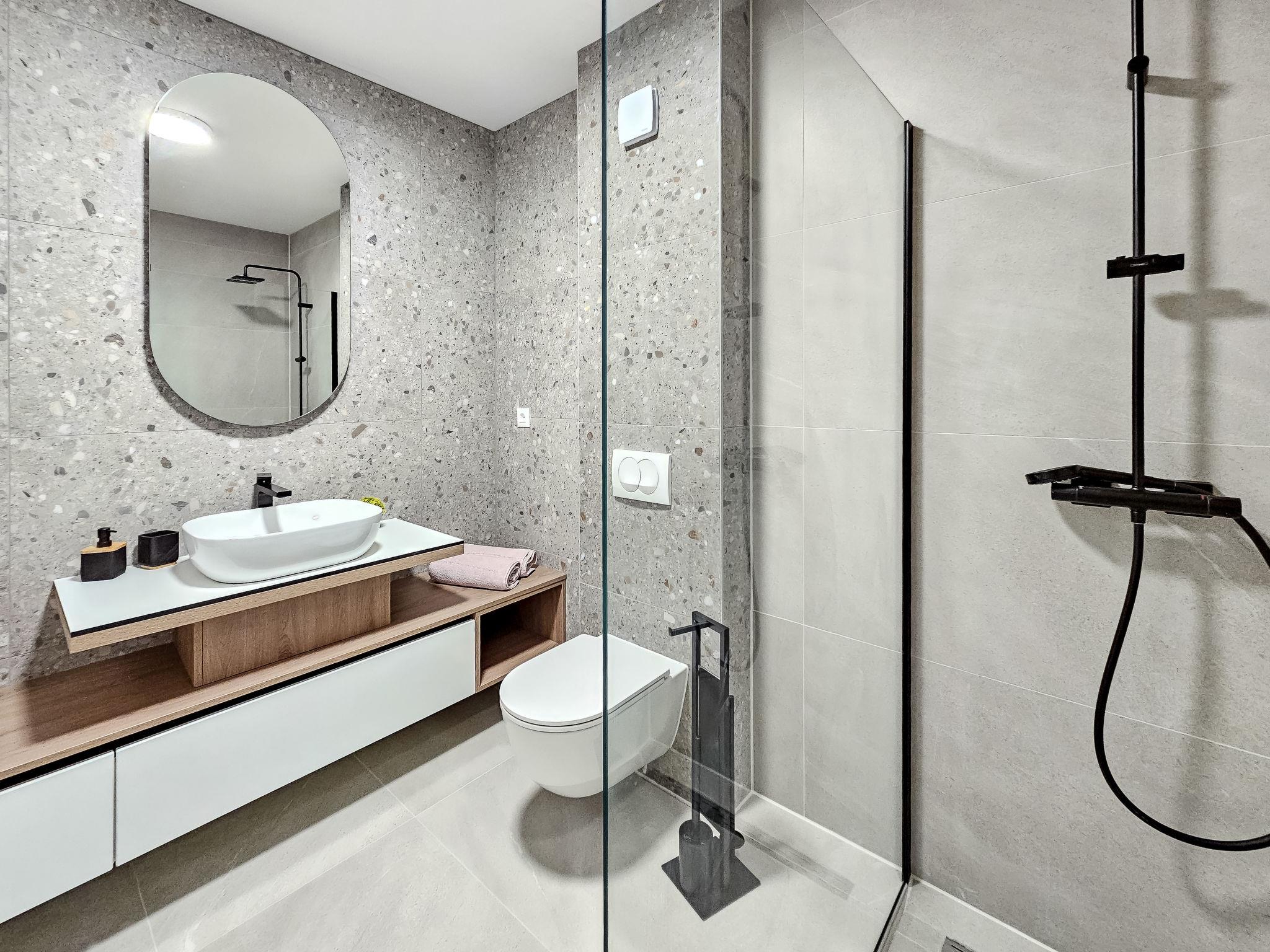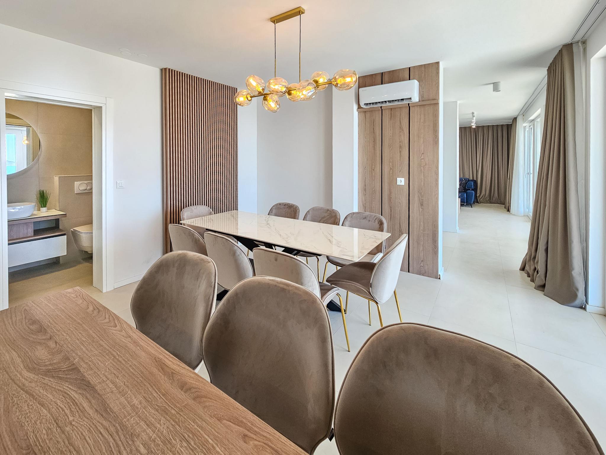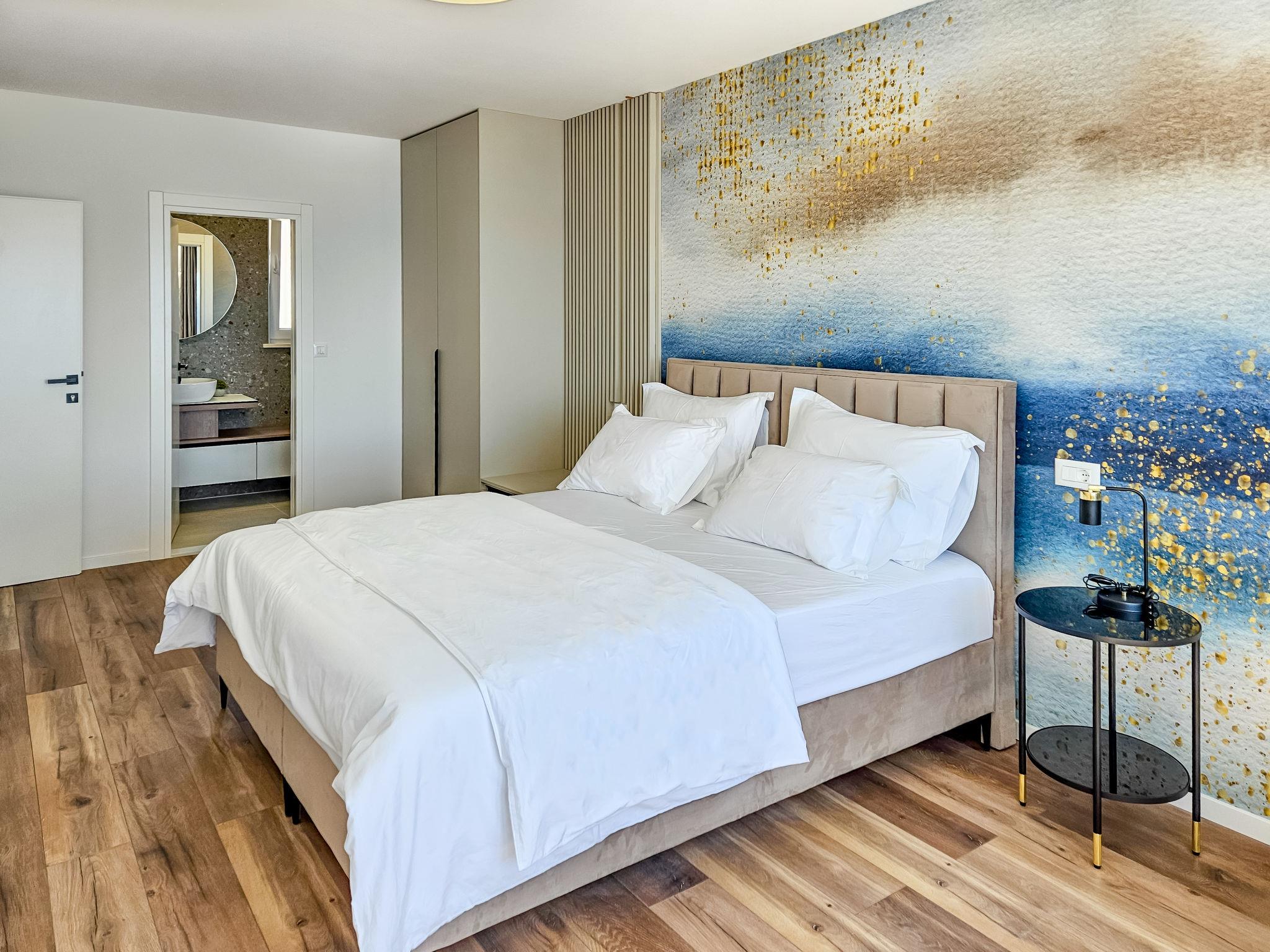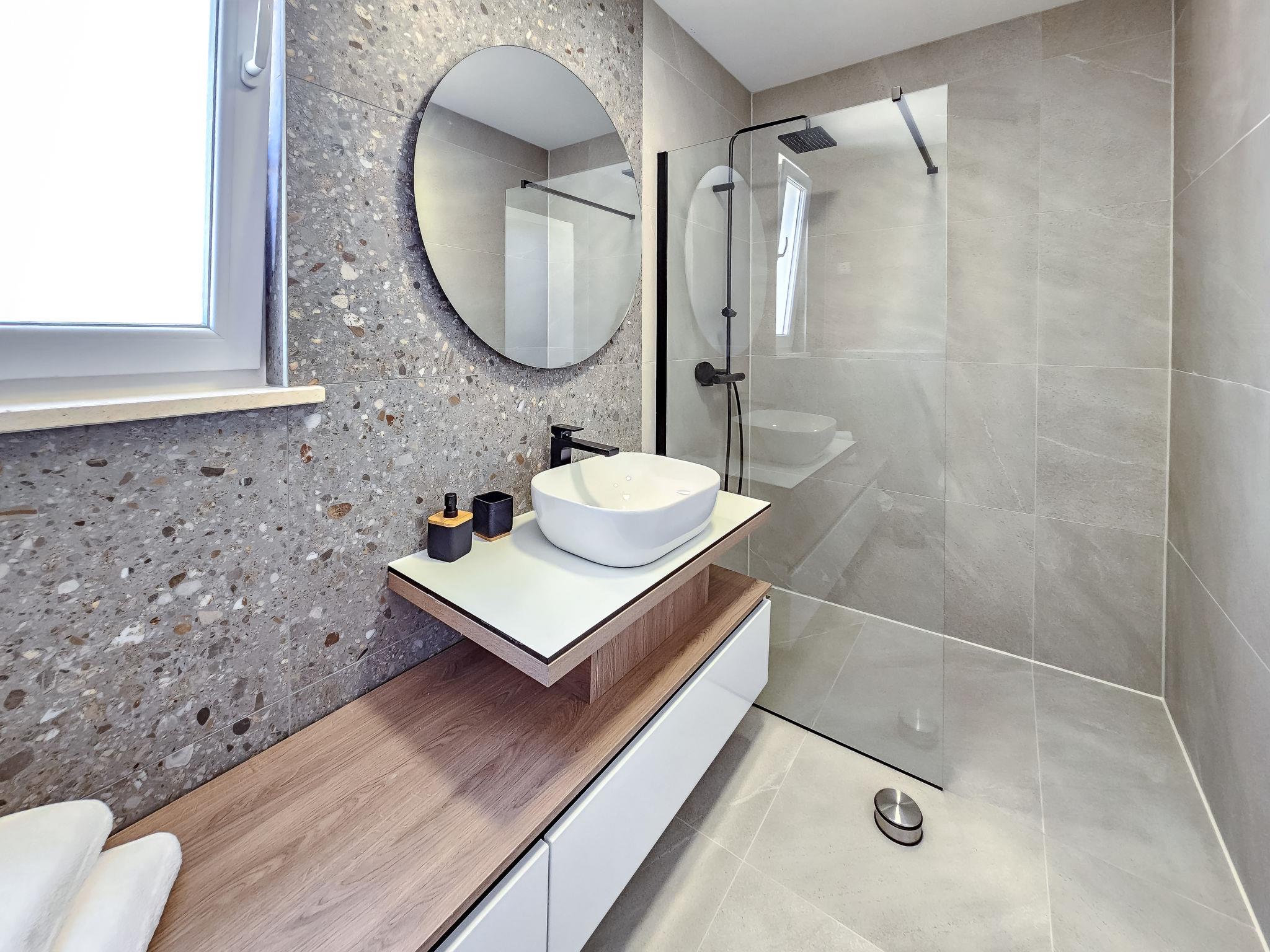 Villa "Angela", 2 storeys, built in 2024. 2 km from the centre of Rogoznica, in a quiet, sunny position, 30 m from the sea, 30 m from the beach. Private: property 1'000 m2 (fenced), swimming pool angular (8 x 4 m, seasonal availability: 01.May. - 14.Oct.). Outdoor shower, pool maintenance by the owner/gardener. In the house: internet access, air conditioning, washing machine. 50 m long motor access to the house (via unmade road). Parking at the house on the premises. Supermarket 3 km, restaurant 3 km, bus stop 3 km, rocky beach 30 m. Marina 3 km. Please note: airfield 36 km from the property.