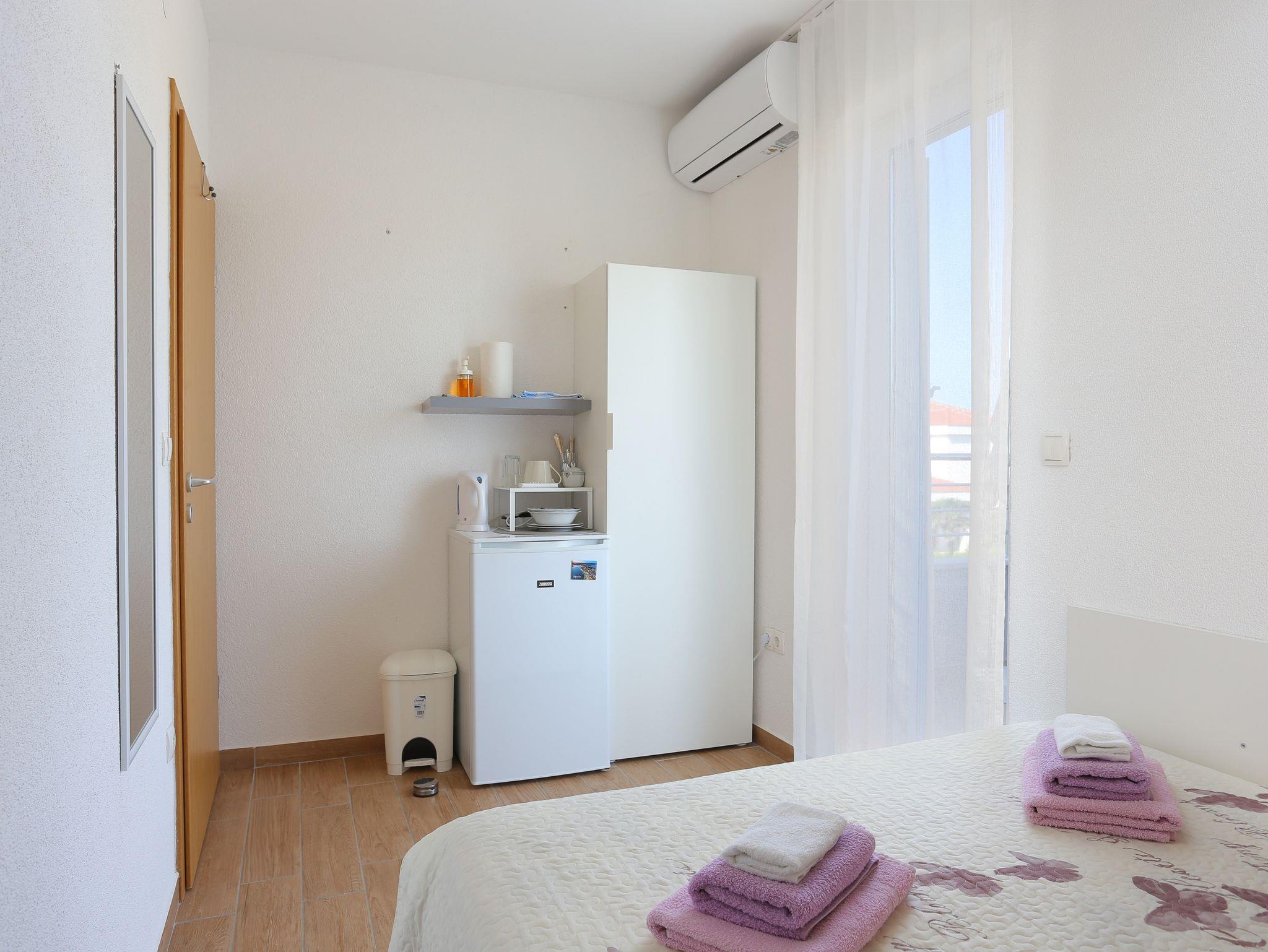 Zimmer bietet Platz für 2 Gäste. Die Betten sind in Schlafzimmern, die es 1 gibt, innerhalb einer Gesamtfläche von 10m2, angeordnet. Die Gäste haben einen eigenen Balkon zur Verfügung, auf der sie in warmen Sommernächten genießen können. Das Zimmer bietet Meerblick. Es ist erlaubt, Speisen auf dem Gemeinschafts-Grill vorzubereiten. Die reservierte Unterkunftseinheit ist ein Zimmer mit eigenem Badezimmer ohne die Möglichkeit der Nutzung einer Küche. IM PREIS INBEGRIFFEN: Kurtaxe, Endreinigung, Klimatisierung, Parkplatz, Internet, Kinderbett. VERBINDLICHE ZUSÄTZLICHE KOSTEN: Aufzahlung für Kurzaufenthalte (prozentualer Zuschlag pro Nächtigungsanzahl: 30% - 1, 20% - 2, 10% - 3). UNVERBINDLICHE ZUSÄTZLICHE KOSTEN: Wäschewaschen (10,00 € Waschen), Fahrrad (10,00 € täglich (pro Stück)). Die Verfügbarkeit zusätzlicher Dienstleistungen in Ihrem reservierten Termin und die Preise derselben (falls nicht aufgeführt) müssen im Voraus überprüft werden. Zusätzliche Dienstleistungen die in der Zahlungsaufforderung nicht aufgeführt sind werden direkt beim Vermieter bezahlt, angenommen der Gast nutzt auch diese. Ermäßigung auf den Grundpreis: Gratistag 14=13 (bei einem Aufenthalt von 14 Tagen oder mehr erhalten Sie einen Gratistag für den Aufenthalt bis 31.12.26).