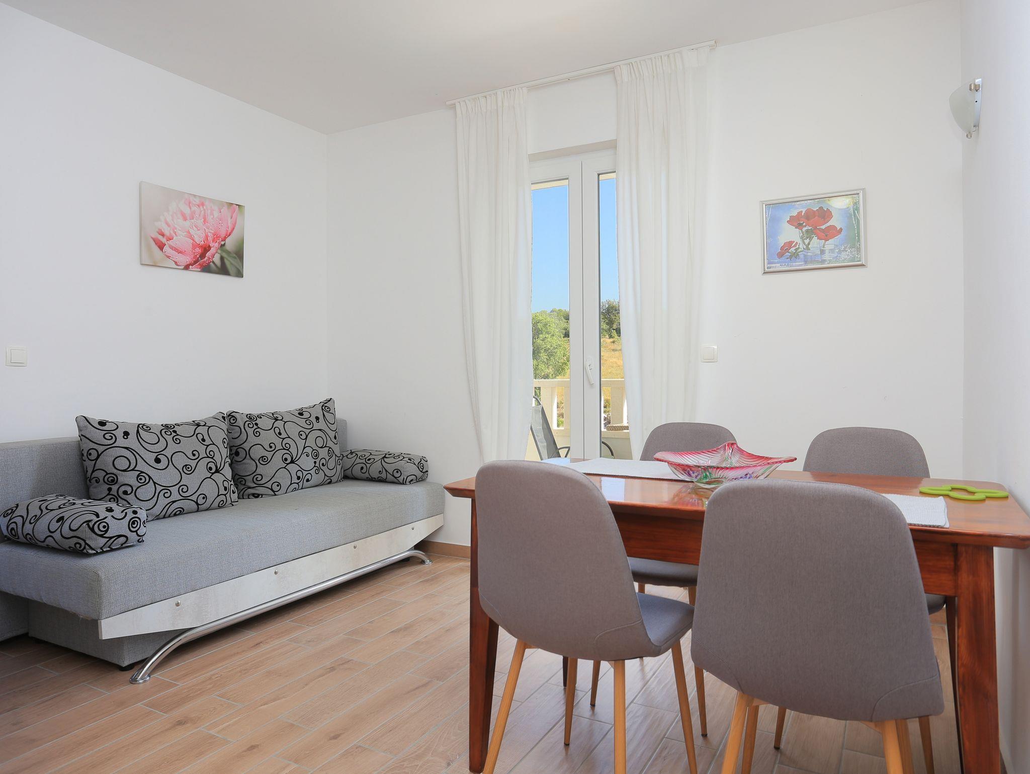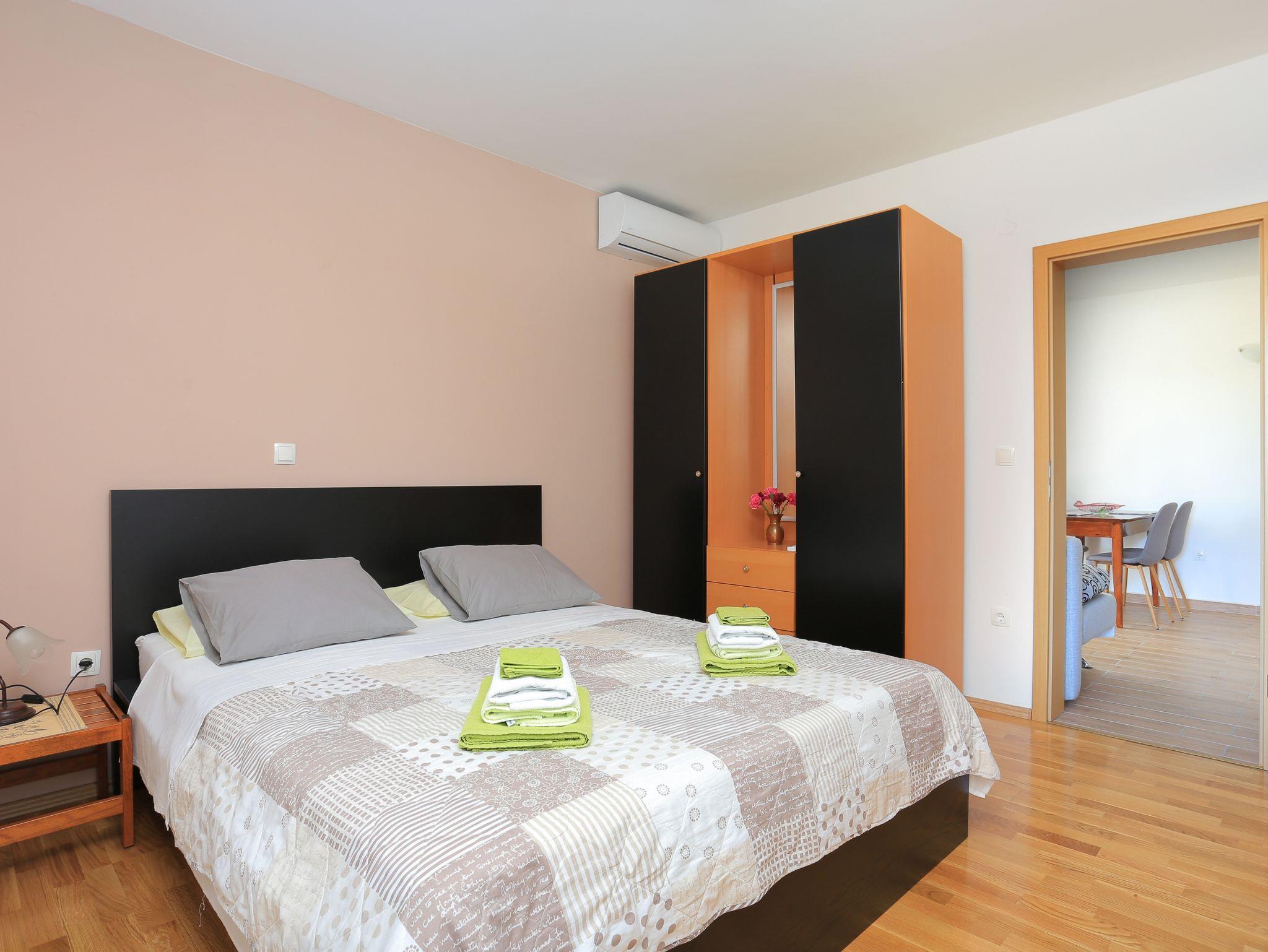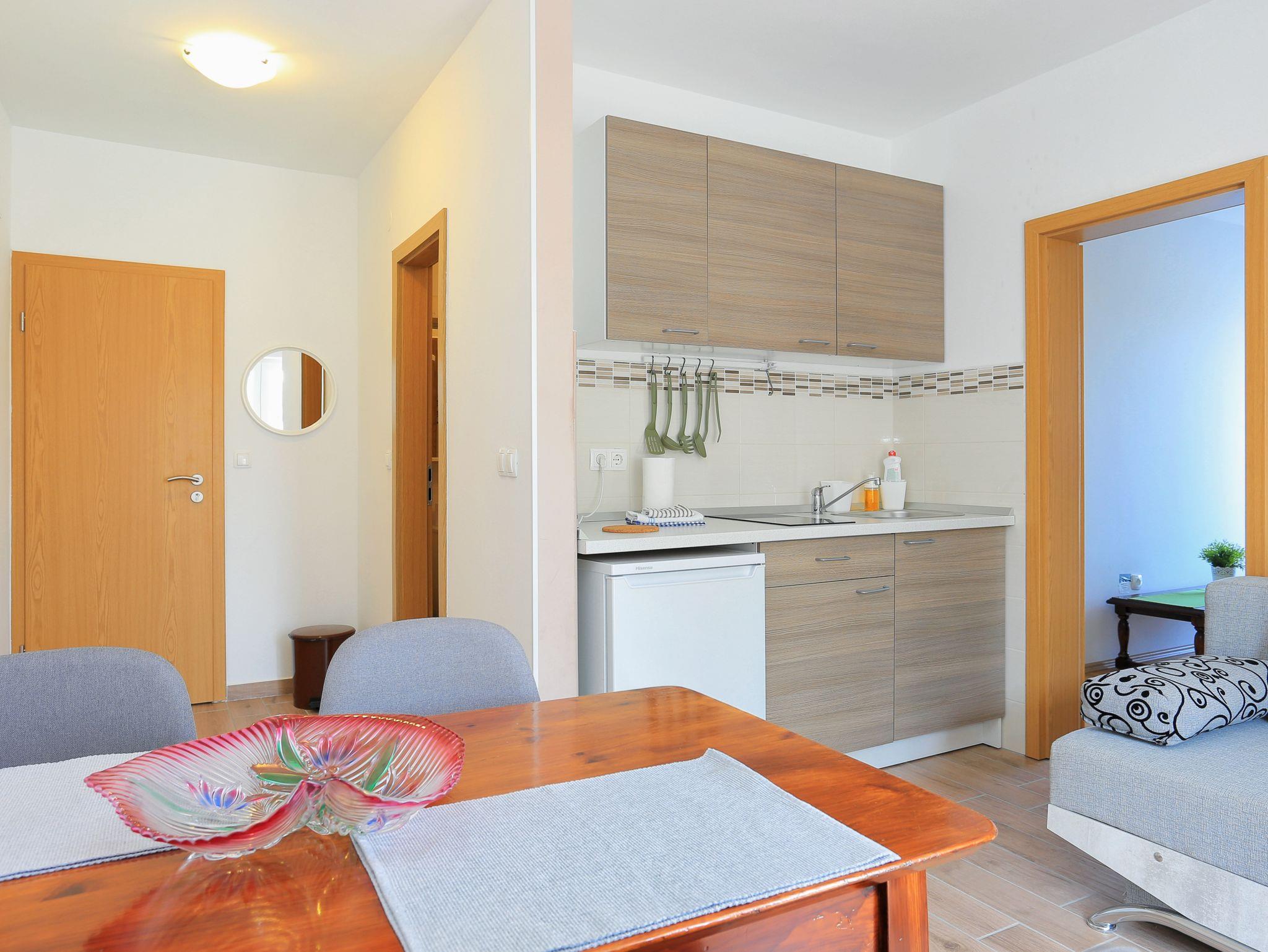 Ferienwohnung bietet Platz für 3 Gäste. Die Betten sind in Schlafzimmern, die es 1 gibt, und in Esszimmer, innerhalb einer Gesamtfläche von 28m2, angeordnet. Die Gäste haben einen eigenen Balkon zur Verfügung, auf der sie in warmen Sommernächten genießen können. Das Apartment bietet Meerblick. Es ist erlaubt, Speisen auf dem Gemeinschafts-Grill vorzubereiten. IM PREIS INBEGRIFFEN: Kurtaxe, Endreinigung, Klimatisierung, Parkplatz, Internet, Kinderbett. VERBINDLICHE ZUSÄTZLICHE KOSTEN: Aufzahlung für Kurzaufenthalte (prozentualer Zuschlag pro Nächtigungsanzahl: 30% - 1, 20% - 2, 10% - 3). UNVERBINDLICHE ZUSÄTZLICHE KOSTEN: Wäschewaschen (10,00 € Waschen), Fahrrad (10,00 € täglich (pro Stück)). Die Verfügbarkeit zusätzlicher Dienstleistungen in Ihrem reservierten Termin und die Preise derselben (falls nicht aufgeführt) müssen im Voraus überprüft werden. Zusätzliche Dienstleistungen die in der Zahlungsaufforderung nicht aufgeführt sind werden direkt beim Vermieter bezahlt, angenommen der Gast nutzt auch diese. Ermäßigung auf den Grundpreis: Gratistag 14=13 (bei einem Aufenthalt von 14 Tagen oder mehr erhalten Sie einen Gratistag für den Aufenthalt bis 31.12.26).