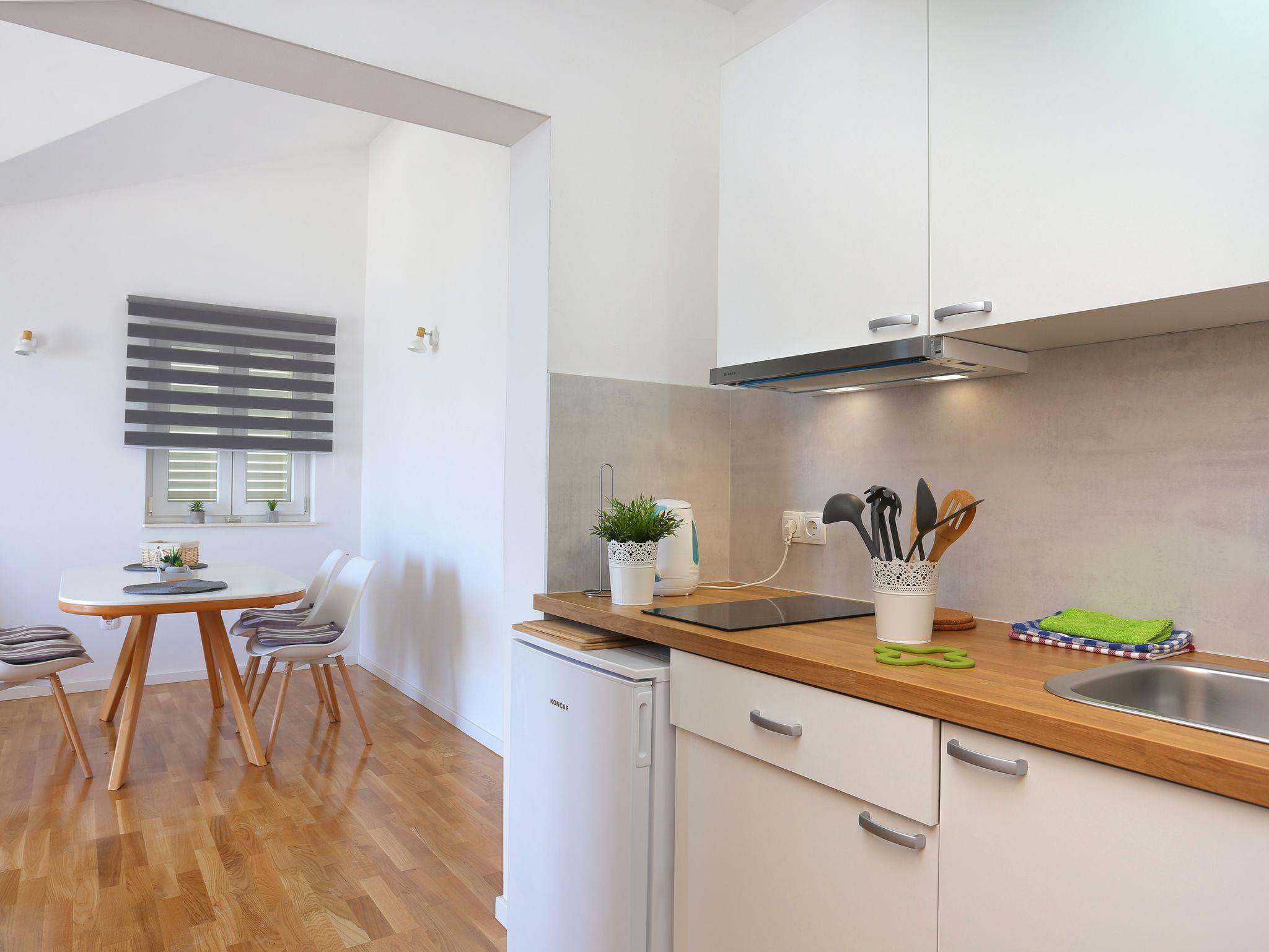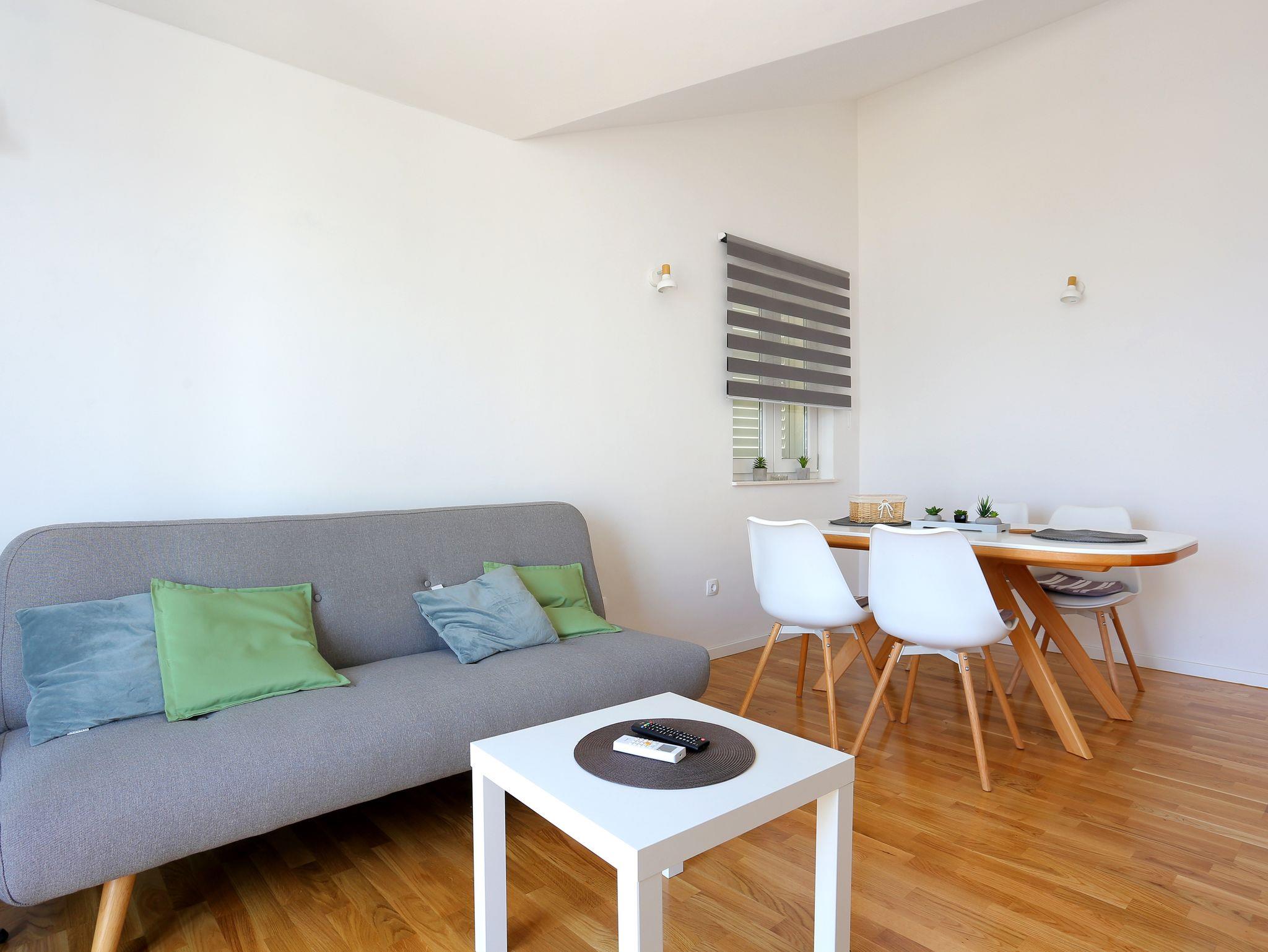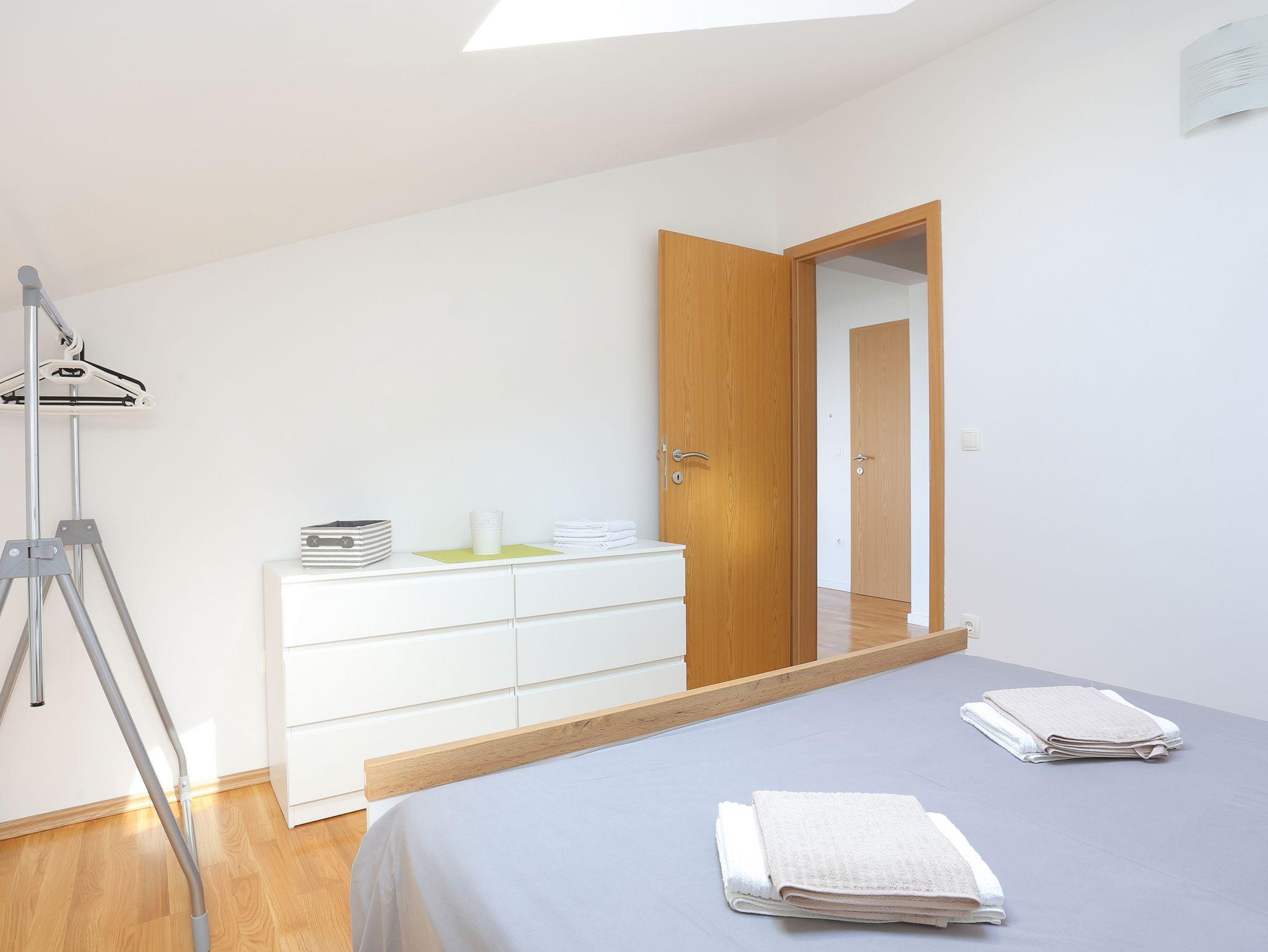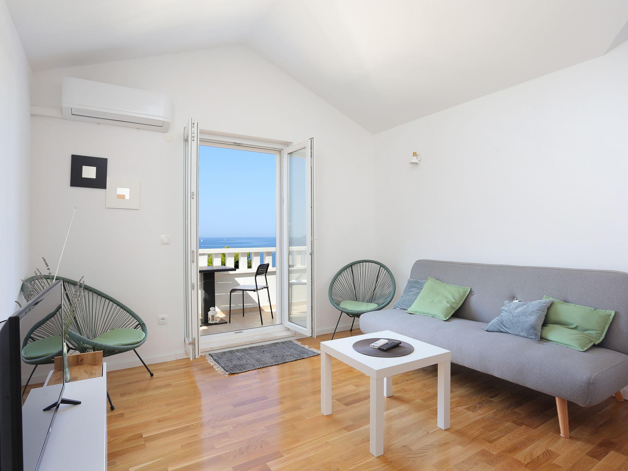 Ferienwohnung bietet Platz für 3 Gäste. Die Betten sind in Schlafzimmern, die es 1 gibt, und in Wohnzimmer, innerhalb einer Gesamtfläche von 32m2, angeordnet. Die Gäste haben einen eigenen Balkon zur Verfügung, auf der sie in warmen Sommernächten genießen können. Das Apartment bietet Meerblick. Es ist erlaubt, Speisen auf dem Gemeinschafts-Grill vorzubereiten. IM PREIS INBEGRIFFEN: Kurtaxe, Endreinigung, Klimatisierung, Parkplatz, Internet, Kinderbett. VERBINDLICHE ZUSÄTZLICHE KOSTEN: Aufzahlung für Kurzaufenthalte (prozentualer Zuschlag pro Nächtigungsanzahl: 30% - 1, 20% - 2, 10% - 3). UNVERBINDLICHE ZUSÄTZLICHE KOSTEN: Wäschewaschen (10,00 € Waschen), Fahrrad (10,00 € täglich (pro Stück)). Die Verfügbarkeit zusätzlicher Dienstleistungen in Ihrem reservierten Termin und die Preise derselben (falls nicht aufgeführt) müssen im Voraus überprüft werden. Zusätzliche Dienstleistungen die in der Zahlungsaufforderung nicht aufgeführt sind werden direkt beim Vermieter bezahlt, angenommen der Gast nutzt auch diese. Ermäßigung auf den Grundpreis: Gratistag 14=13 (bei einem Aufenthalt von 14 Tagen oder mehr erhalten Sie einen Gratistag für den Aufenthalt bis 31.12.26).