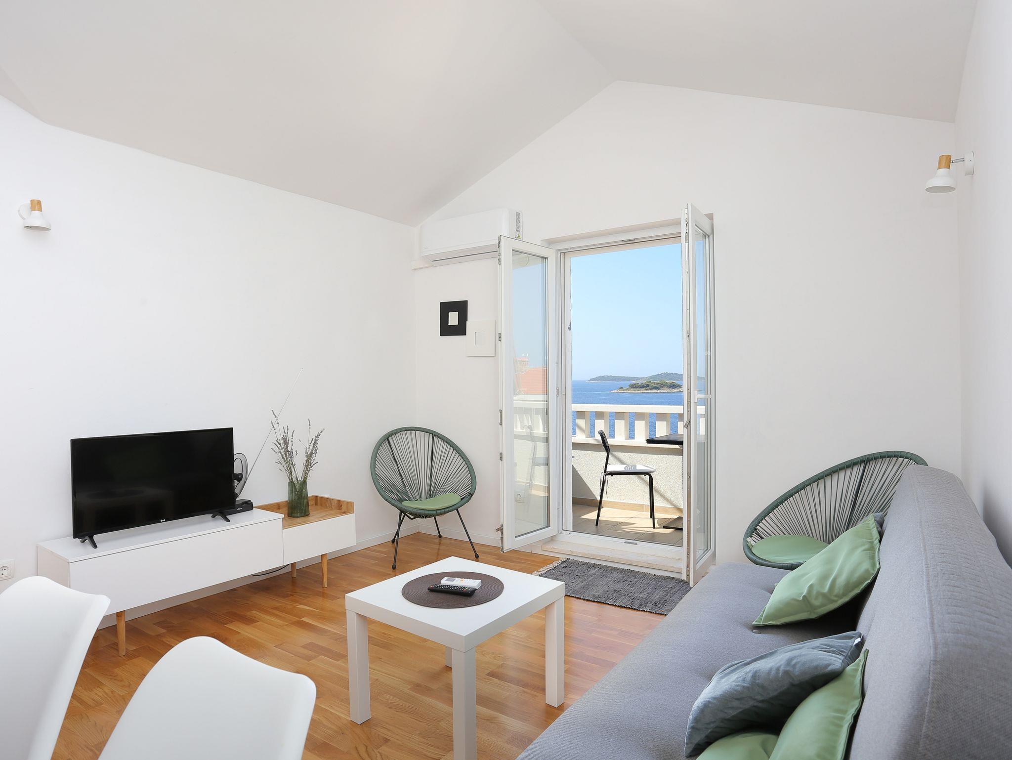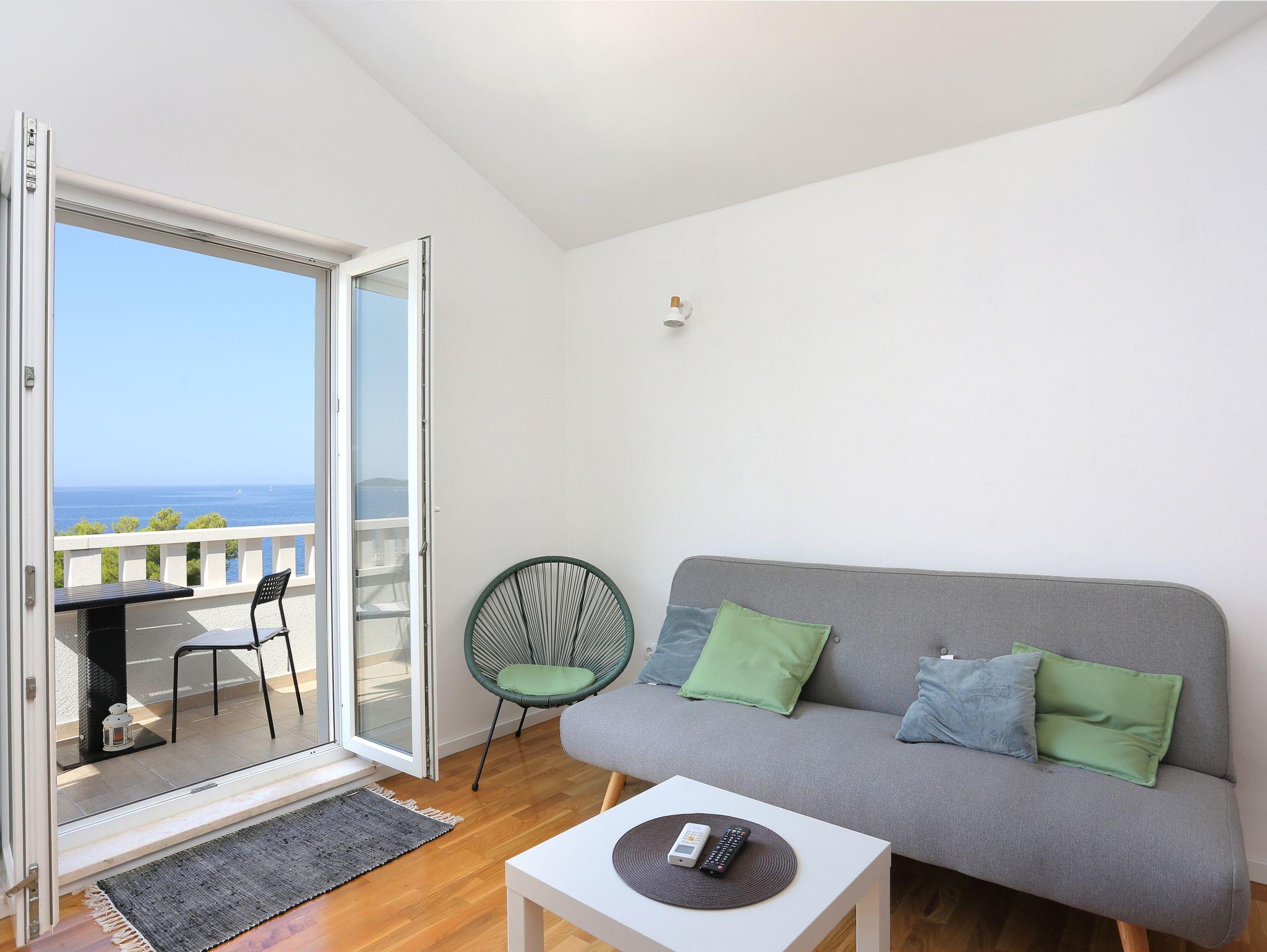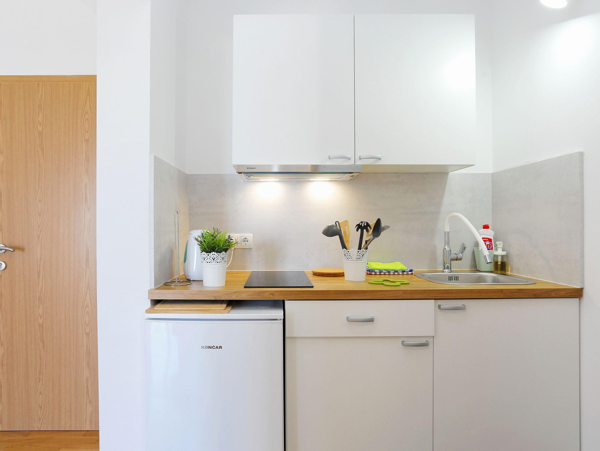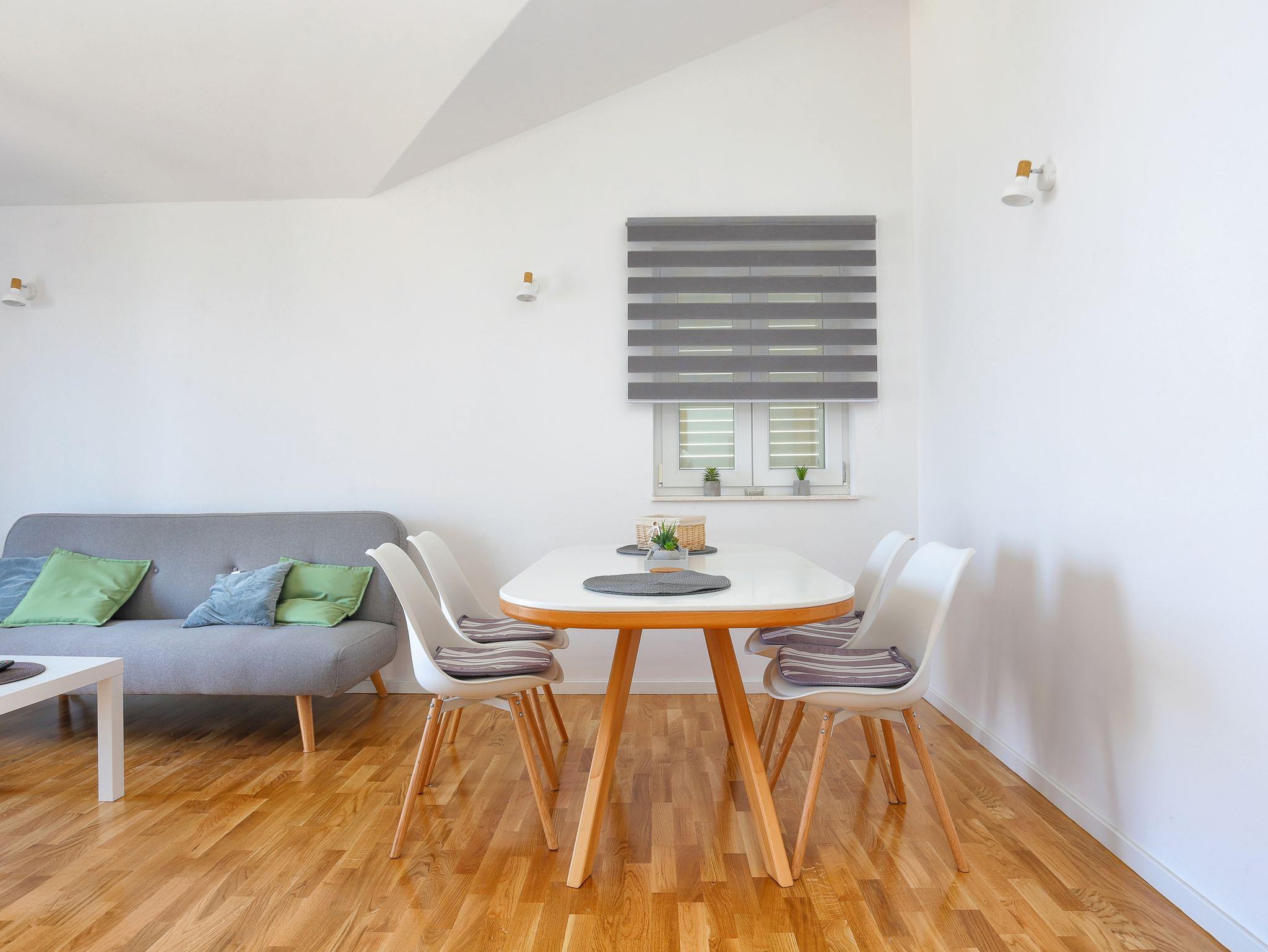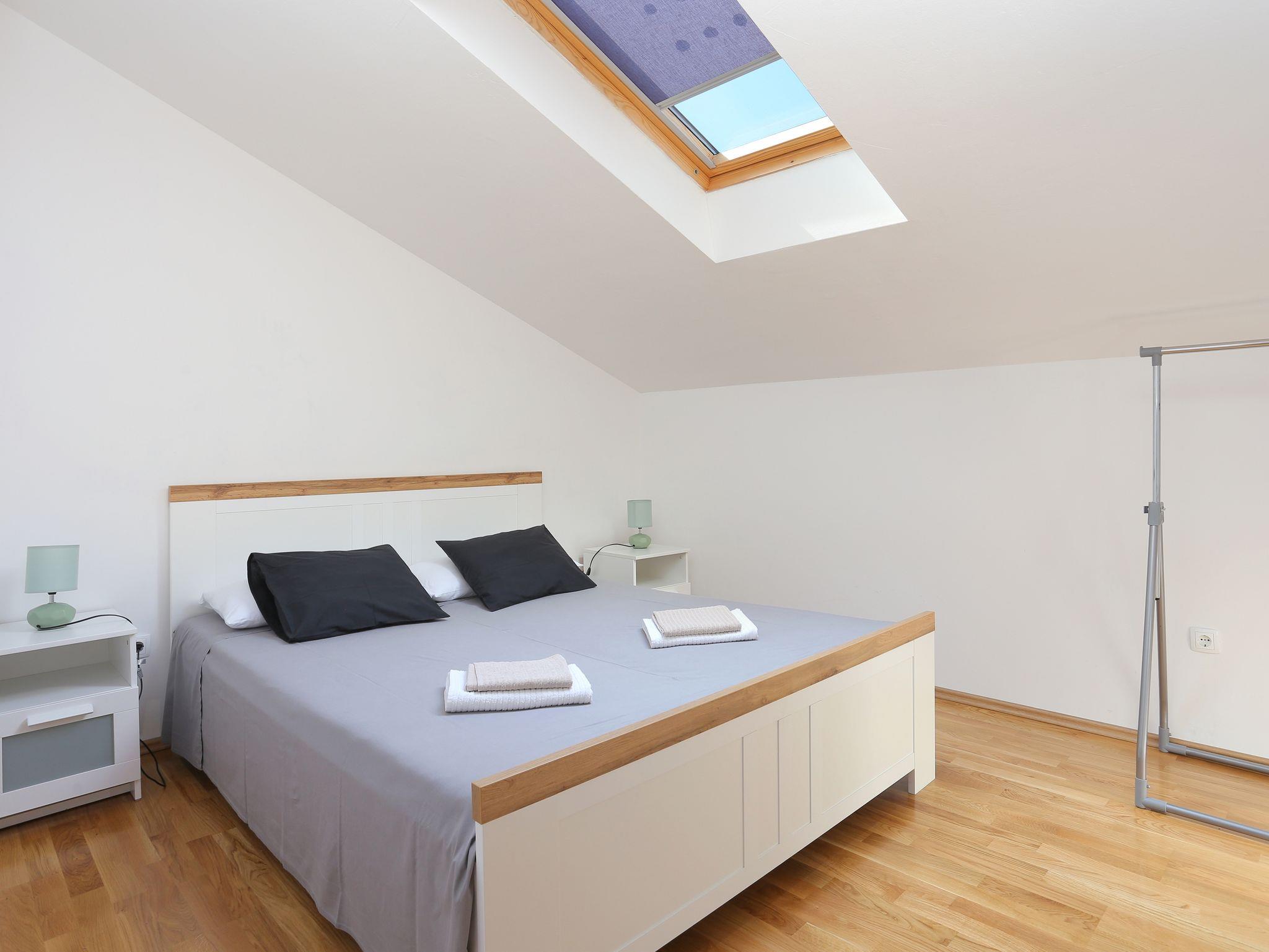 Ferienwohnung bietet Platz für 3 Gäste. Die Betten sind in Schlafzimmern, die es 1 gibt, und in Wohnzimmer, innerhalb einer Gesamtfläche von 32m2, angeordnet. Die Gäste haben einen eigenen Balkon zur Verfügung, auf der sie in warmen Sommernächten genießen können. Das Apartment bietet Meerblick. Es ist erlaubt, Speisen auf dem Gemeinschafts-Grill vorzubereiten. IM PREIS INBEGRIFFEN: Kurtaxe, Endreinigung, Klimatisierung, Parkplatz, Internet, Kinderbett. VERBINDLICHE ZUSÄTZLICHE KOSTEN: Aufzahlung für Kurzaufenthalte (prozentualer Zuschlag pro Nächtigungsanzahl: 30% - 1, 20% - 2, 10% - 3). UNVERBINDLICHE ZUSÄTZLICHE KOSTEN: Wäschewaschen (10,00 € Waschen), Fahrrad (10,00 € täglich (pro Stück)). Die Verfügbarkeit zusätzlicher Dienstleistungen in Ihrem reservierten Termin und die Preise derselben (falls nicht aufgeführt) müssen im Voraus überprüft werden. Zusätzliche Dienstleistungen die in der Zahlungsaufforderung nicht aufgeführt sind werden direkt beim Vermieter bezahlt, angenommen der Gast nutzt auch diese. Ermäßigung auf den Grundpreis: Gratistag 14=13 (bei einem Aufenthalt von 14 Tagen oder mehr erhalten Sie einen Gratistag für den Aufenthalt bis 31.12.26).
