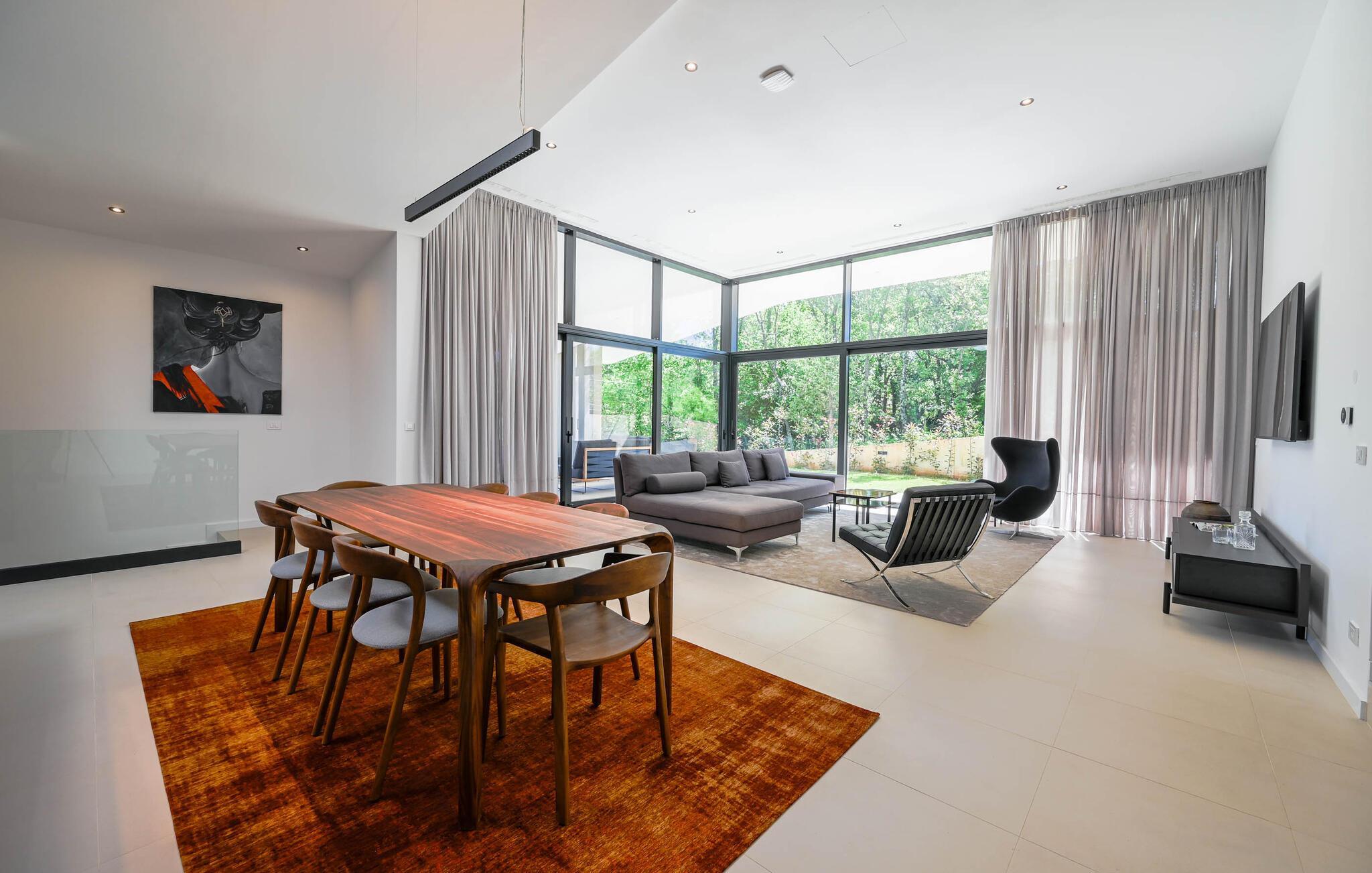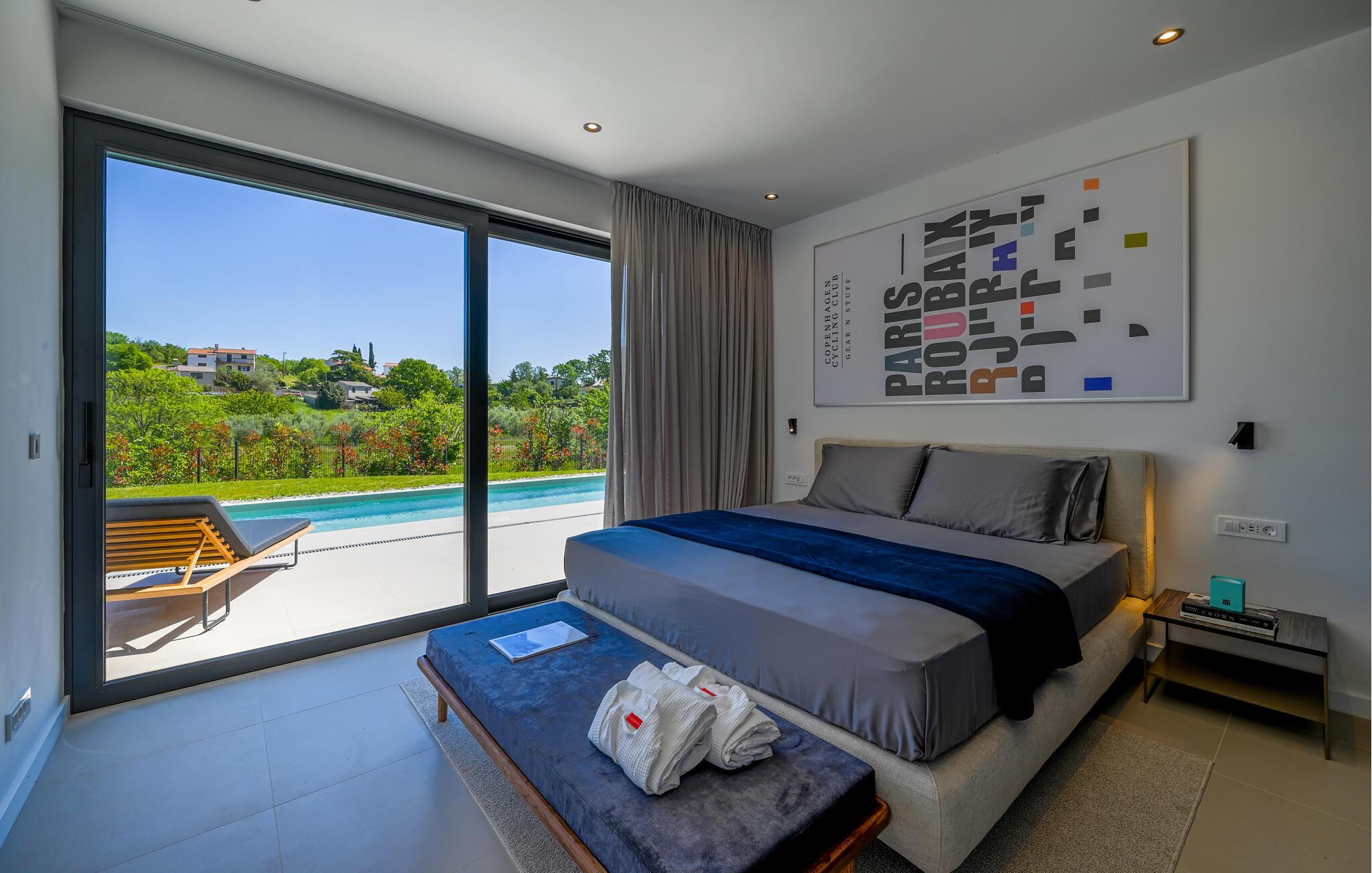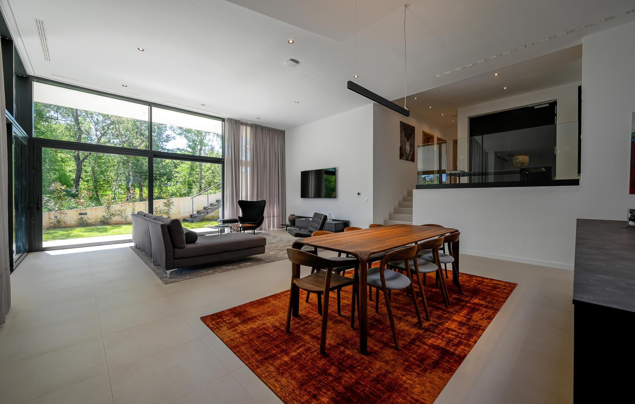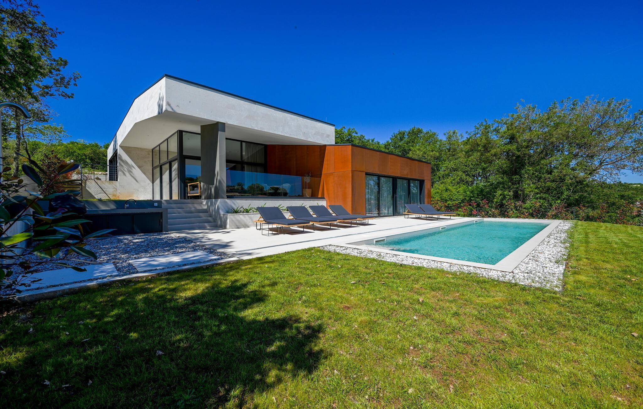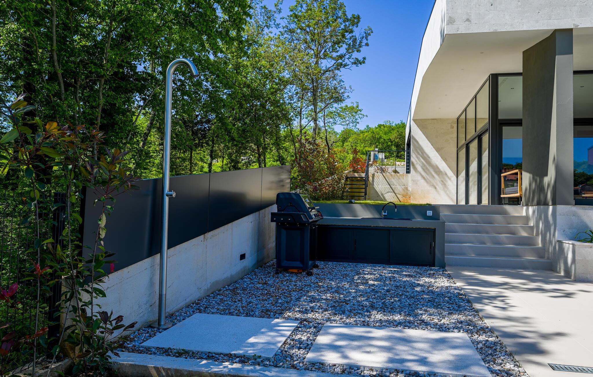 Udenfor venter der en vidunderlig oase af ro. Tag en forfriskende dukkert i den skønne pool, solbad på de stilfulde solsenge, eller nyd en middag i den overdækkede spiseplads med udsigt til det grønne. Haven med grill er ideel til hyggelige barbecues, mens den milde adriaterhavsbrise skaber den perfekte ramme for afslappede aftener.