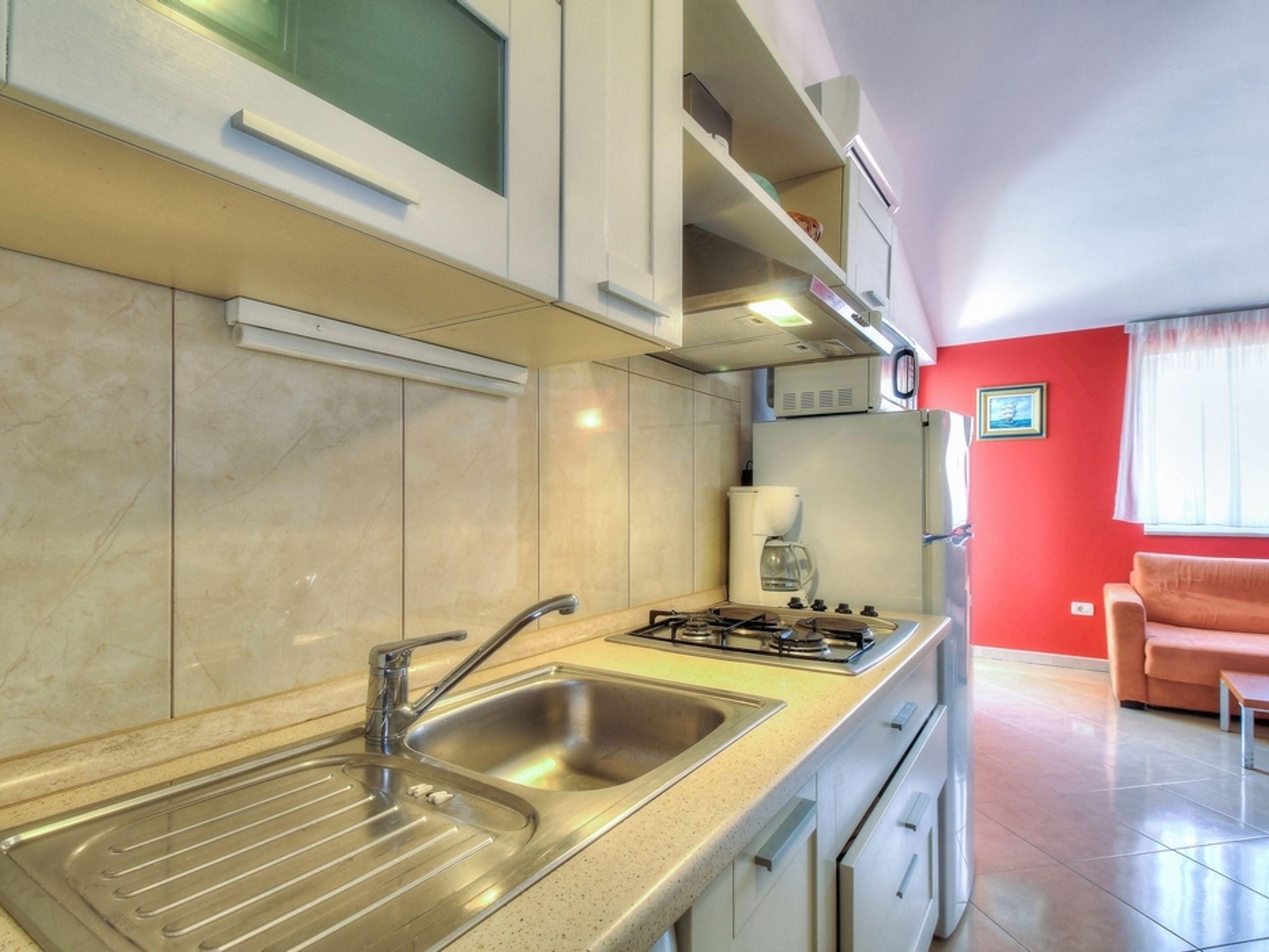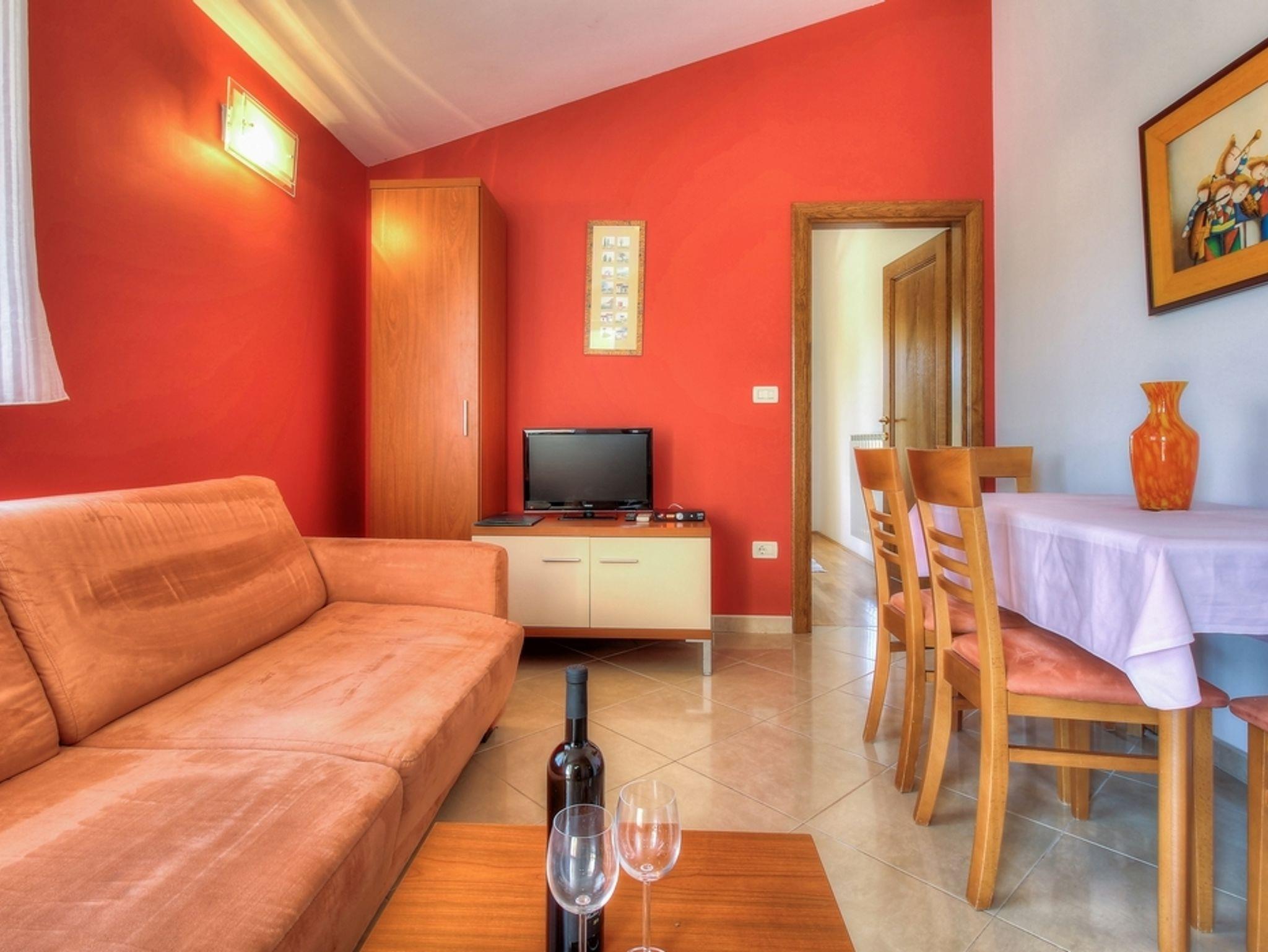 Ferienwohnung bietet Platz für 4 Gäste. Die Betten sind in Schlafzimmern, die es 1 gibt, und in Wohnzimmer, innerhalb einer Gesamtfläche von 33m2, angeordnet. Die Gäste haben eine eigene Terrasse zur Verfügung, auf der sie in warmen Sommernächten genießen können. Es ist erlaubt, Speisen auf dem Gemeinschafts-Grill vorzubereiten. Während ihres Aufenthalts können Gäste das gemeinsam zur Nutzung stehende Schwimmbad benutzen. IM PREIS INBEGRIFFEN: Endreinigung, Klimatisierung, Zentralheizung, Pool, Parkplatz, Internet, Kinderbett, tragbarer Grill. VERBINDLICHE ZUSÄTZLICHE KOSTEN: Kurtaxe (Erwachsene 0,93 € - 1,60 € Nacht/Person, Kinderermäßigung 12 - 17 Jahre), Aufzahlung für Kurzaufenthalte (prozentualer Zuschlag pro Nächtigungsanzahl: 30% - 1, 20% - 2, 10% - 3). UNVERBINDLICHE ZUSÄTZLICHE KOSTEN: Zusatzbett (10,00 € pro Nacht). Die Verfügbarkeit zusätzlicher Dienstleistungen in Ihrem reservierten Termin und die Preise derselben (falls nicht aufgeführt) müssen im Voraus überprüft werden. Zusätzliche Dienstleistungen die in der Zahlungsaufforderung nicht aufgeführt sind werden direkt beim Vermieter bezahlt, angenommen der Gast nutzt auch diese.