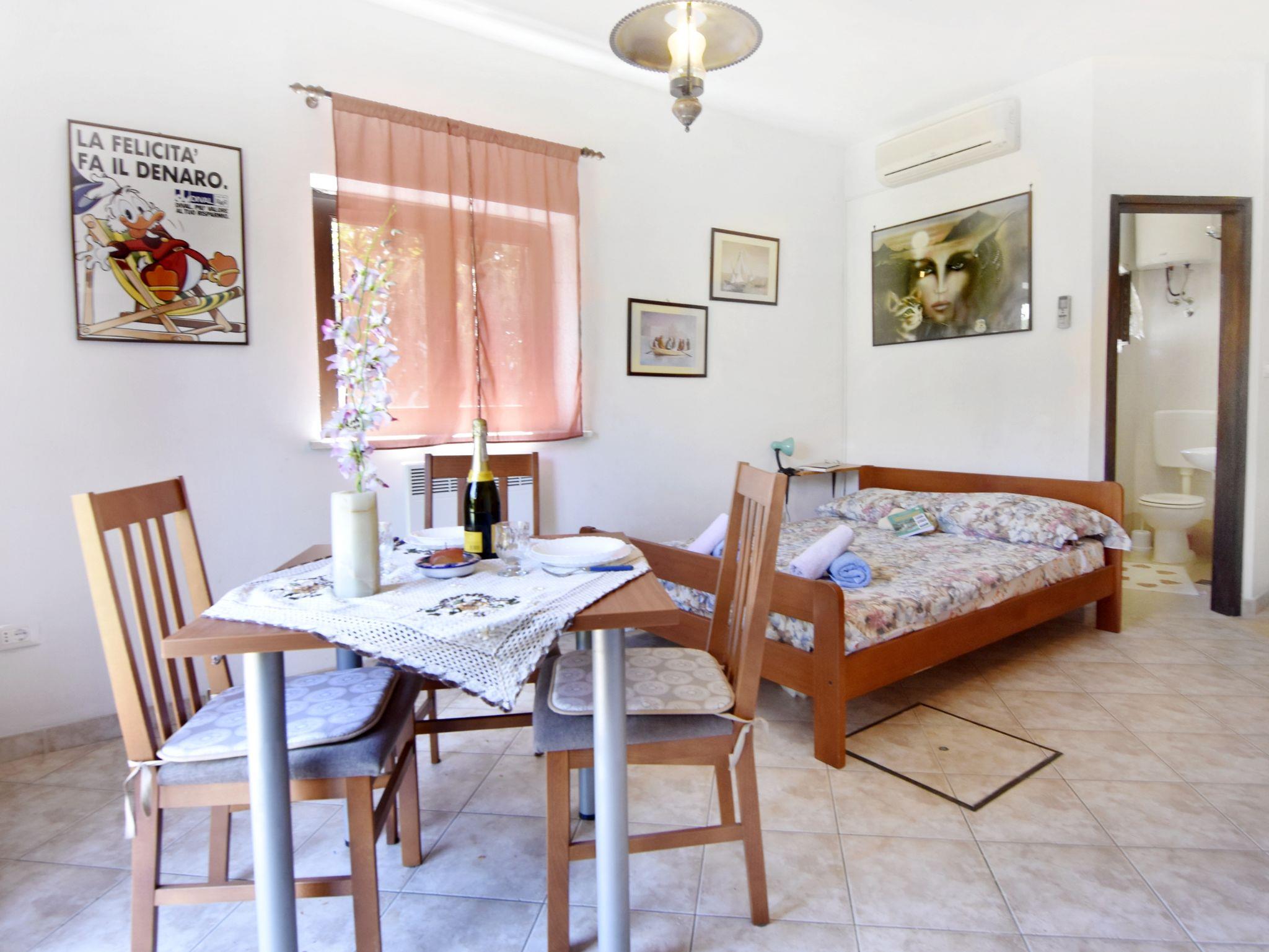 Studio bietet Platz für 2 Gäste. Die Betten sind in Schlafzimmern, die es 1 gibt, innerhalb einer Gesamtfläche von 18m2, angeordnet. Die Gäste haben eine eigene Terrasse zur Verfügung, auf der sie in warmen Sommernächten genießen können. In der Unterkunftseinheit besteht die Möglichkeit des Mitbringens von Haustieren gegen Aufpreis. IM PREIS INBEGRIFFEN: Kurtaxe, Endreinigung, Klimatisierung, Parkplatz, Internet. UNVERBINDLICHE ZUSÄTZLICHE KOSTEN: Haustiere (10,00 € pro Nacht). Die Verfügbarkeit zusätzlicher Dienstleistungen in Ihrem reservierten Termin und die Preise derselben (falls nicht aufgeführt) müssen im Voraus überprüft werden. Zusätzliche Dienstleistungen die in der Zahlungsaufforderung nicht aufgeführt sind werden direkt beim Vermieter bezahlt, angenommen der Gast nutzt auch diese.
