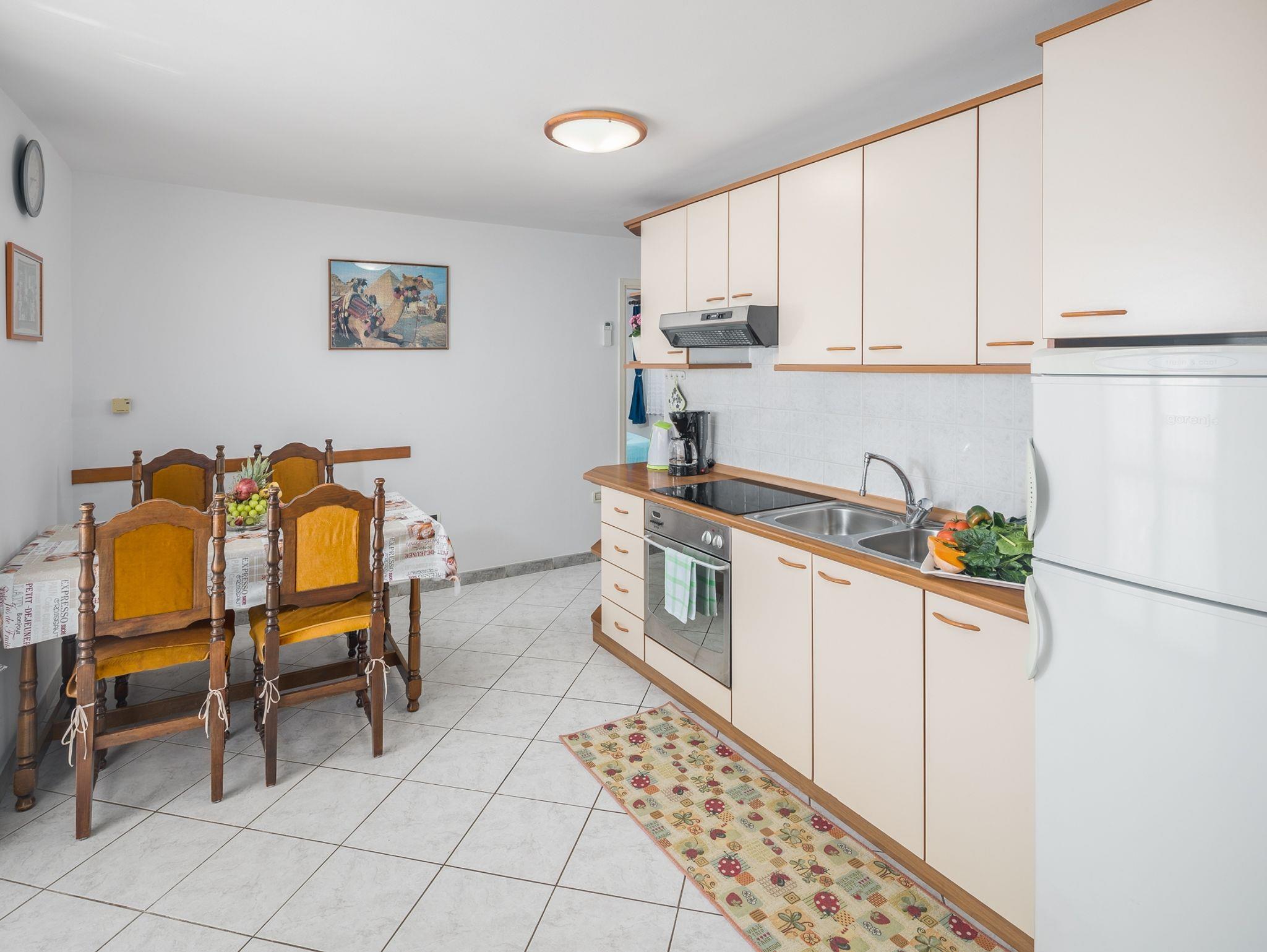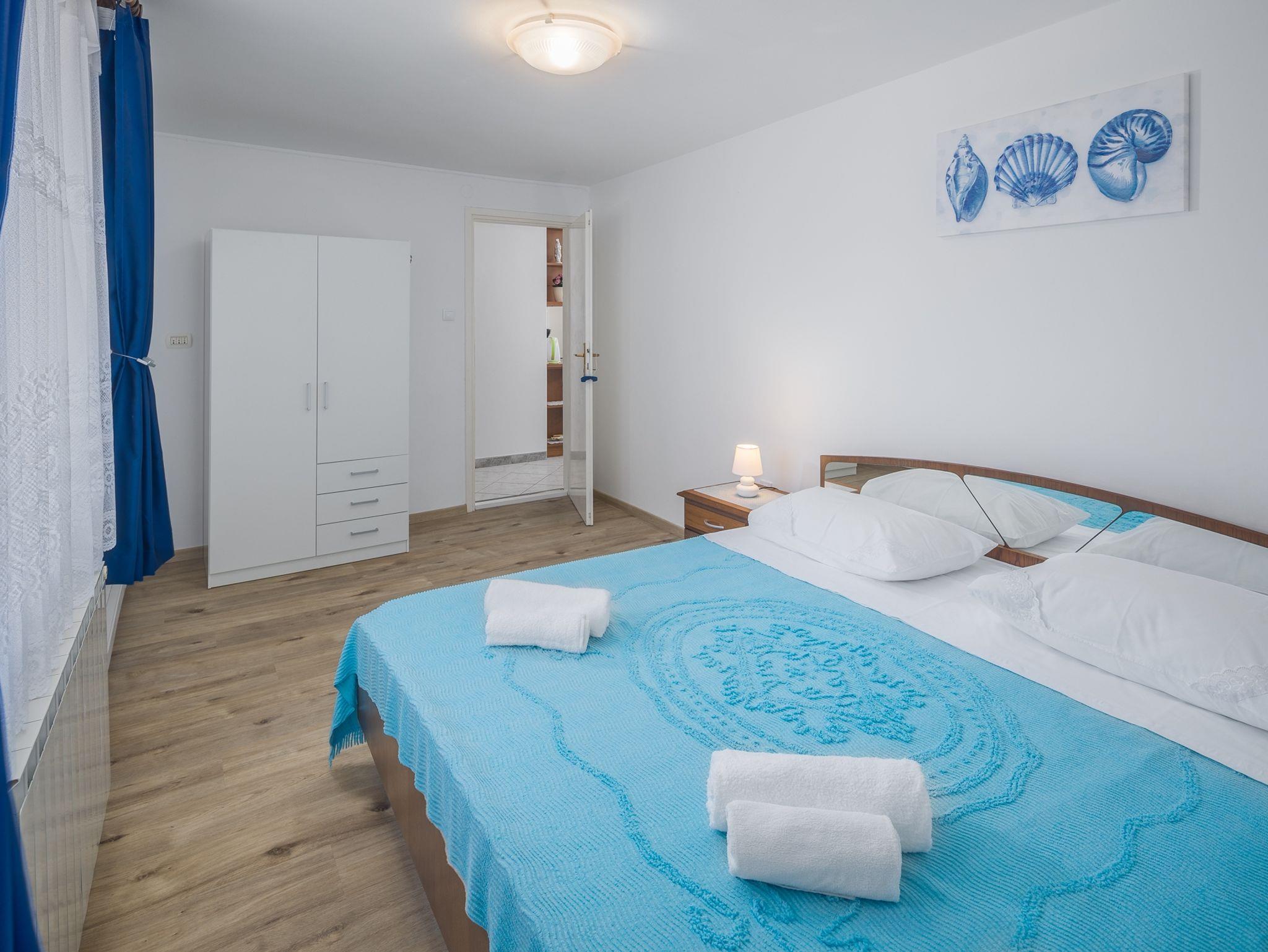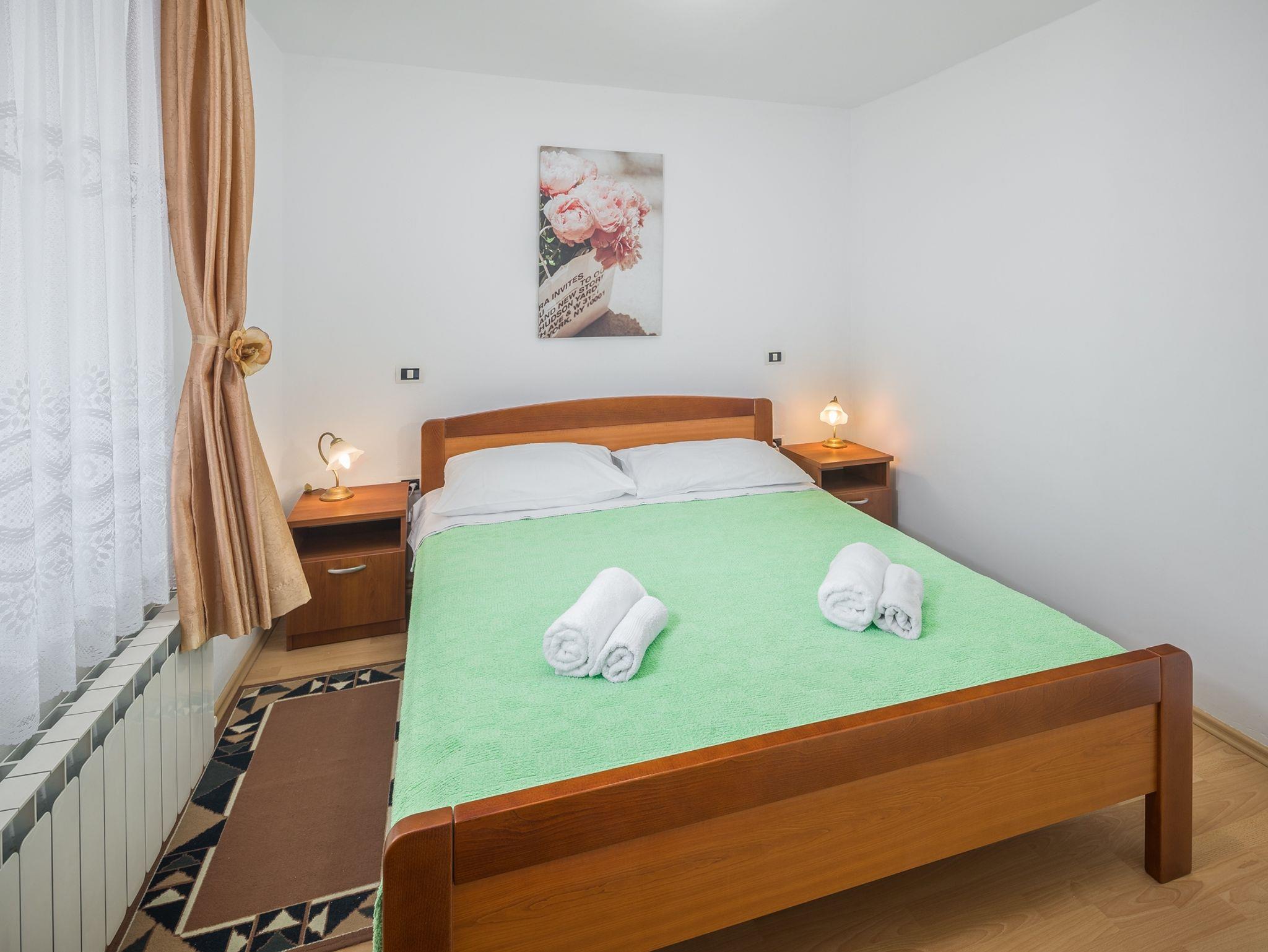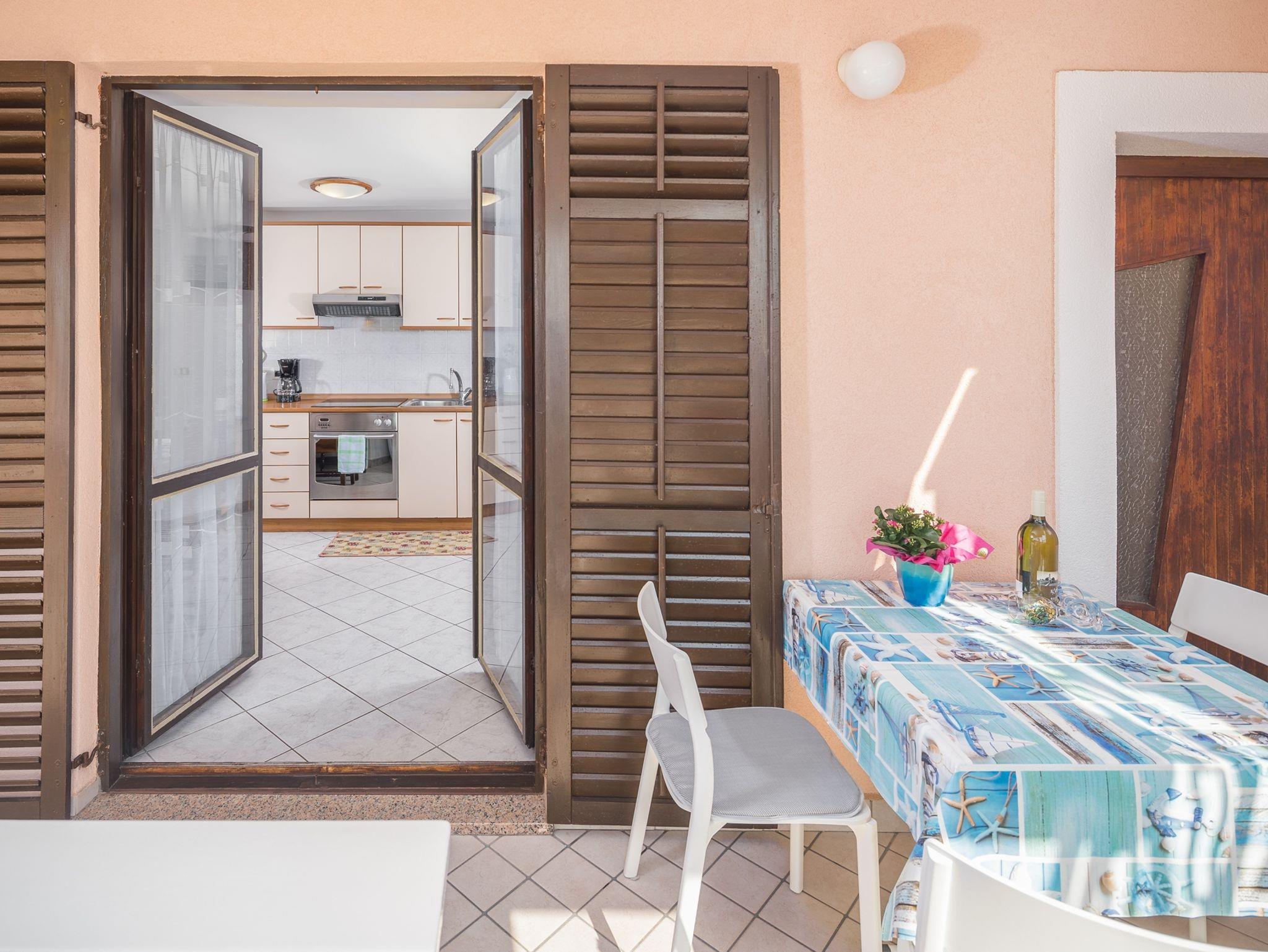 Ferienwohnung bietet Platz für 4 Gäste. Die Betten sind in Schlafzimmern, die es 2 gibt, innerhalb einer Gesamtfläche von 43m2, angeordnet. Die Gäste haben eine eigene Terrasse zur Verfügung, auf der sie in warmen Sommernächten genießen können. Das Apartment bietet Meerblick. In der Unterkunftseinheit besteht die Möglichkeit des Mitbringens von Haustieren gegen Aufpreis. Durch die Terrasse der gebuchten Unterkunftseinheit gehen auch andere Gäste oder Vermieter. IM PREIS INBEGRIFFEN: Kurtaxe, Endreinigung, Klimatisierung, Zentralheizung, Parkplatz, Internet, Föhn. VERBINDLICHE ZUSÄTZLICHE KOSTEN: Aufzahlung für Kurzaufenthalte (prozentualer Zuschlag pro Nächtigungsanzahl: 30% - 1, 20% - 2, 10% - 3). UNVERBINDLICHE ZUSÄTZLICHE KOSTEN: Wäschewaschen (3,00 € Waschen), Haustiere (10,00 € pro Nacht), Zusatzbett (10,00 € pro Nacht). Die Verfügbarkeit zusätzlicher Dienstleistungen in Ihrem reservierten Termin und die Preise derselben (falls nicht aufgeführt) müssen im Voraus überprüft werden. Zusätzliche Dienstleistungen die in der Zahlungsaufforderung nicht aufgeführt sind werden direkt beim Vermieter bezahlt, angenommen der Gast nutzt auch diese.