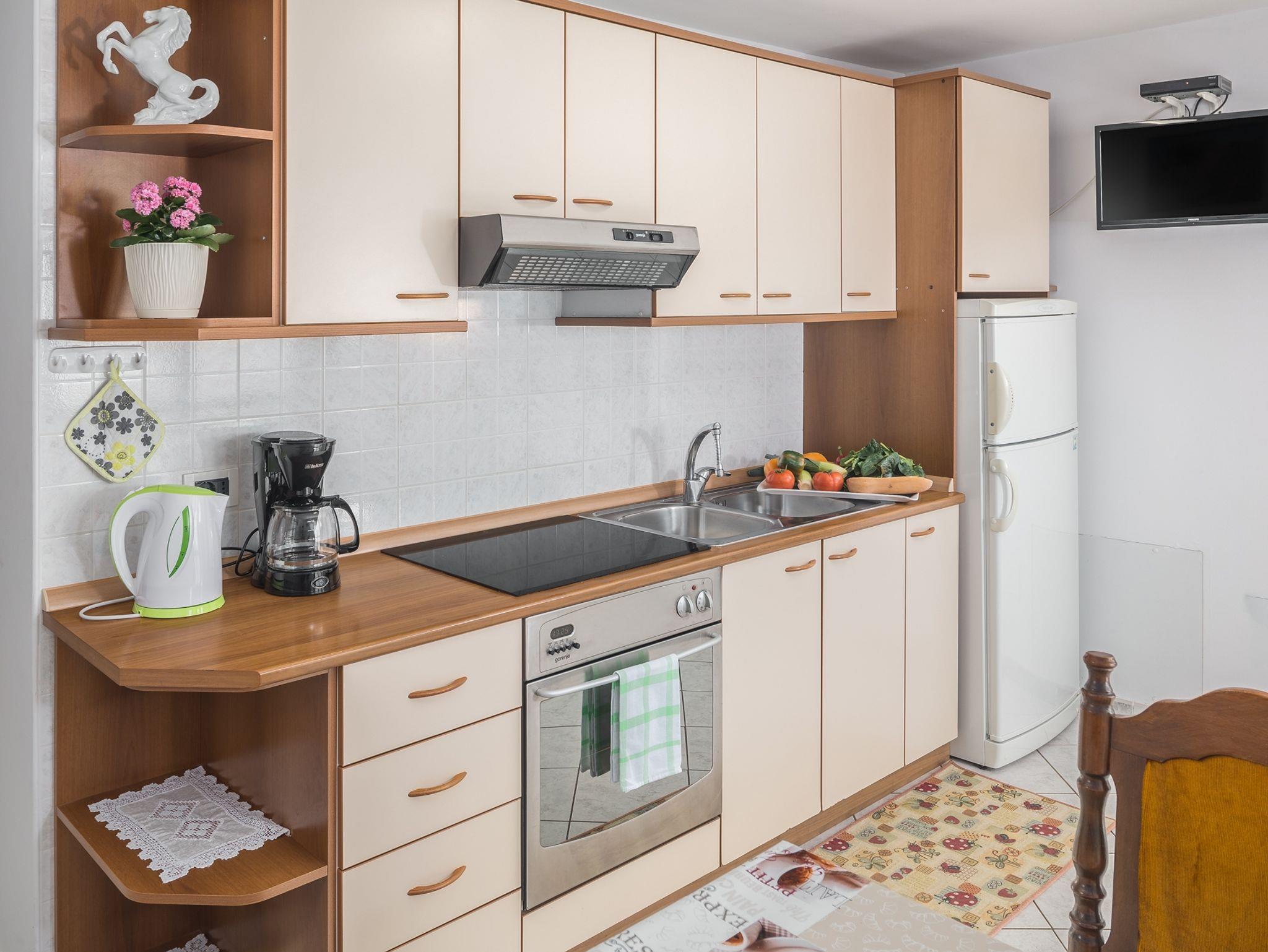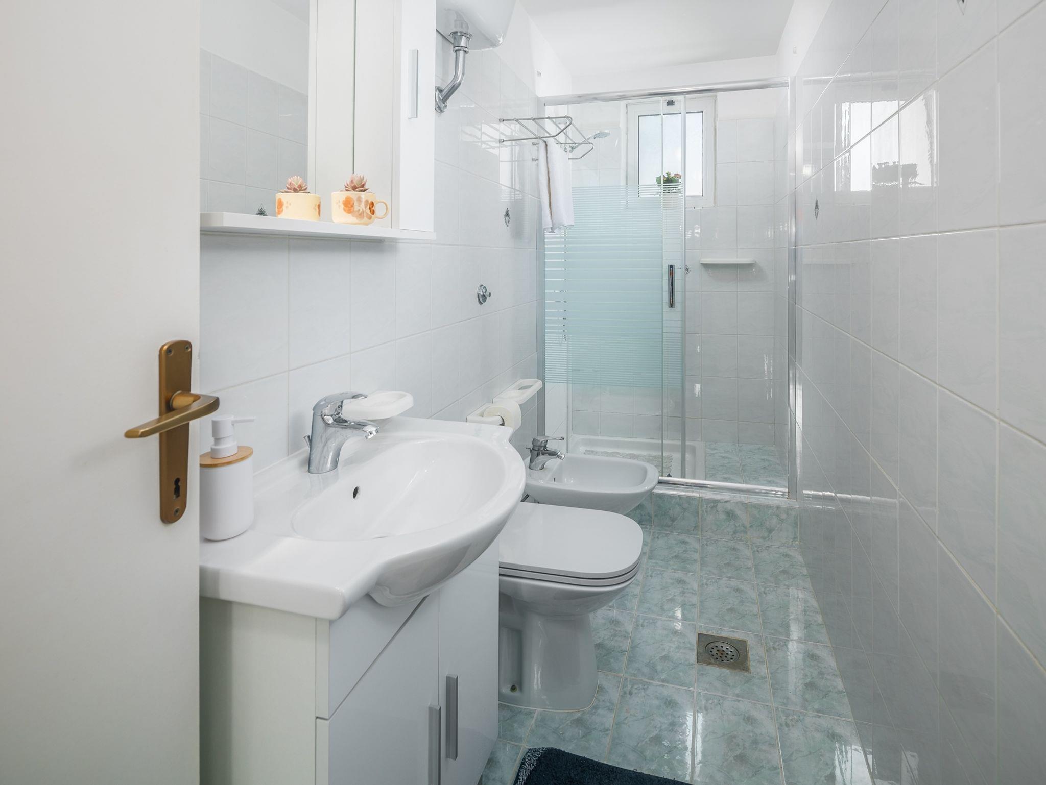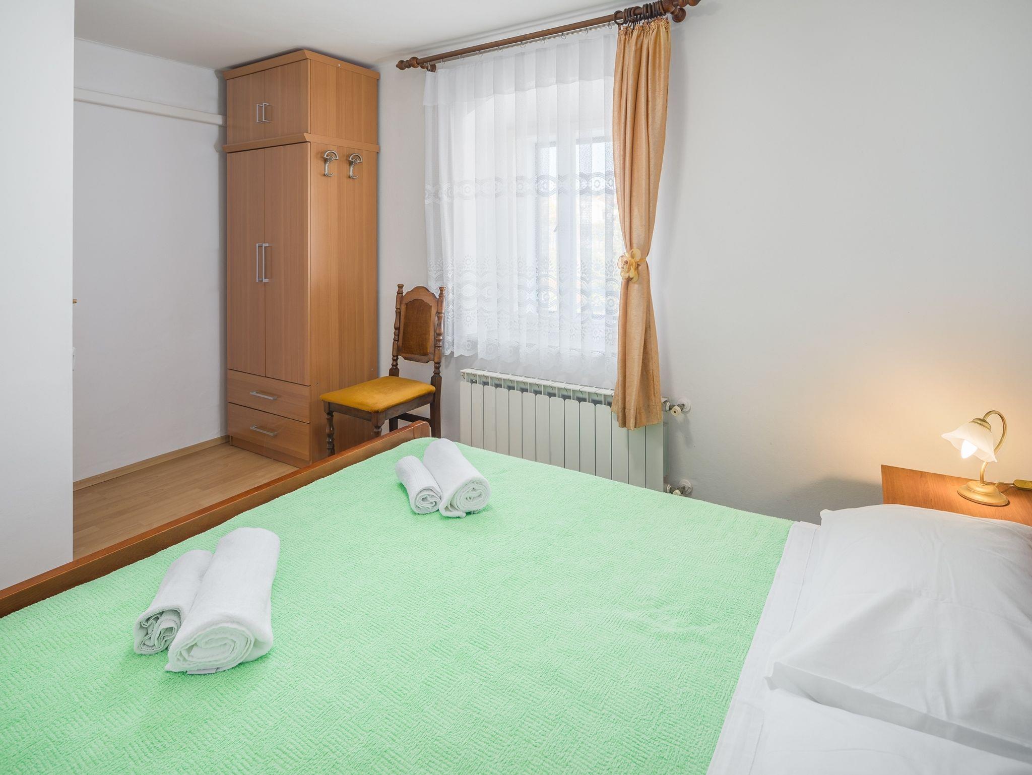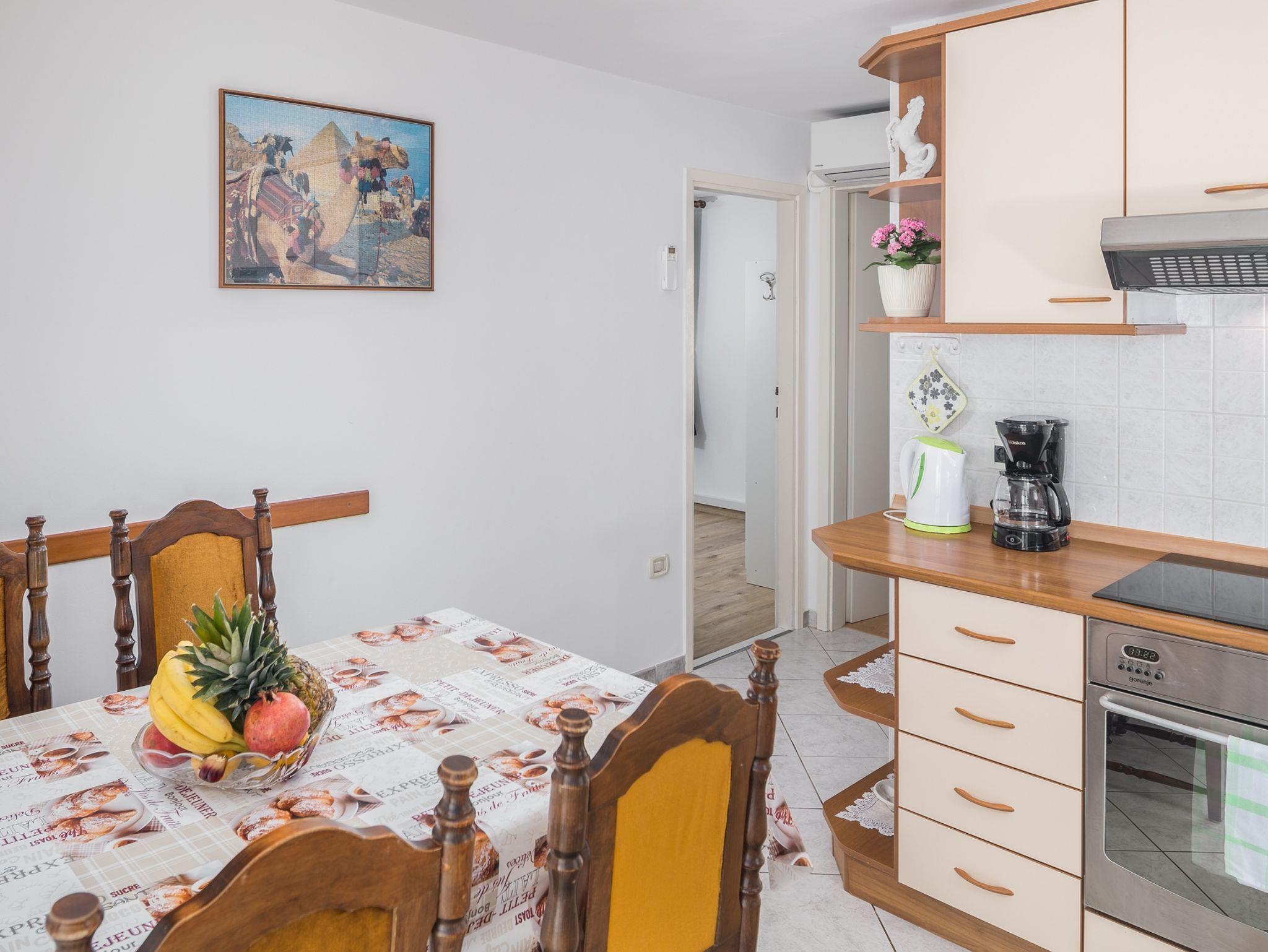 Ferienwohnung bietet Platz für 4 Gäste. Die Betten sind in Schlafzimmern, die es 2 gibt, innerhalb einer Gesamtfläche von 43m2, angeordnet. Die Gäste haben eine eigene Terrasse zur Verfügung, auf der sie in warmen Sommernächten genießen können. Das Apartment bietet Meerblick. In der Unterkunftseinheit besteht die Möglichkeit des Mitbringens von Haustieren gegen Aufpreis. Durch die Terrasse der gebuchten Unterkunftseinheit gehen auch andere Gäste oder Vermieter. IM PREIS INBEGRIFFEN: Kurtaxe, Endreinigung, Klimatisierung, Zentralheizung, Parkplatz, Internet, Föhn. VERBINDLICHE ZUSÄTZLICHE KOSTEN: Aufzahlung für Kurzaufenthalte (prozentualer Zuschlag pro Nächtigungsanzahl: 30% - 1, 20% - 2, 10% - 3). UNVERBINDLICHE ZUSÄTZLICHE KOSTEN: Wäschewaschen (3,00 € Waschen), Haustiere (10,00 € pro Nacht), Zusatzbett (10,00 € pro Nacht). Die Verfügbarkeit zusätzlicher Dienstleistungen in Ihrem reservierten Termin und die Preise derselben (falls nicht aufgeführt) müssen im Voraus überprüft werden. Zusätzliche Dienstleistungen die in der Zahlungsaufforderung nicht aufgeführt sind werden direkt beim Vermieter bezahlt, angenommen der Gast nutzt auch diese.