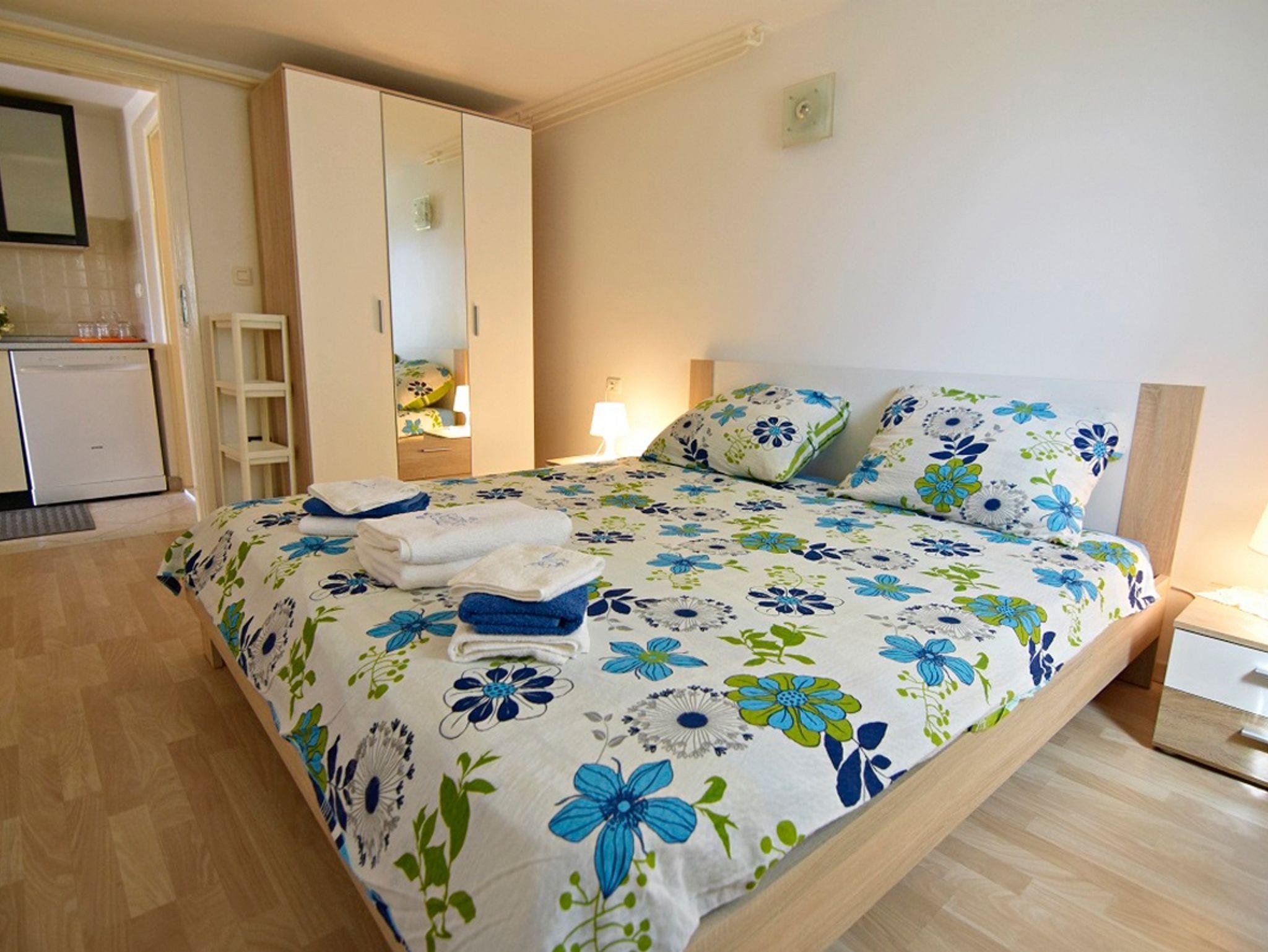 Ferienwohnung bietet Platz für 4 Gäste. Die Betten sind in Schlafzimmern, die es 1 gibt, und in Wohnzimmer, innerhalb einer Gesamtfläche von 34m2, angeordnet. Die Gäste haben eine eigene Terrasse zur Verfügung, auf der sie in warmen Sommernächten genießen können. Es ist erlaubt, Speisen auf dem Gemeinschafts-Grill vorzubereiten. In der Unterkunftseinheit besteht die Möglichkeit des Mitbringens von Haustieren gegen Aufpreis. IM PREIS INBEGRIFFEN: Kurtaxe, Endreinigung, Parkplatz, Internet, Fahrrad, Bügeleisen, Bügelbrett, Föhn. VERBINDLICHE ZUSÄTZLICHE KOSTEN: Aufzahlung für Kurzaufenthalte (prozentualer Zuschlag pro Nächtigungsanzahl: 30% - 1, 20% - 2, 10% - 3). UNVERBINDLICHE ZUSÄTZLICHE KOSTEN: Klimatisierung (5,00 € pro Nacht), Haustiere (10,00 € pro Nacht), Zusatzbett (7,00 € pro Nacht). Die Verfügbarkeit zusätzlicher Dienstleistungen in Ihrem reservierten Termin und die Preise derselben (falls nicht aufgeführt) müssen im Voraus überprüft werden. Zusätzliche Dienstleistungen die in der Zahlungsaufforderung nicht aufgeführt sind werden direkt beim Vermieter bezahlt, angenommen der Gast nutzt auch diese.