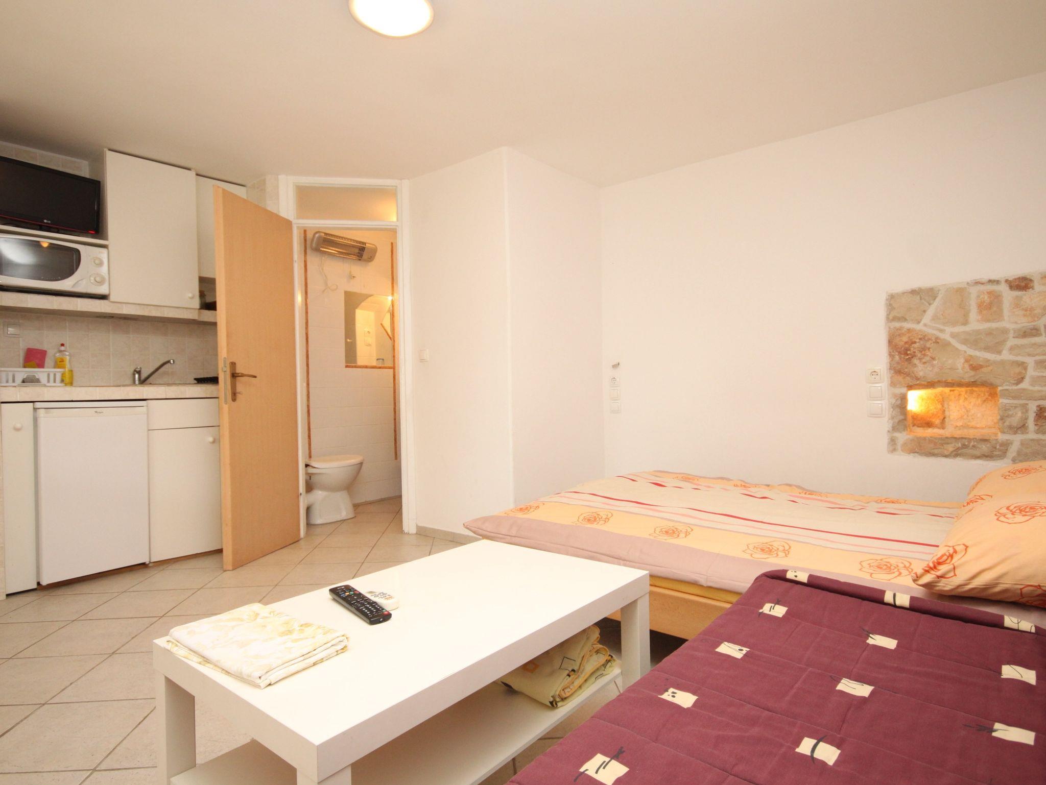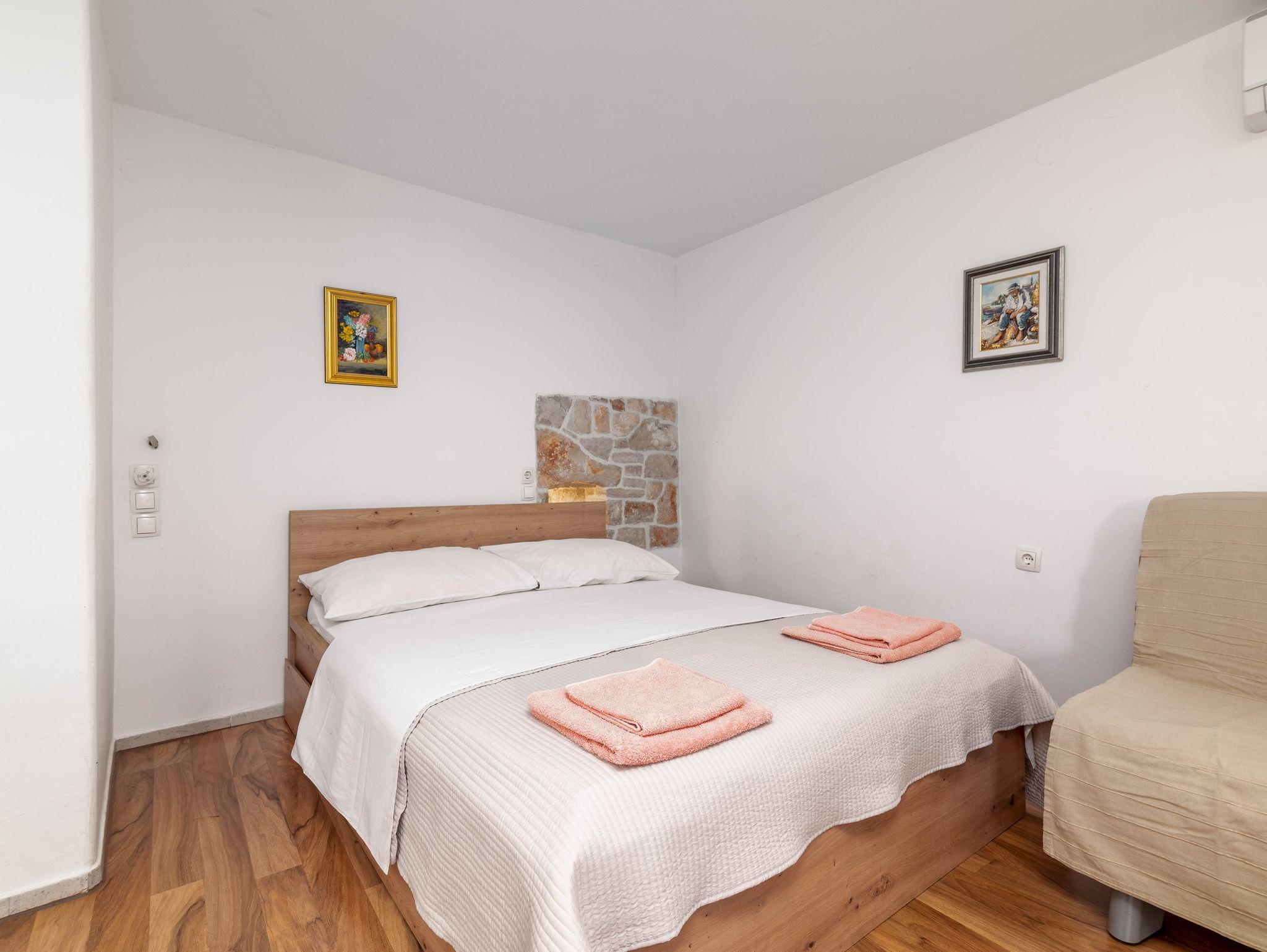 Studio bietet Platz für 2 Gäste. Die Betten sind in Schlafzimmern, die es 1 gibt, innerhalb einer Gesamtfläche von 19m2, angeordnet. Die Gäste haben eine eigene Terrasse zur Verfügung, auf der sie in warmen Sommernächten genießen können. Es ist erlaubt, Speisen auf dem Gemeinschafts-Grill vorzubereiten. In der Unterkunftseinheit besteht die Möglichkeit des Mitbringens von Haustieren gegen Aufpreis. Durch die Terrasse der gebuchten Unterkunftseinheit gehen auch andere Gäste oder Vermieter. IM PREIS INBEGRIFFEN: Kurtaxe, Endreinigung, Klimatisierung, Internet, Wäschewaschen, Kinderbett, Bügeleisen, Bügelbrett, Föhn. UNVERBINDLICHE ZUSÄTZLICHE KOSTEN: Haustiere (10,00 € pro Nacht). Die Verfügbarkeit zusätzlicher Dienstleistungen in Ihrem reservierten Termin und die Preise derselben (falls nicht aufgeführt) müssen im Voraus überprüft werden. Zusätzliche Dienstleistungen die in der Zahlungsaufforderung nicht aufgeführt sind werden direkt beim Vermieter bezahlt, angenommen der Gast nutzt auch diese. Ermäßigung auf den Grundpreis: Gratistag 21=19 (bei einem Aufenthalt von 21 Tagen oder mehr erhalten Sie 2 Gratistage für den Aufenthalt bis 31.12.26).