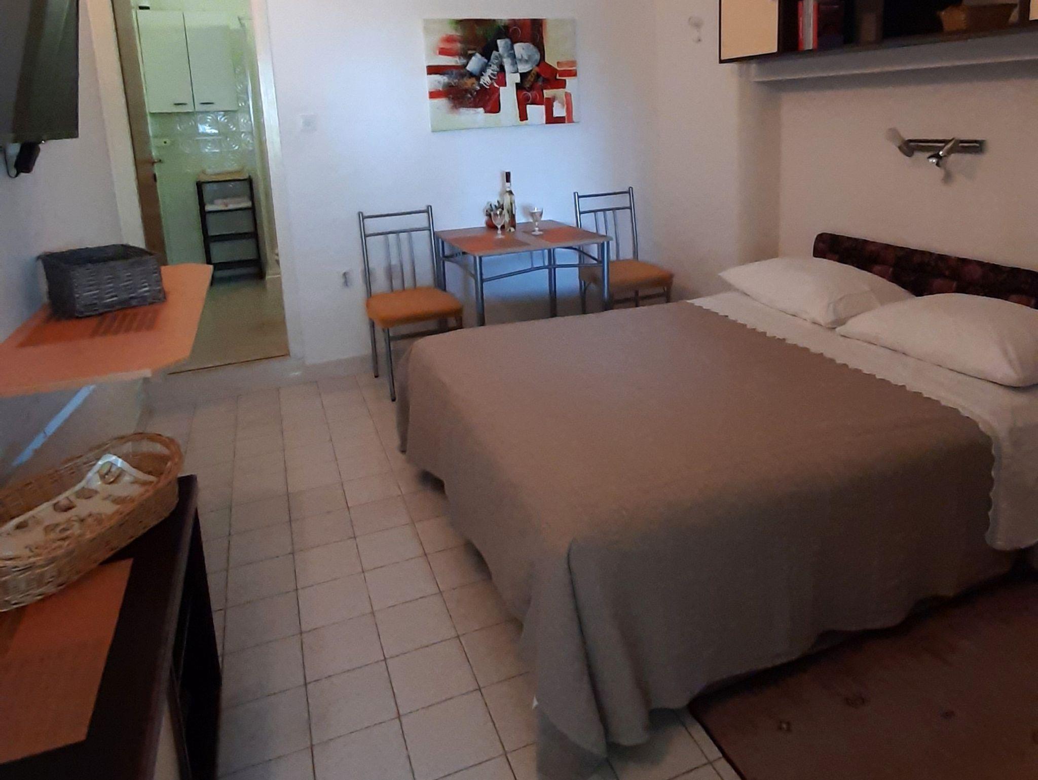 Studio bietet Platz für 2 Gäste. Die Betten sind in Schlafzimmern, die es 1 gibt, innerhalb einer Gesamtfläche von 18m2, angeordnet. Das Studio-Apartment bietet Meerblick. Es ist erlaubt, Speisen auf dem Gemeinschafts-Grill vorzubereiten. Die reservierte Unterkunftseinheit verfügt über einen gemeinsame Terrasse. IM PREIS INBEGRIFFEN: Kurtaxe, Endreinigung, Klimatisierung, Parkplatz, Internet, Kinderbett, Bügeleisen, Föhn, Sonnenschirm. Die Verfügbarkeit zusätzlicher Dienstleistungen in Ihrem reservierten Termin und die Preise derselben (falls nicht aufgeführt) müssen im Voraus überprüft werden. Zusätzliche Dienstleistungen die in der Zahlungsaufforderung nicht aufgeführt sind werden direkt beim Vermieter bezahlt, angenommen der Gast nutzt auch diese.