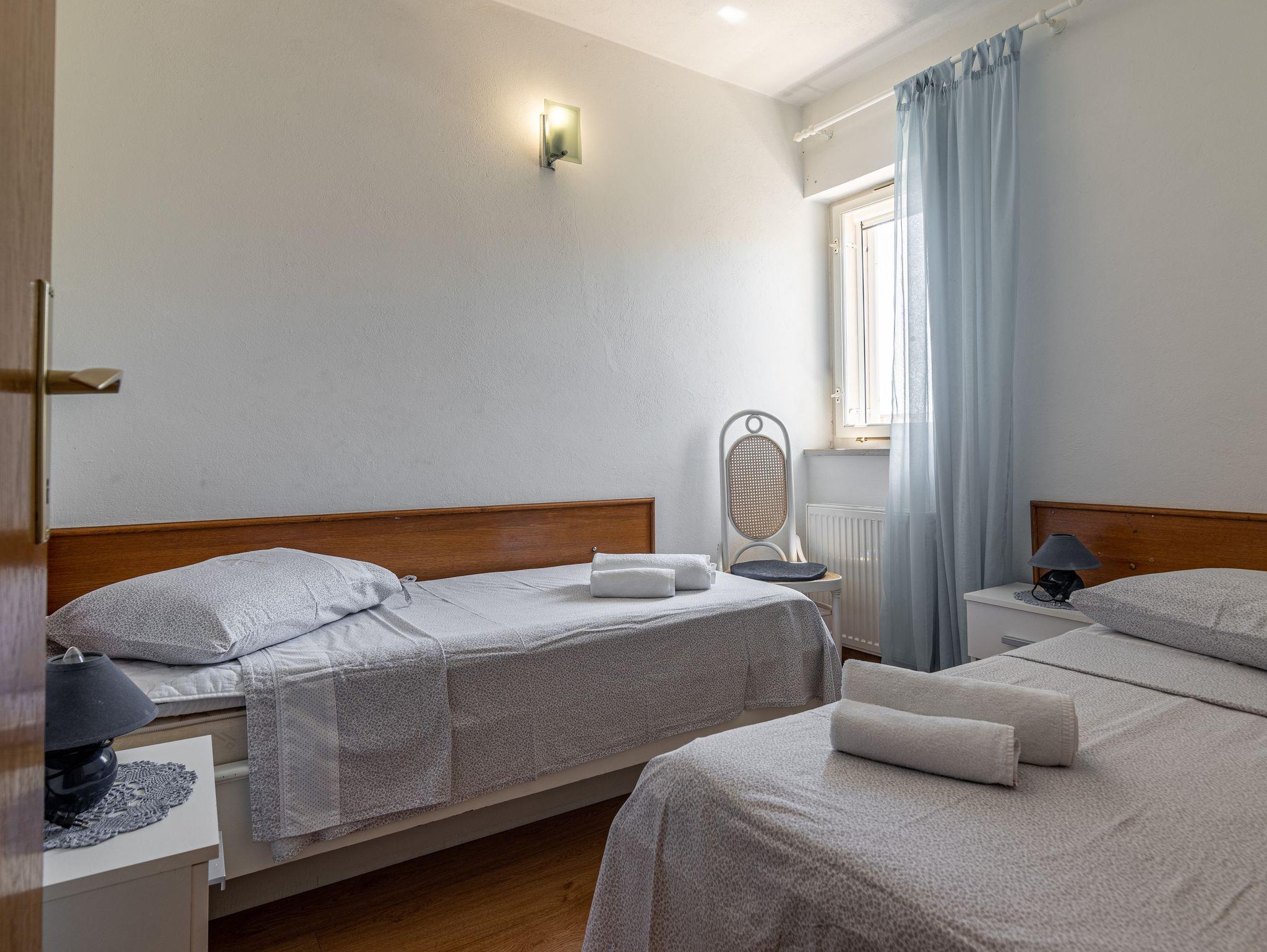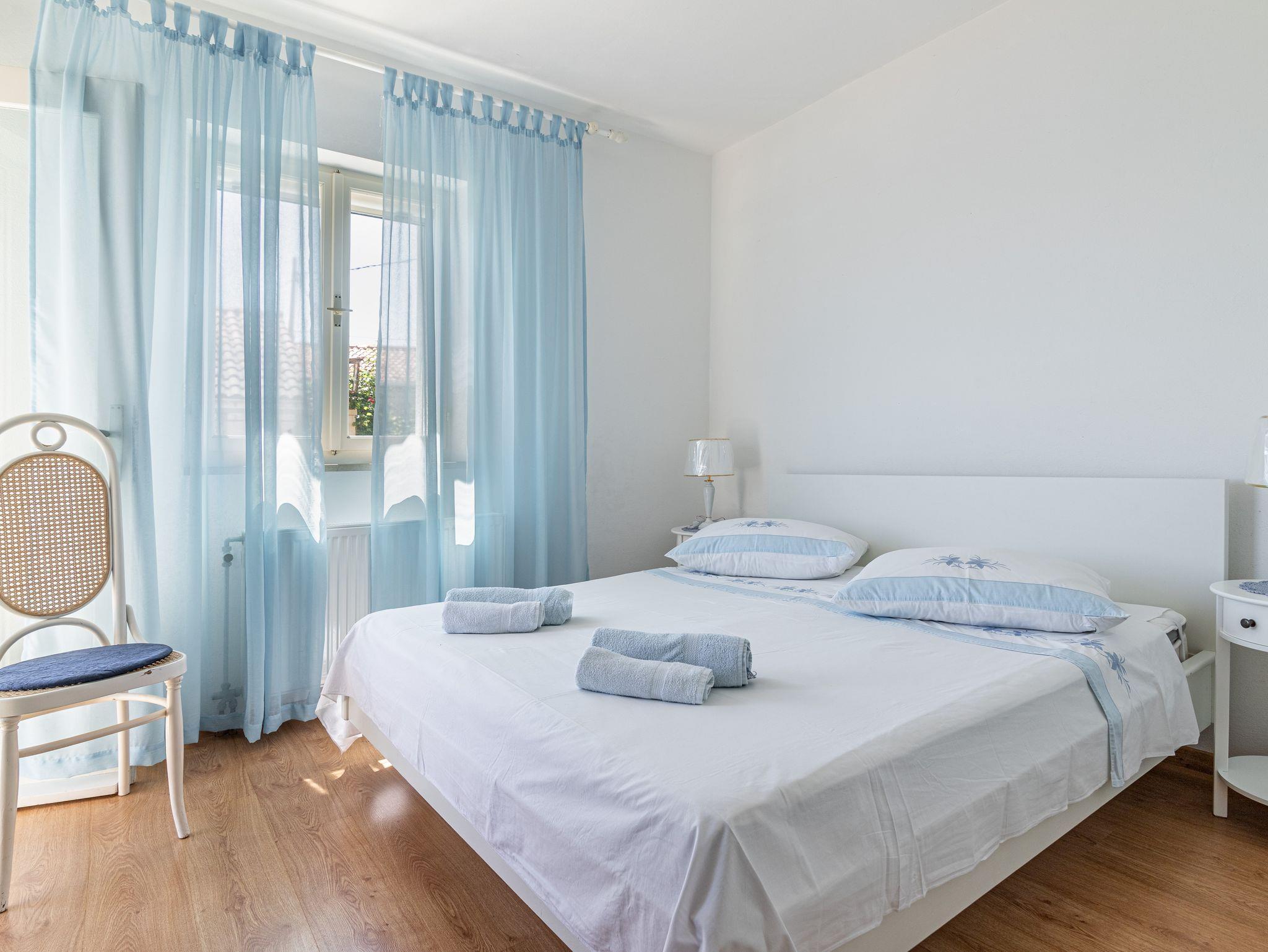 Ferienwohnung bietet Platz für 4 Gäste. Die Betten sind in Schlafzimmern, die es 2 gibt, innerhalb einer Gesamtfläche von 46m2, angeordnet. Die Gäste haben eine eigene Terrasse zur Verfügung, auf der sie in warmen Sommernächten genießen können. Das Apartment bietet Meerblick. Es ist erlaubt, Speisen auf dem Gemeinschafts-Grill vorzubereiten. IM PREIS INBEGRIFFEN: Kurtaxe, Endreinigung, Klimatisierung, Zentralheizung, Parkplatz, Garage, Internet, Bootsanlegeplatz, Bügeleisen, Bügelbrett, Föhn, Sonnenschirm, Liegestühle. UNVERBINDLICHE ZUSÄTZLICHE KOSTEN: Wäschewaschen (3,00 € Waschen). Die Verfügbarkeit zusätzlicher Dienstleistungen in Ihrem reservierten Termin und die Preise derselben (falls nicht aufgeführt) müssen im Voraus überprüft werden. Zusätzliche Dienstleistungen die in der Zahlungsaufforderung nicht aufgeführt sind werden direkt beim Vermieter bezahlt, angenommen der Gast nutzt auch diese.
