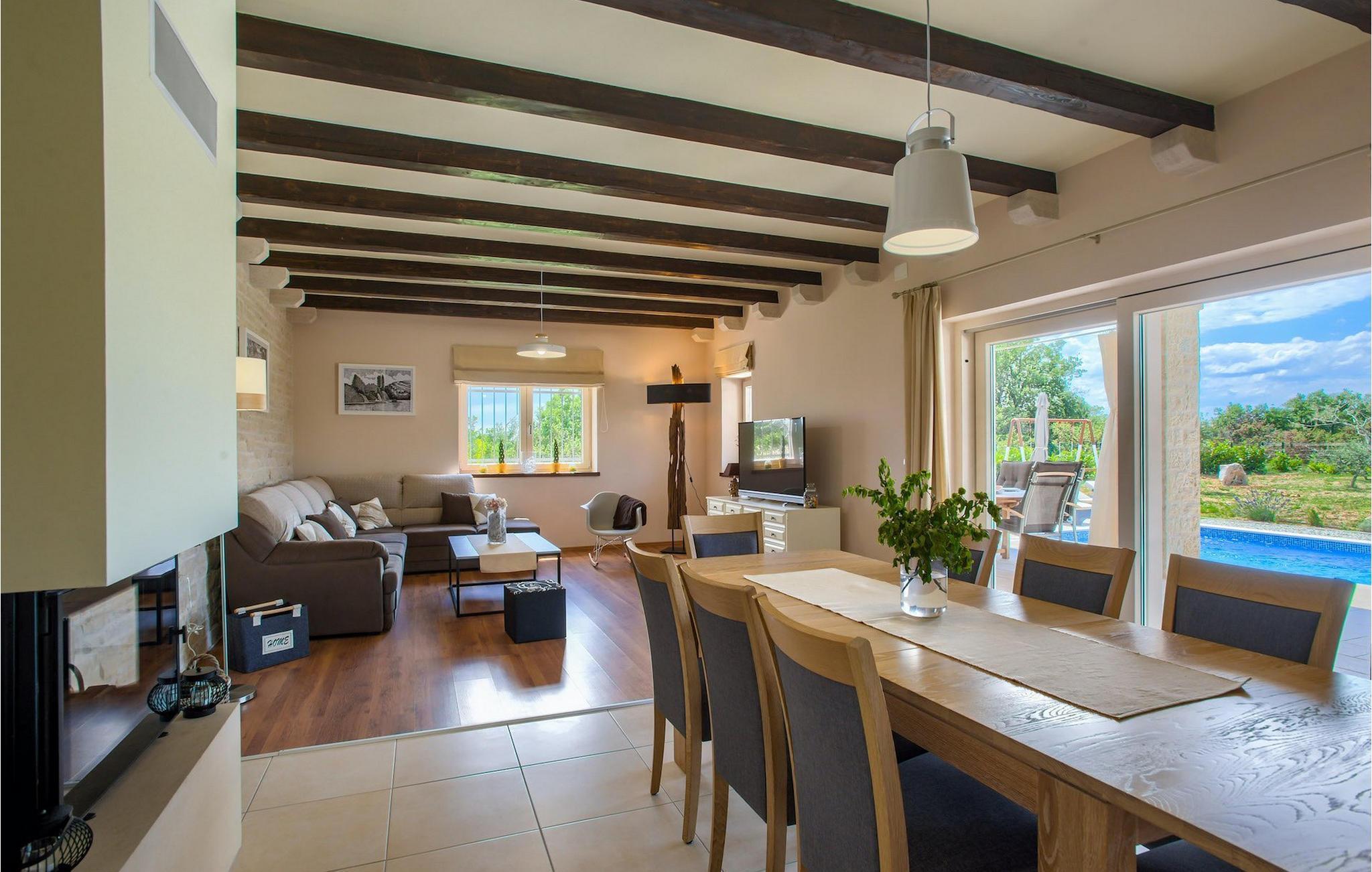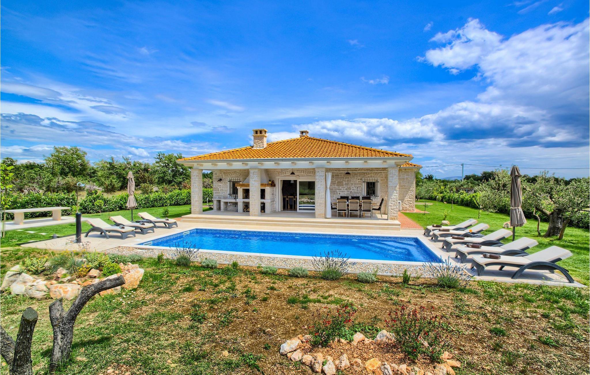 Villa Mary verbindet die Eigenschaften des dalmatinischen Hinterlandes mit ihrem Aussehen und ihrer Umgebung. Das Exterieur aus Stein, das sich auch in der Inneneinrichtung spiegelt, Holzbalken an den Decken und die Holzdetails der Möbel verströmen dalmatinischen Charme, aber alle Annehmlichkeiten für einen modernen Lebensstil sind natürlich vorhanden. Dieses einstöckige Haus ist eine ausgezeichnete Wahl für Familien mit Kindern, da alle Zimmer leicht zugänglich sind. Der offene Grundriss von Wohnzimmer, Esszimmer und Küche ermöglicht einen direkten Zugang zur schönen Außenterrasse. Vier geräumige Schlafzimmer, Badezimmer in jedem Zimmer und Annehmlichkeiten in Form von Klimaanlage und Fernseher stellen Ihre Privatsphäre und Komfort für optimale Erholung sicher. Verbringen Sie Ihre Tage im Pool, umgeben von Olivenbäumen und dem Duft von Lavendel für die nötige Abkühlung in der Sommerhitze oder bei einem Drink auf den vielen Liegestühlen rund um den Pool. Auch Ihre Kleinen kommen nicht zu kurz am Pool, aber auch mit den eigens für sie aufgestellten Schaukeln im Garten. Beginnen Sie Ihren Tag mit einem Morgenkaffee und lassen Sie diesen mit dem Abendessen auf der Außenterrasse mit herrlichem Blick auf den Garten ausklingen.Das dalmatinische Hinterland, insbesondere die Gegend um Šibenik, ist bekannt für die wunderschöne Natur, hervorragendes Klima und köstliche Küche. Nur eine kurze Autofahrt von der Villa entfernt finden Sie Berge, wunderschöne Wasserfälle im Nationalpark Krka und die sonnige kroatische Küste. Wenn Sie gerne erkunden, empfehlen wir Ihnen, die Stadt Šibenik zu besuchen, die für ihr reiches kulturelles Erbe bekannt ist. Die Sehenswürdigkeiten, die besonders hervorstechen, sind die Kathedrale des Hl. Jakob und die Festung des Hl. Nikolaus, die in die UNESCO-Liste des Weltkulturerbes aufgenommen wurden. Die Villa befindet sich auch in der Nähe der Schlucht des Flusses Cikola, wo Sie wandern können oder diejenigen, die Adrenalin suchen, können dort die Seilrutsche ausprobieren und die Region aus der Vogelperspektive erleben.