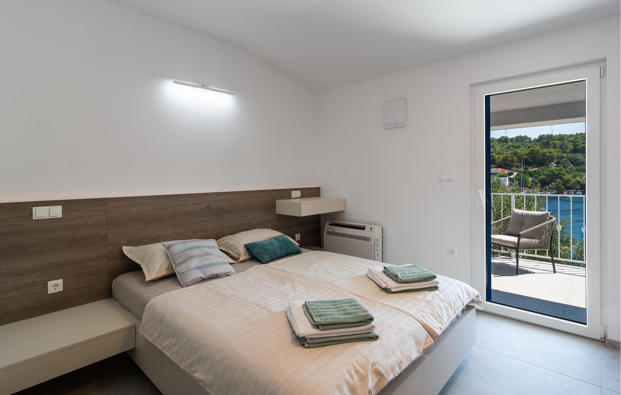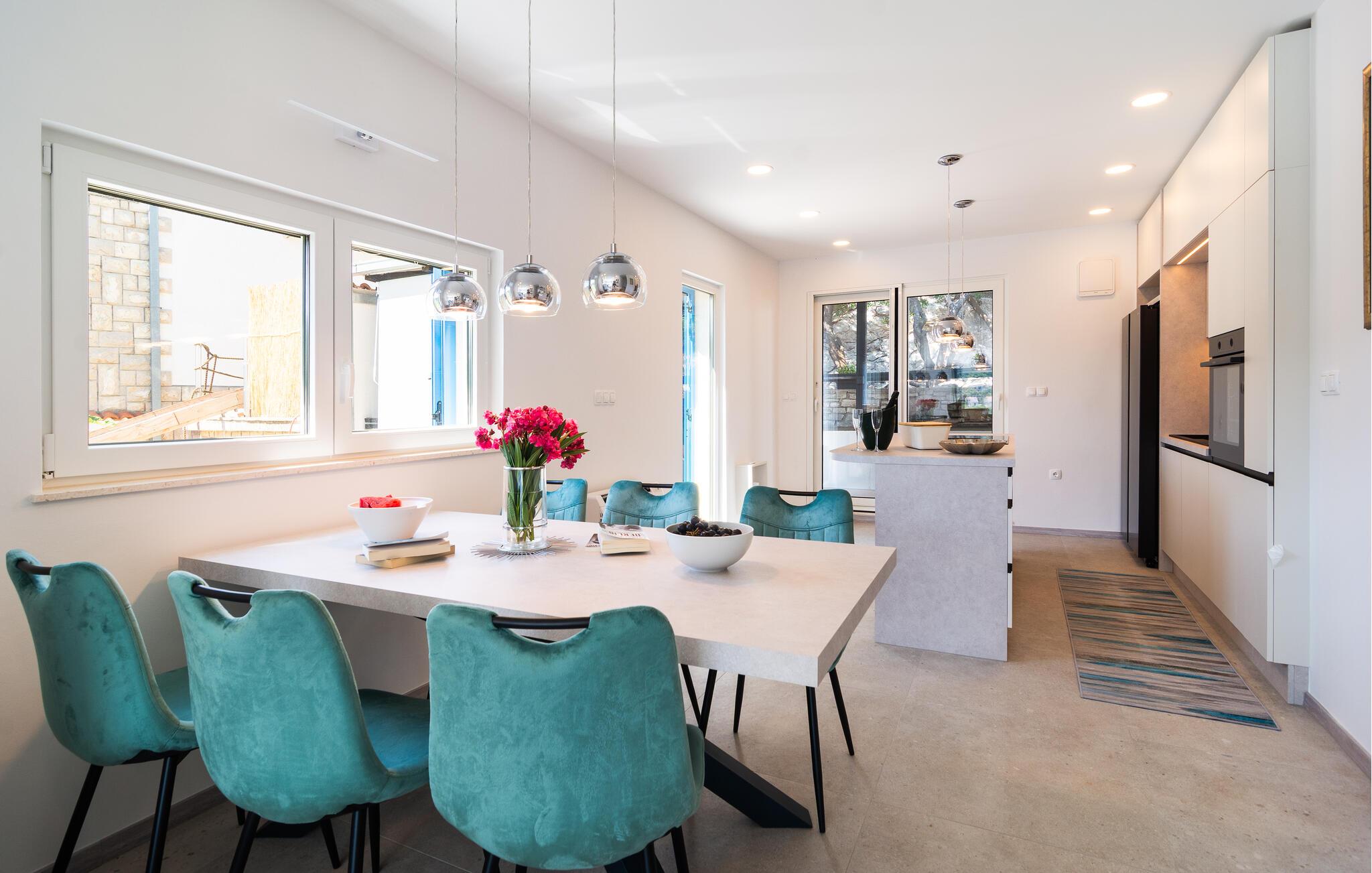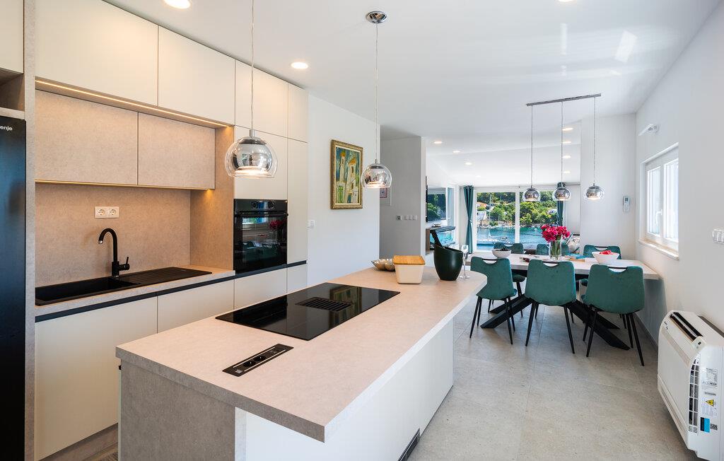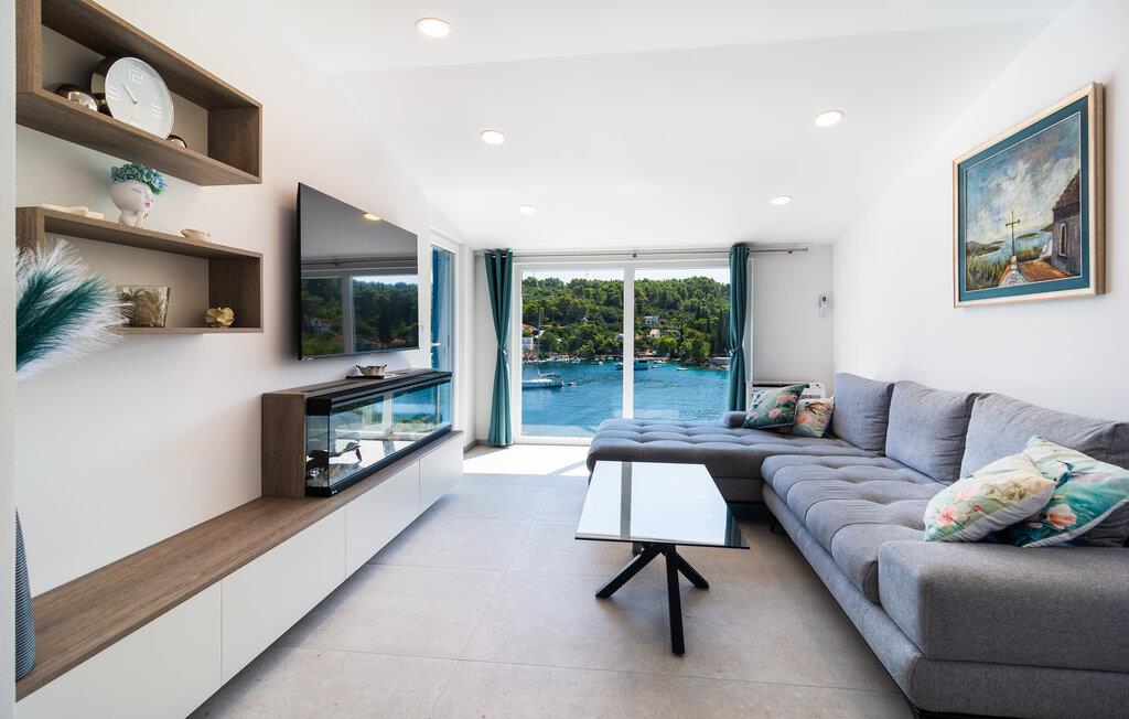Velkommen til denne stilfuldt møblerede ferieoase – her kan I nyde en fantastisk beliggenhed ved den rolige Rogac-bugt og moderne faciliteter af høj kvalitet. Skab kulinariske lækkerier og sæt jer ved det hyggeligt oplyste spisebord. Læg fødderne op i den rummelige sofagruppe og nyd den beroligende udsigt over det turkisblå vand. Stream en spændende serie her om aftenen eller fordyb jer i jeres ferielæsning.