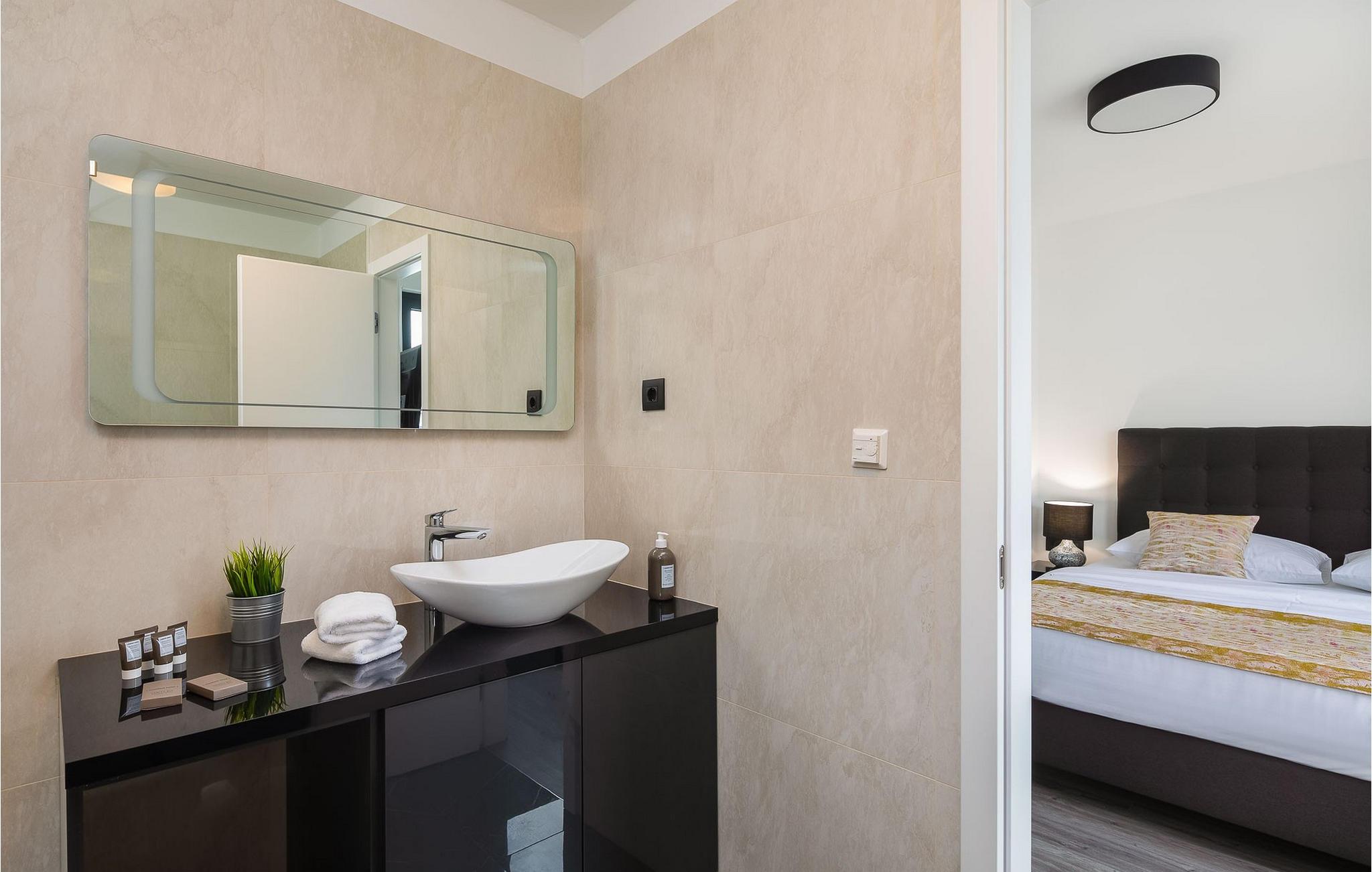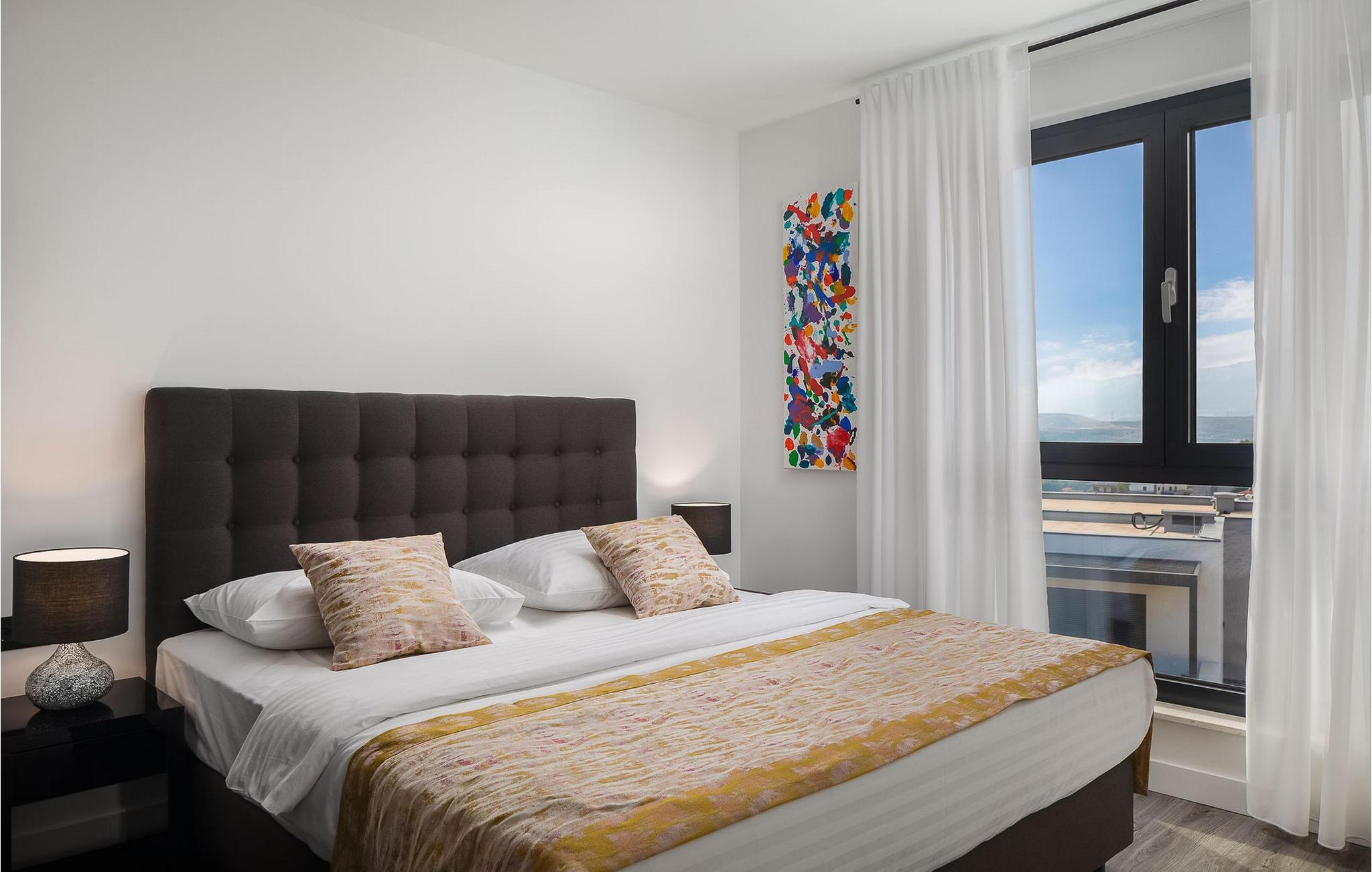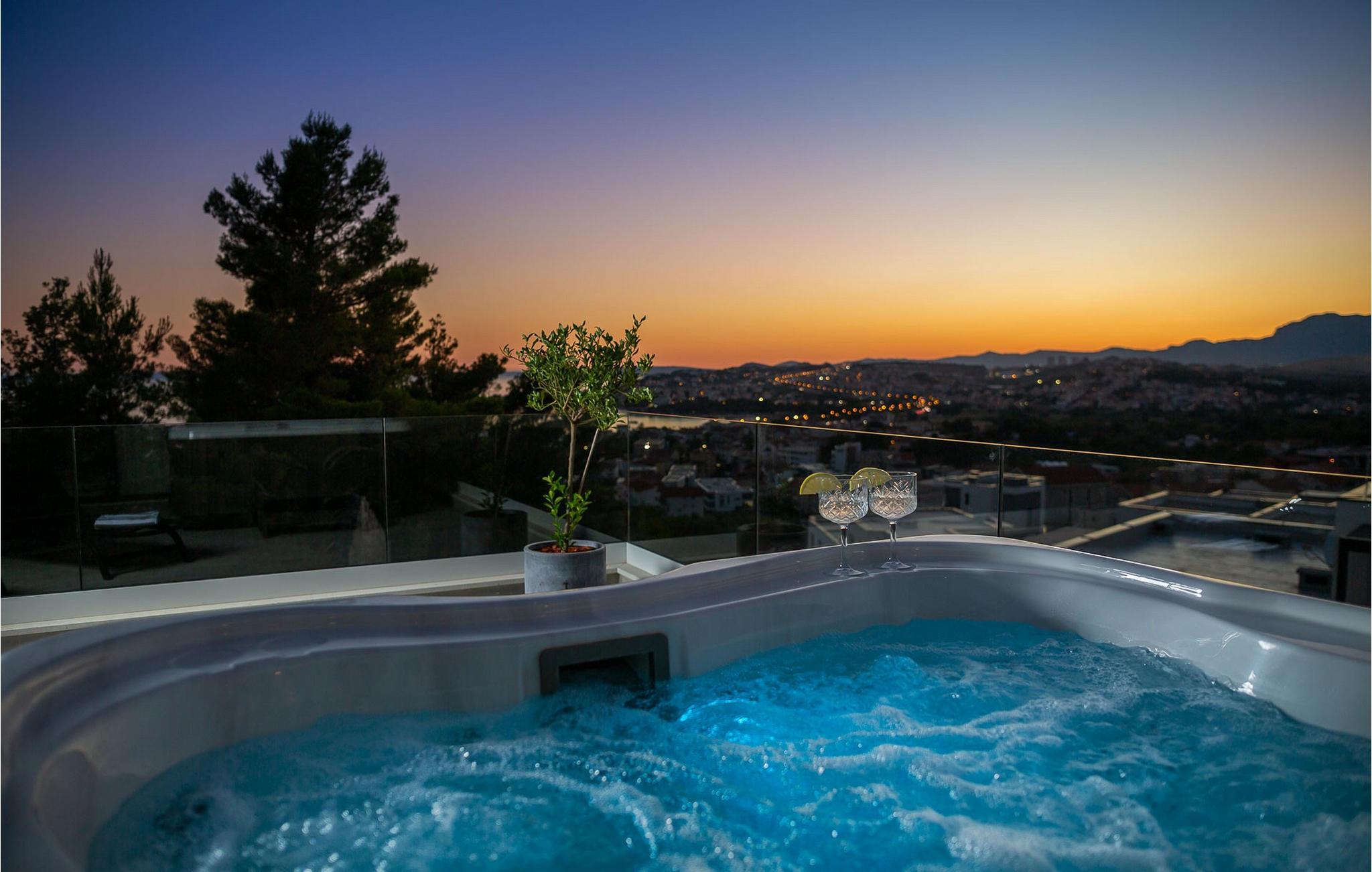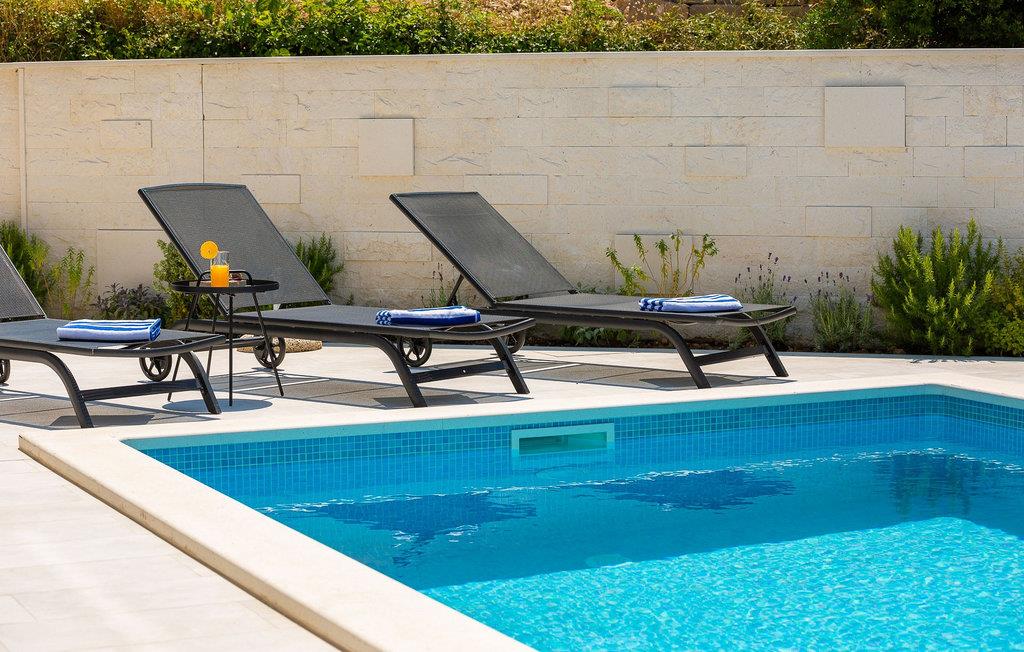 Glæd jer til dette smukke, moderne feriehus med en fantastisk udsigt over Adriaterhavet. Villa 9 tilbyder en vidunderlig kombination af barsk dalmatisk natur og moderne arkitektur, samt en fantastisk udsigt over Adriaterhavet og alle øerne i Splitbugten. Villaens ydre og indre er designet til absolut afslapning af krop og sind. Et fuldt udstyret køkken med omhyggeligt udvalgte detaljer garanterer masser af sjov, mens I tilbereder jeres yndlingsmåltider. Den komfortable stue og spisestue er designet til familier, hvor I kan samles til måltider eller blot samles omkring pejsen. Yngre familiemedlemmer kan slappe af på spillekonsollen eller streame deres yndlingsserier. I har også adgang til en udendørs terrasse, ideel til sociale sammenkomster. Der er også en udendørs grill i en omhyggeligt vedligeholdt gårdhave. Absolut nydelse venter jer i den store pool samt i saunaen og det moderne spabad. Villa 9 ligger i Podstrana, kun få kilometer fra den dalmatiske perle Split. I årtier har Split tiltrukket turister med sit rige turistudbud, sin kulturarv og uberørte natur. Udforsk arkæologiske steder som Ad Basilicas Picta, Diocletians Palads, Peristyle, Jupitertemplet, St. Dujes klokketårn eller Prokurative, Republikpladsen.