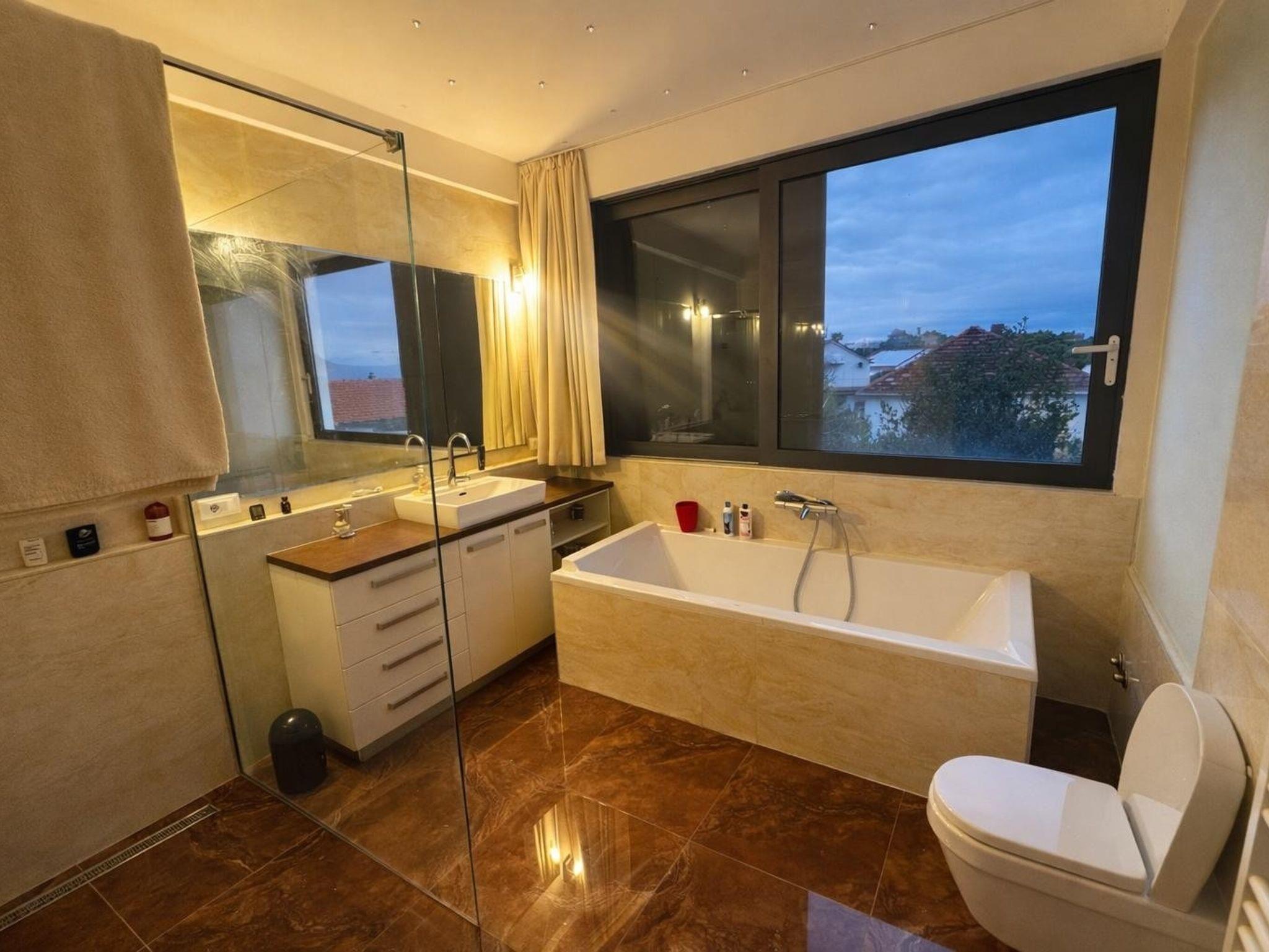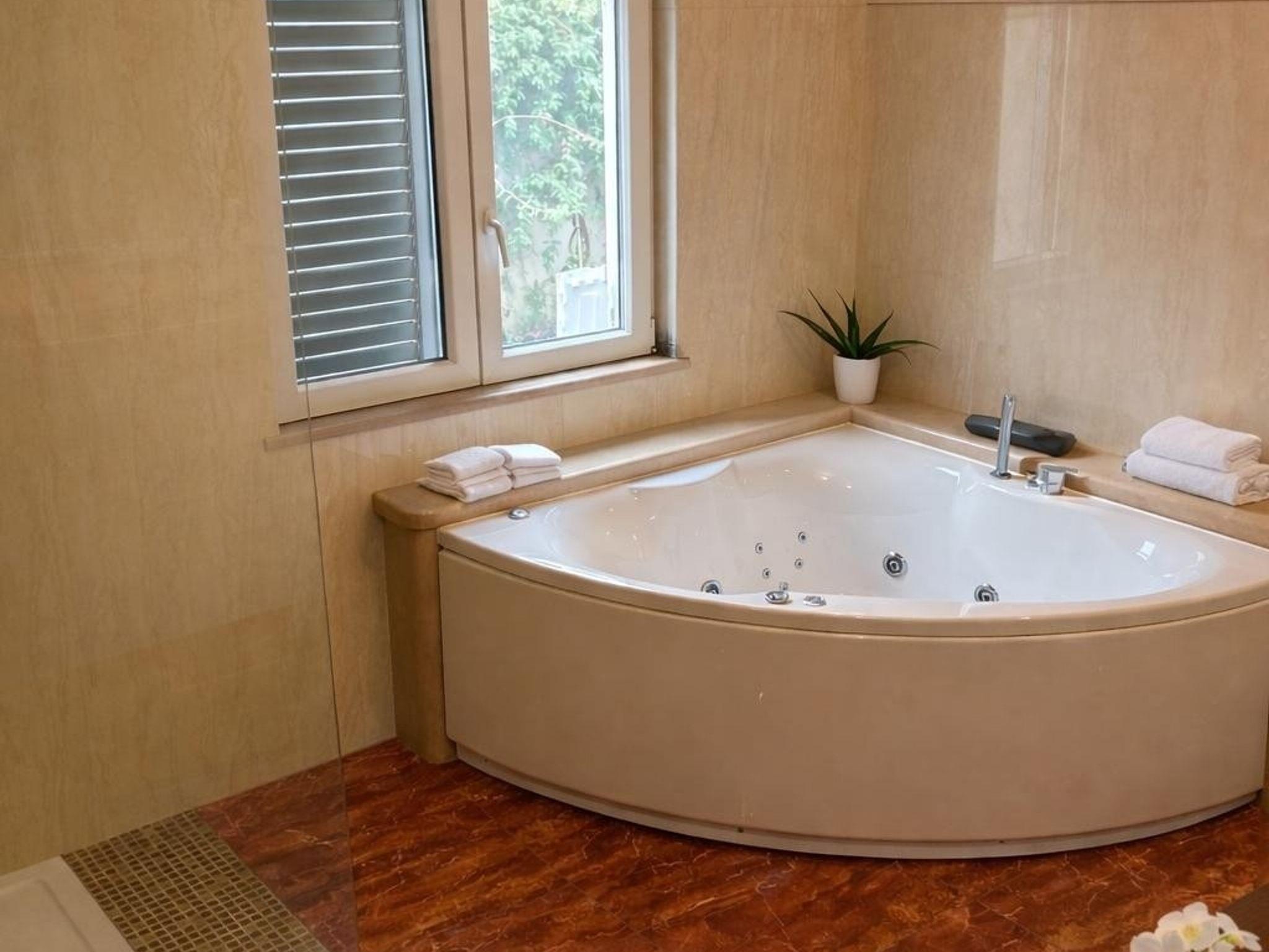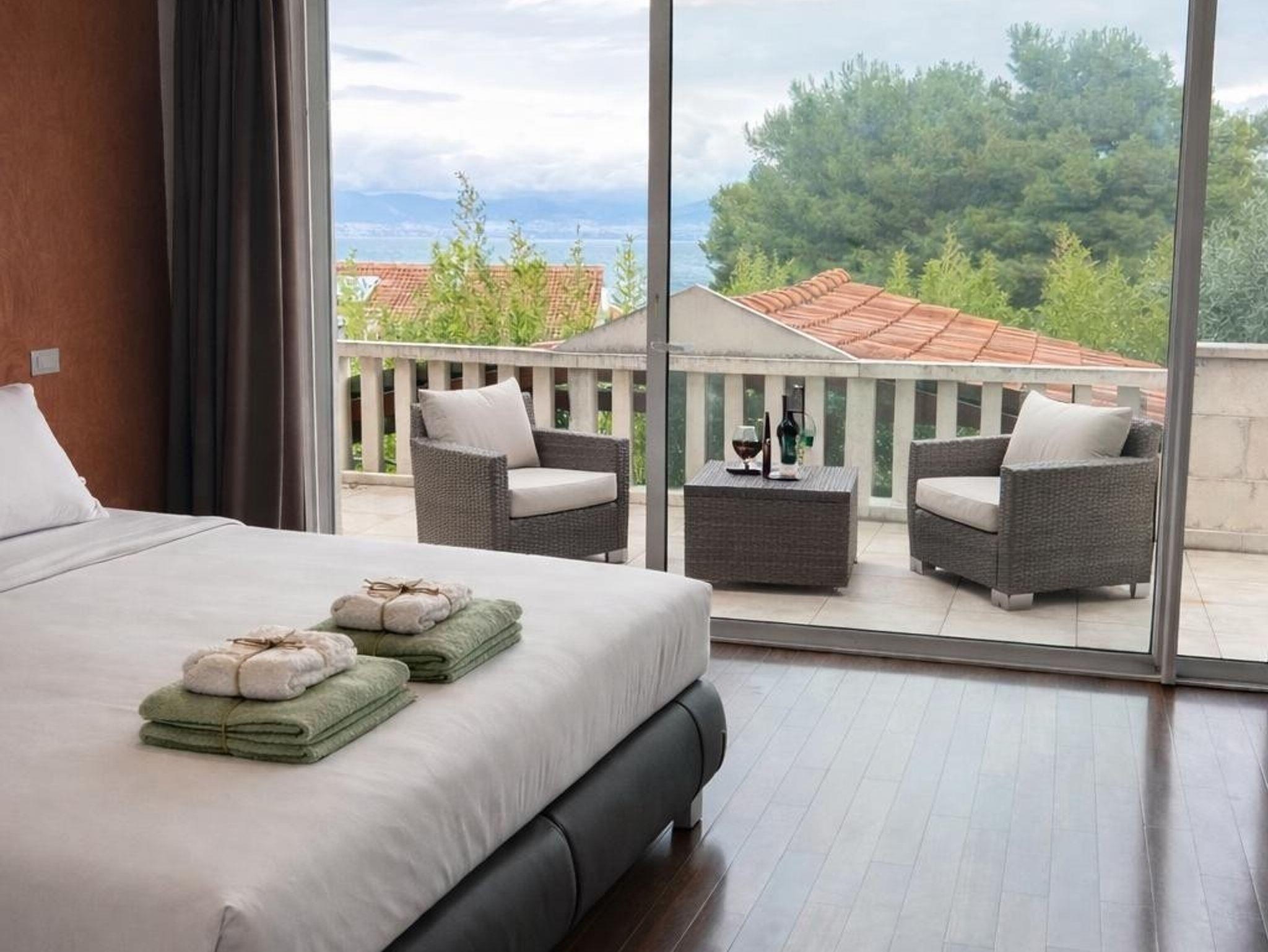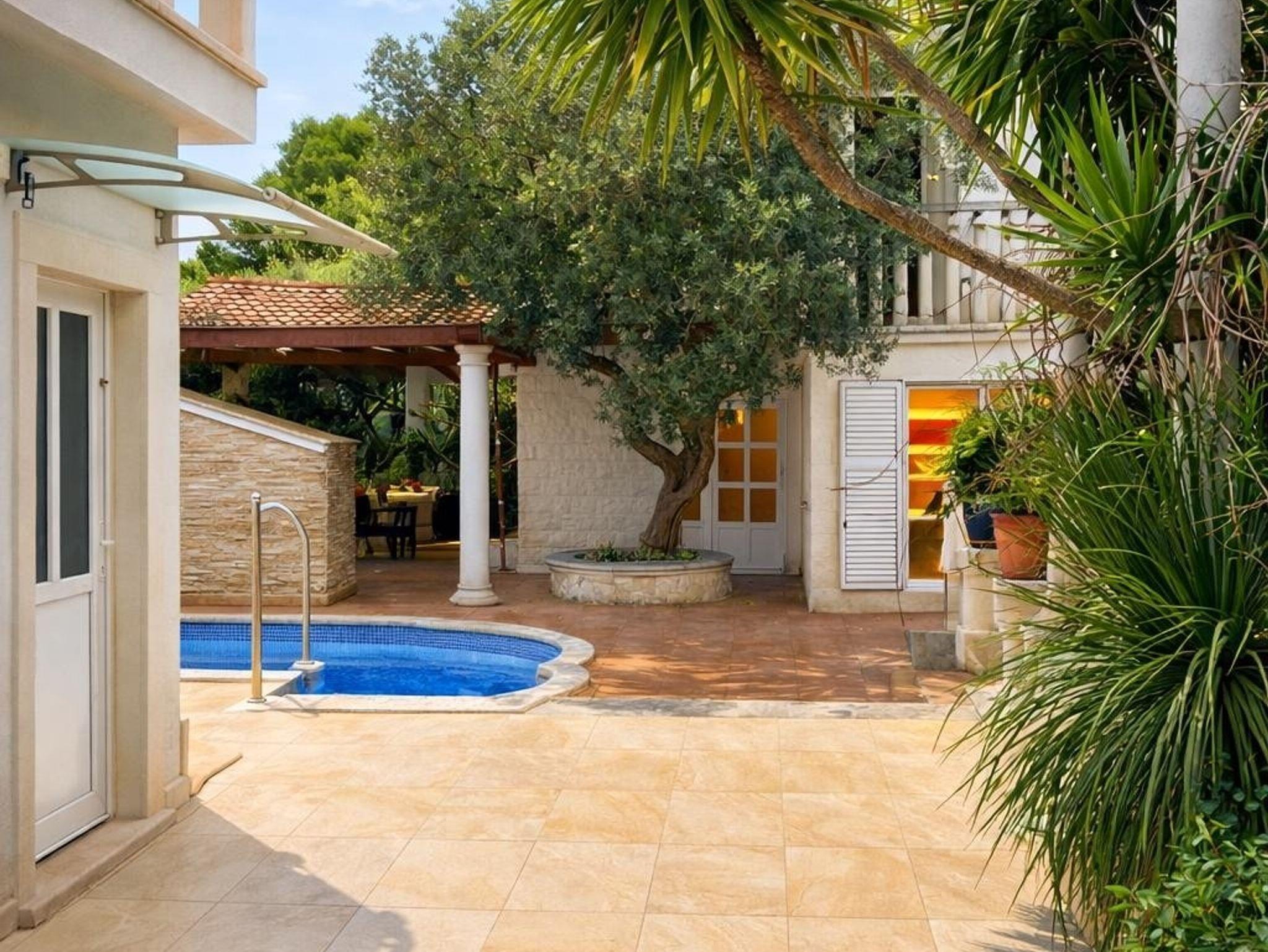 Haus bietet Platz für 10 Gäste. Die Betten sind in Schlafzimmern, die es 4 gibt, und in Wohnzimmer, innerhalb einer Gesamtfläche von 293m2, angeordnet. Die Gäste haben eine eigene Terrasse zur Verfügung, auf der sie in warmen Sommernächten genießen können. Das Haus bietet Meerblick. Für vollen Genuss und Entspannung gibt es einen privaten Grill für Gäste dieser Unterkunft. Während ihres Aufenthalts können sich Gäste im privaten Schwimmbad entspannen. IM PREIS INBEGRIFFEN: Kurtaxe, Endreinigung, Klimatisierung, Zentralheizung, Pool, Parkplatz, Internet, Bügeleisen, Bügelbrett, Föhn. Die Verfügbarkeit zusätzlicher Dienstleistungen in Ihrem reservierten Termin und die Preise derselben (falls nicht aufgeführt) müssen im Voraus überprüft werden. Zusätzliche Dienstleistungen die in der Zahlungsaufforderung nicht aufgeführt sind werden direkt beim Vermieter bezahlt, angenommen der Gast nutzt auch diese. Ermäßigung auf den Grundpreis: Gratistag 28=25 (bei einem Aufenthalt von 28 oder mehr Tagen erhalten Sie 3 kostenlose Tage für den Aufenthalt bis 31.12.26).