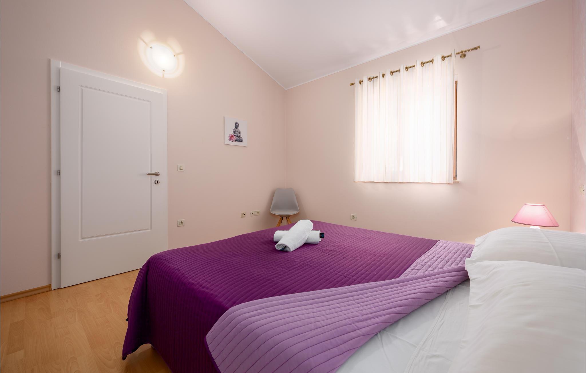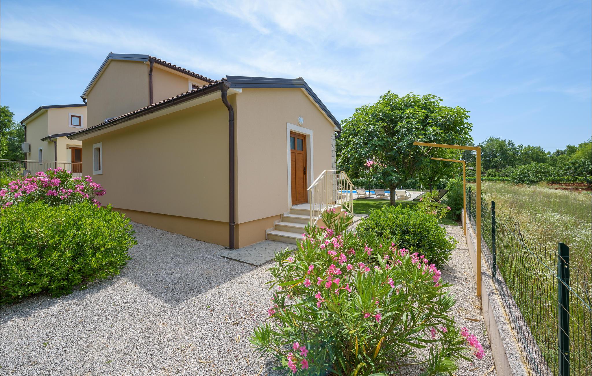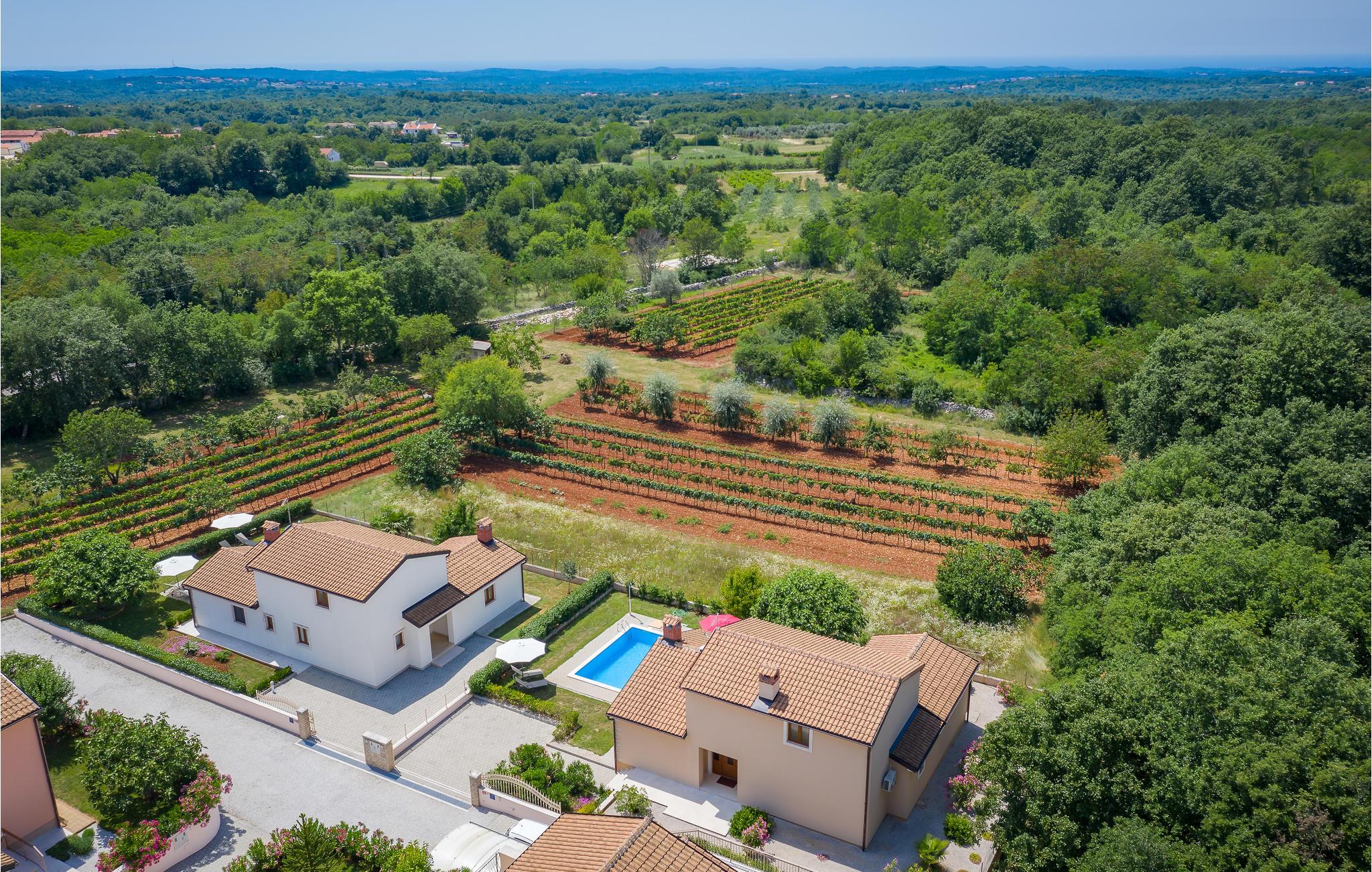 Dette dejlige feriehus med swimmingpool ligger i den lille by Kmacici, i nærheden af Tinjan, en by i baglandet. Huset er indrettet moderne og hyggeligt. I stueplan er der køkken, spisestue og stue. Over en gang kommer I til badeværelse og et soveværelse. Til første sal er der en indendørs trappe, her er der endnu to soveværelser og et badeværelse. Tilbring de dejlige feriedage på den lukkede grund med pool eller på den overdækkede terrasse hvor grillen står. På femten minutter i bil, kommer I til Porec med skønne strande ud til det lune Adriaterhav.