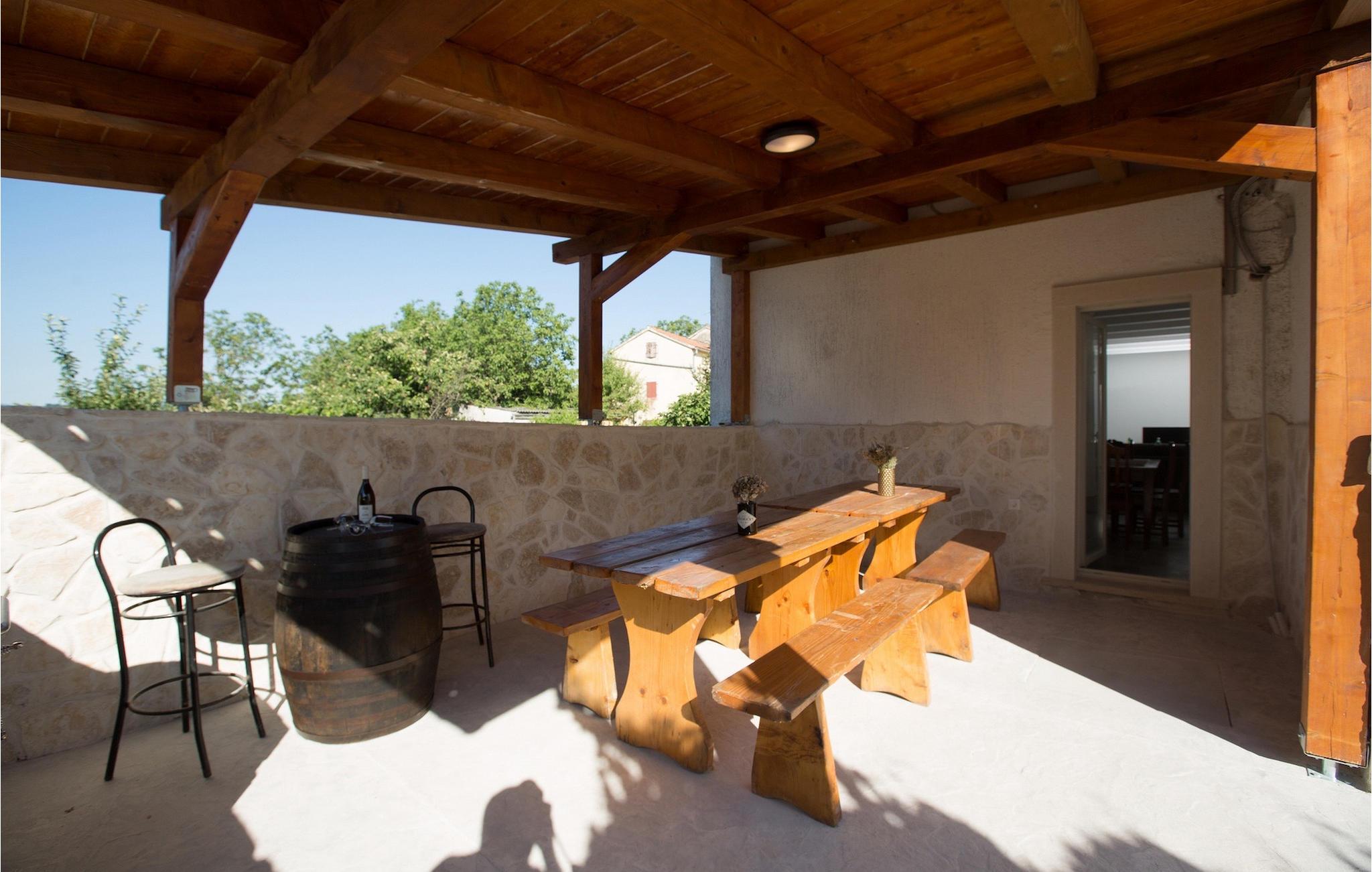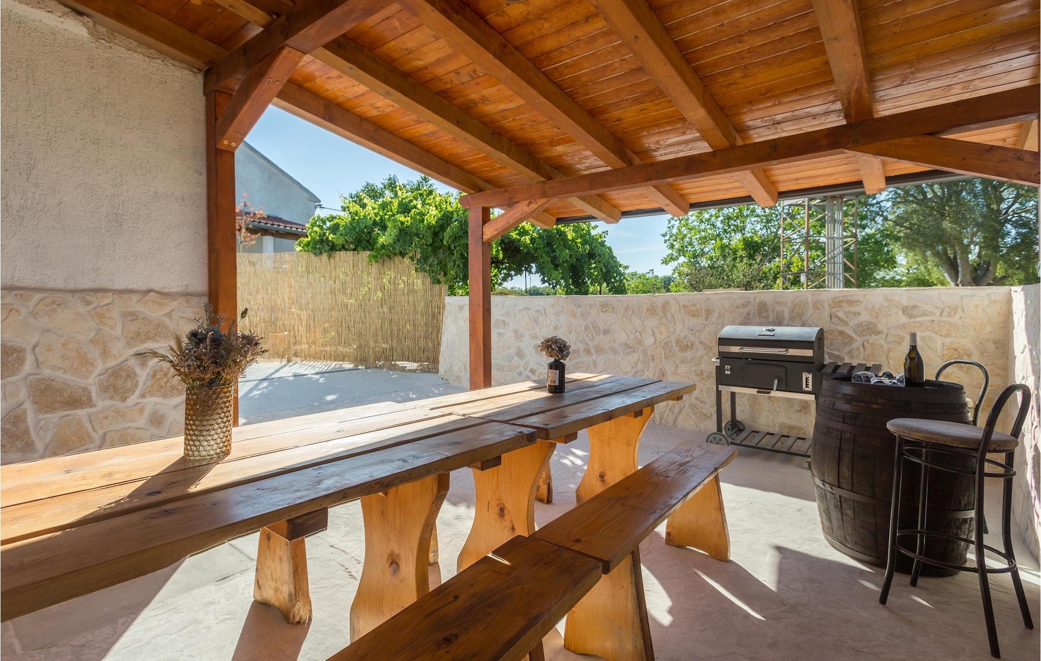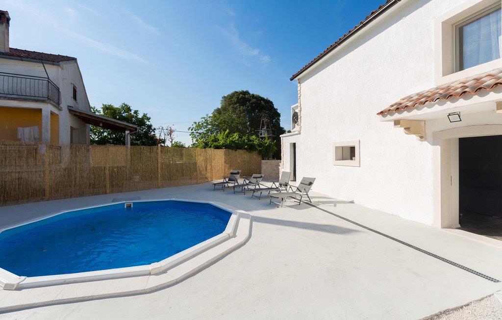 Villa Rosa Kringa er et feriehus perfekt for alle, der drømmer om at udforske Istrien. På grund af sin centrale beliggenhed er villaen det ideelle udgangspunkt for udflugter i alle retninger. Den runde private pool er husets blikfang, som vil tilbyde dig den nødvendige forfriskning på varme sommerdage. Slap af på en af liggestolene under den kroatiske sol og nyd roen. Den bedste måde at tilbringe timer sammen med familien på er på den overdækkede terrasse med en kulgrill, hvor du kan tilberede regionale delikatesser. Det store træbord er perfekt til en familiemorgenmad om morgenen, inden du begiver dig ud for at udforske. Det fuldt airconditionerede opholdsområde består af opholdsstuen med en komfortabel sofa og tv til filmaftener, spisepladsen og et fuldt udstyret køkken. Et soveværelse med dobbeltseng og et badeværelse med bruser fuldender stueetagen. Trappen fører dig til det øverste niveau, hvor yderligere 2 soveværelser lover afslappende nætter. Begge soveværelser har eget badeværelse med bruser. Et af soveværelserne har en dobbeltseng, det andet har en dobbeltseng og to ekstra enkeltsenge. Villaen kan derfor rumme op til 8 gæster. Forkæl dig selv og dine kære med en drømmeferie, book Villa Rosa Kringa og oplev det magiske Istrien. Villa Rosa Kringa ligger i den charmerende by Kringa, som hører til Porec kommune, men ligger meget centralt i Istrien. Placeringen af villaen er ideel, hvis du ønsker at tilbringe din ferie med at udforske regionen. Byerne langs Istriens kyst ligger alle inden for en times kørsel. Besøg Umag, Porec, Pula og Rabac, slentre langs strandpromenadene, nyd solen og havet på de smukkeste strande og prøv frisk grillet fisk i en af de berømte restauranter. Pazin, med sin bjergskråning slot og zipline over slugten, eller Motovun med sine vinmarker og filmfestival ønsker også at blive opdaget af dig. Gourmeterne blandt jer vil sætte pris på det gastronomiske tilbud med trøfler, skinke og god vin, og de små glemmer ikke let Dinopark Funtana eller Istralandia vandland. Oplev det magiske Istrien med dine kære!