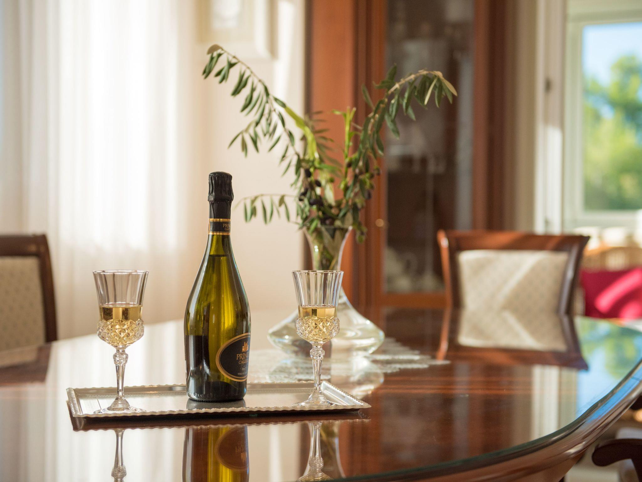 The interior of Villa Mare offers all the comforts of home. The two flats are elegantly furnished and include living rooms with cable/satellite TV, air conditioning and a fireplace for cooler evenings, as well as a second living room equipped with a stereo and DVD player. The bedrooms, four in total, offer a mix of double and single beds, all with wardrobes, linen and air conditioning. The kitchen is fully equipped with a cooker, oven, microwave, toaster, kettle, coffee maker, dishwasher, refrigerator and freezer. Three well-equipped bathrooms complete the interior, providing convenience and practicality for guests.