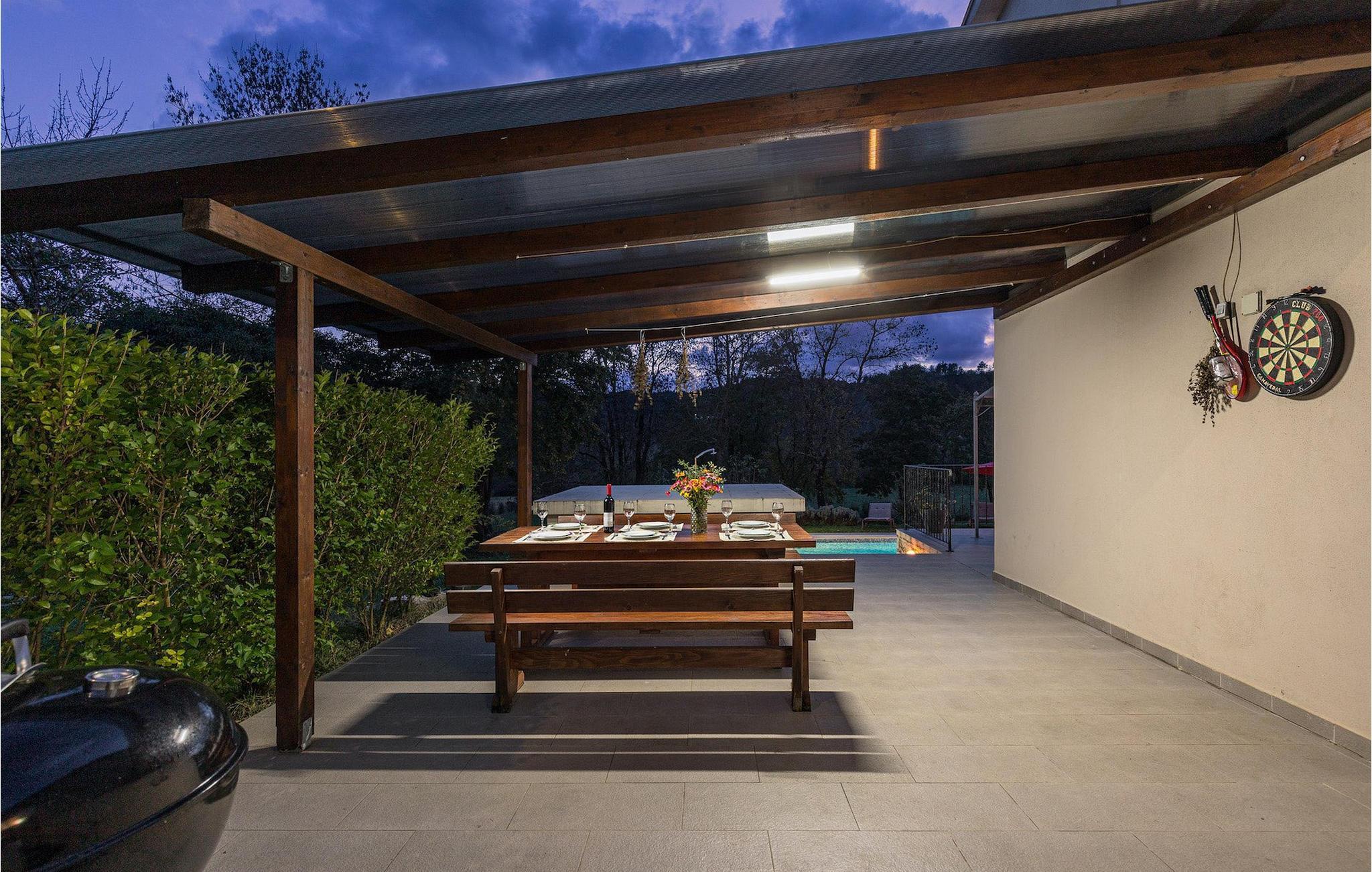 Es ist aber der Außenbereich, der die Villa Supljini definiert und Ihre Urlaubsstunden werden Sie meistens im zauberhaften Garten in und um den privaten Pool verbringen. Eine Auswahl an gemütlichen Terrassen bietet mehrfache Möglichkeiten für Entspannung und Mahlzeiten im Freien mit atemberaubenden Ausblicken von jeder Ecke. Ihren Morgenkaffee und Abendaperitife werden Sie am besten auf der oberen Terrase genießen, wo die Aussicht auf die idyllische Landschaft besonders magisch wirkt. Und wenn sie ein bisschen mehr Energie haben, stehen Ihnen Darts und Tischtennis zur Verfügung.