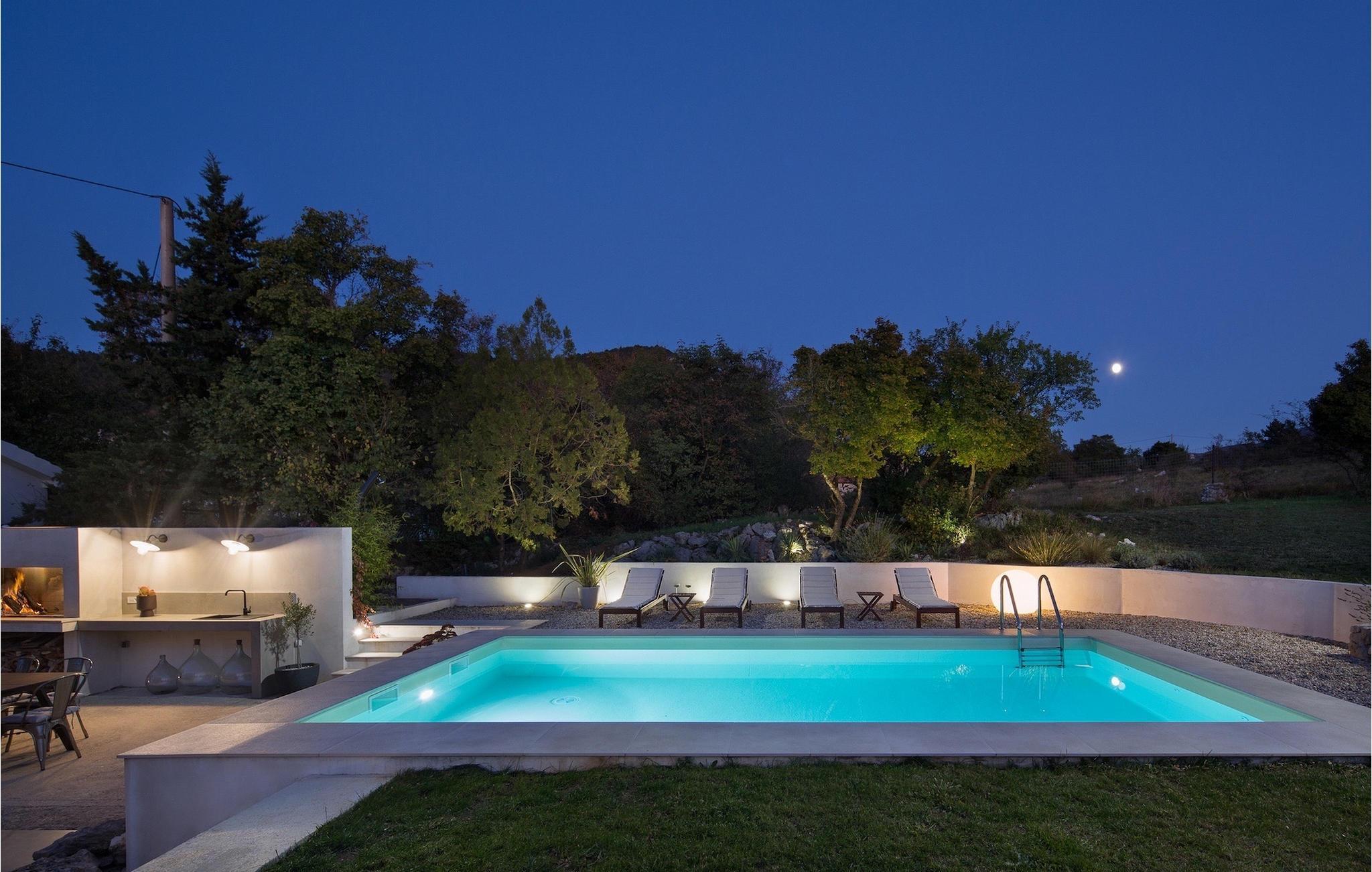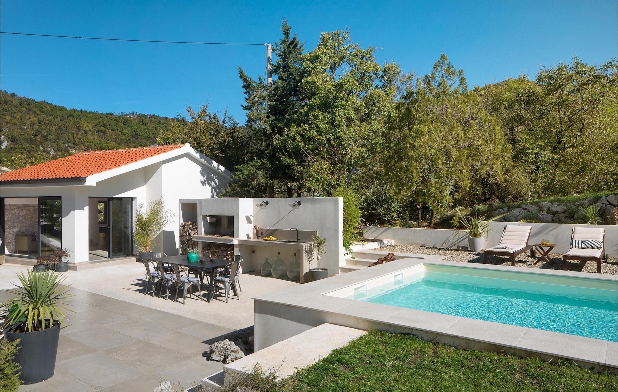 Leder du efter et roligt tilflugtssted? Så er Villa Ucka det helt rigtige sted for dig! Midt i et smukt landskab finder I denne familievilla, der kan rumme op til 6 personer. Villaen byder på afslapning og ro, samtidig med at den kun er en kort køretur fra Opatijas travle turistcenter. Ejendommen har en privat pool. Ved siden af poolen er der liggestole, samt en terrasse med spisebord og en kulgrill, hvor du kan tilberede et lækkert måltid. Middagen med pooludsigt vil helt sikkert være et dejligt minde. Vores yngste gæster vil være mest tilfredse med legepladsen. Interiøret er stilfuldt indrettet, med stor opmærksomhed på detaljerne. I villaens stilfulde interiør kan du simpelthen føle dig hjemme! På første sal er der to hyggelige soveværelser og et badeværelse. Anden sal består af et fuldt udstyret åbent køkken, som er forbundet med en hyggelig spise- og opholdsstue med galleri. Fra stuen er der direkte adgang til terrassen, som er et perfekt sted til din morgenkaffe. Tilbring din drømmeferie i Villa Ucka! Villa Ucka er beliggende i den lille autentiske landsby kaldet Brest pod Uckom i en meget rolig beliggenhed, nær den beskyttede naturpark ved bjerget Ucka. Vi anbefaler dig at besøge "Adriaterhavets Perle", som ligger kun en kort køretur fra villaen. Opatija ligger lige under bjerget Ucka, som er ideelt til en vandretur. Du kan finde mange smukke strande i dette område og slappe af og nyde solen og havet. Regionen er berømt for sit køkken, og der er mange gode restauranter i nærheden. Hvis du er en adrenalinelsker, så besøg det største vandland i Europa - Istralandia. Middelalderbyer som Motovun, Groznjan og Buzet er et besøg værd. For mere information se vores MyIstria-guide, hvor du finder adskillige tips til ture i området.