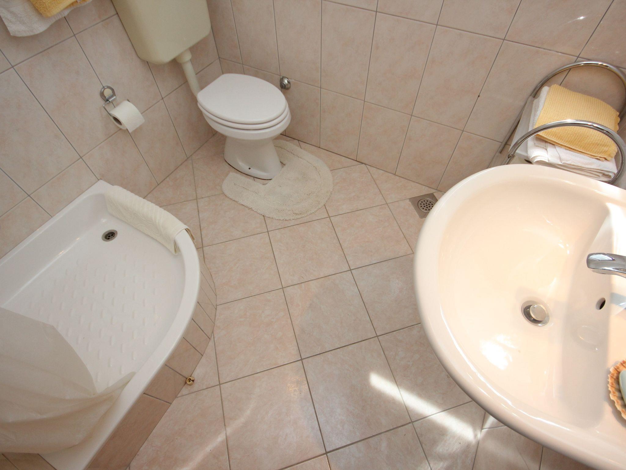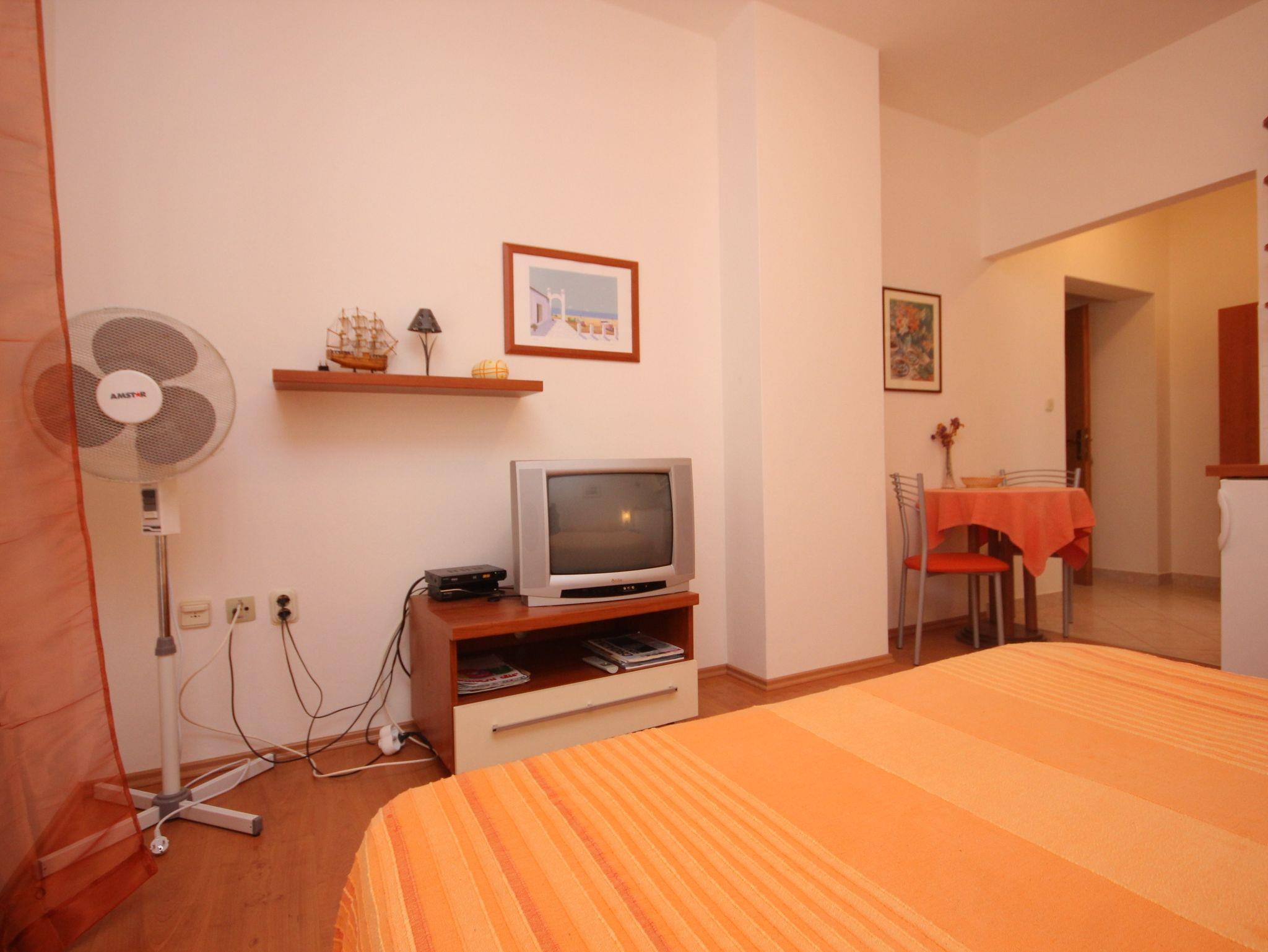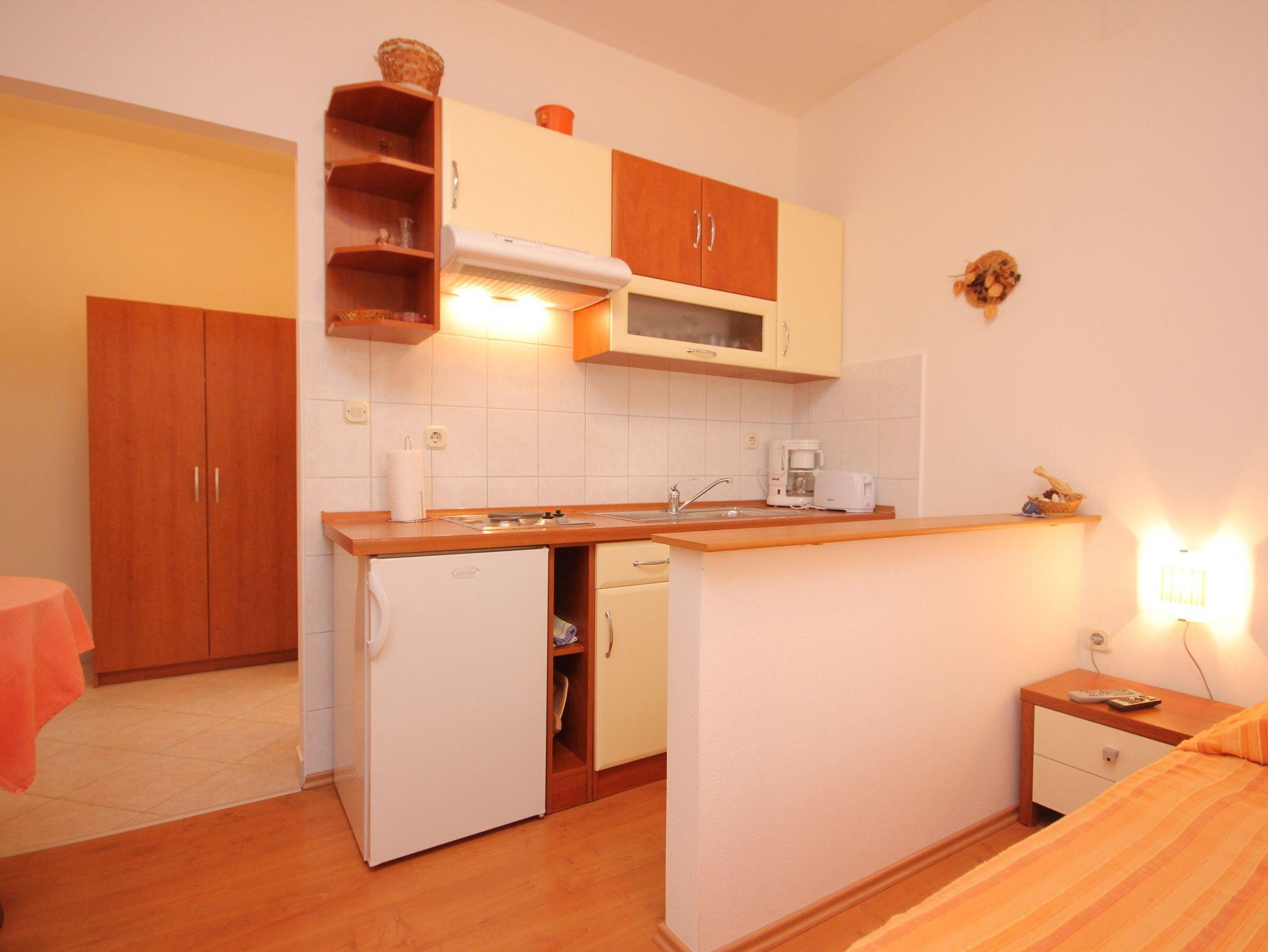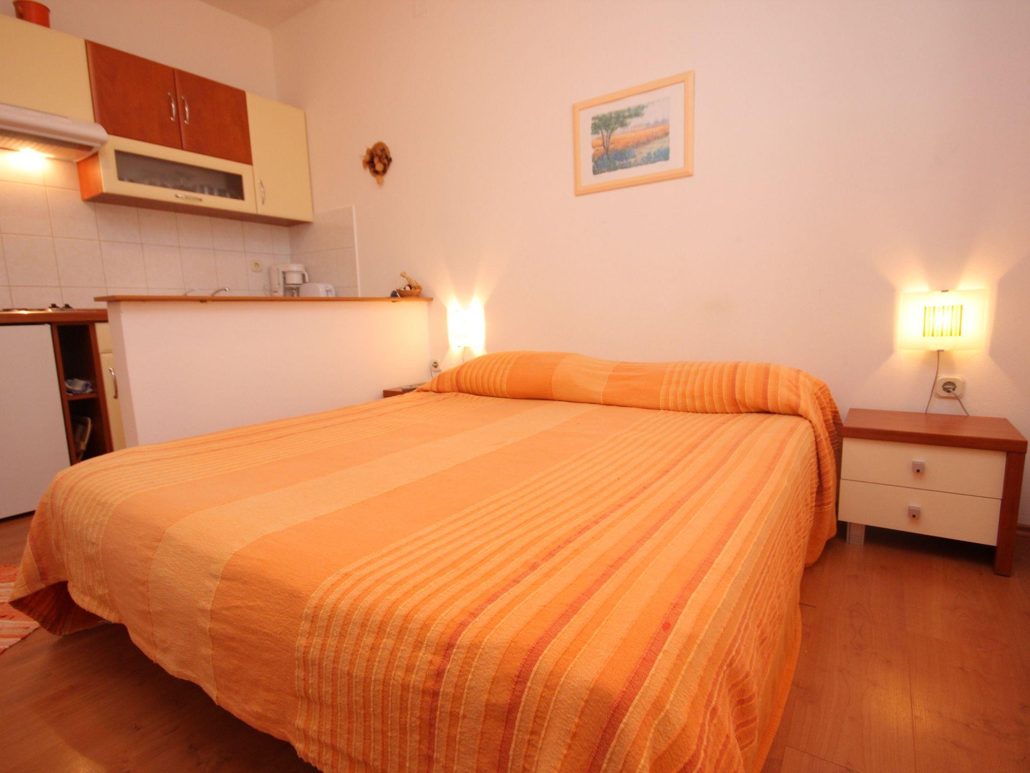 Studio bietet Platz für 2 Gäste. Die Betten sind in Schlafzimmern, die es 1 gibt, innerhalb einer Gesamtfläche von 21m2, angeordnet. Die Gäste haben eine eigene Terrasse zur Verfügung, auf der sie in warmen Sommernächten genießen können. Das Studio-Apartment bietet Meerblick. Es ist erlaubt, Speisen auf dem Gemeinschafts-Grill vorzubereiten. IM PREIS INBEGRIFFEN: Kurtaxe, Endreinigung, Klimatisierung, Parkplatz, Internet, Kinderbett. VERBINDLICHE ZUSÄTZLICHE KOSTEN: Aufzahlung für Kurzaufenthalte (prozentualer Zuschlag pro Nächtigungsanzahl: 30% - 1, 20% - 2, 10% - 3). Die Verfügbarkeit zusätzlicher Dienstleistungen in Ihrem reservierten Termin und die Preise derselben (falls nicht aufgeführt) müssen im Voraus überprüft werden. Zusätzliche Dienstleistungen die in der Zahlungsaufforderung nicht aufgeführt sind werden direkt beim Vermieter bezahlt, angenommen der Gast nutzt auch diese.
