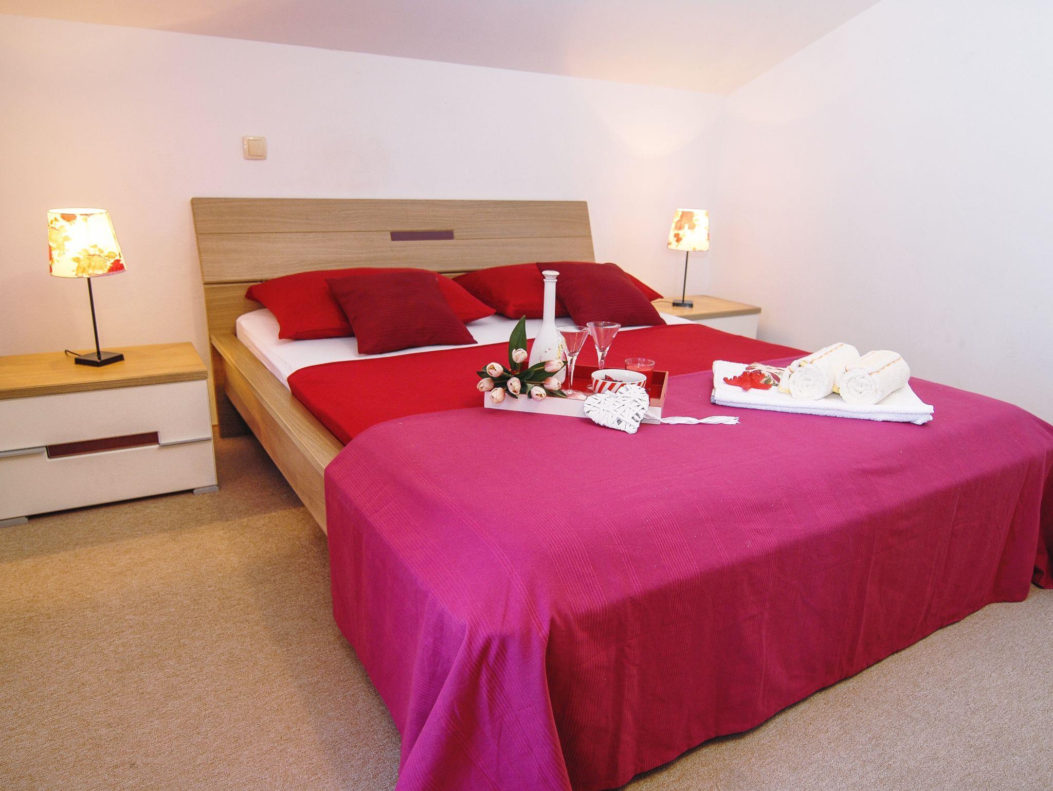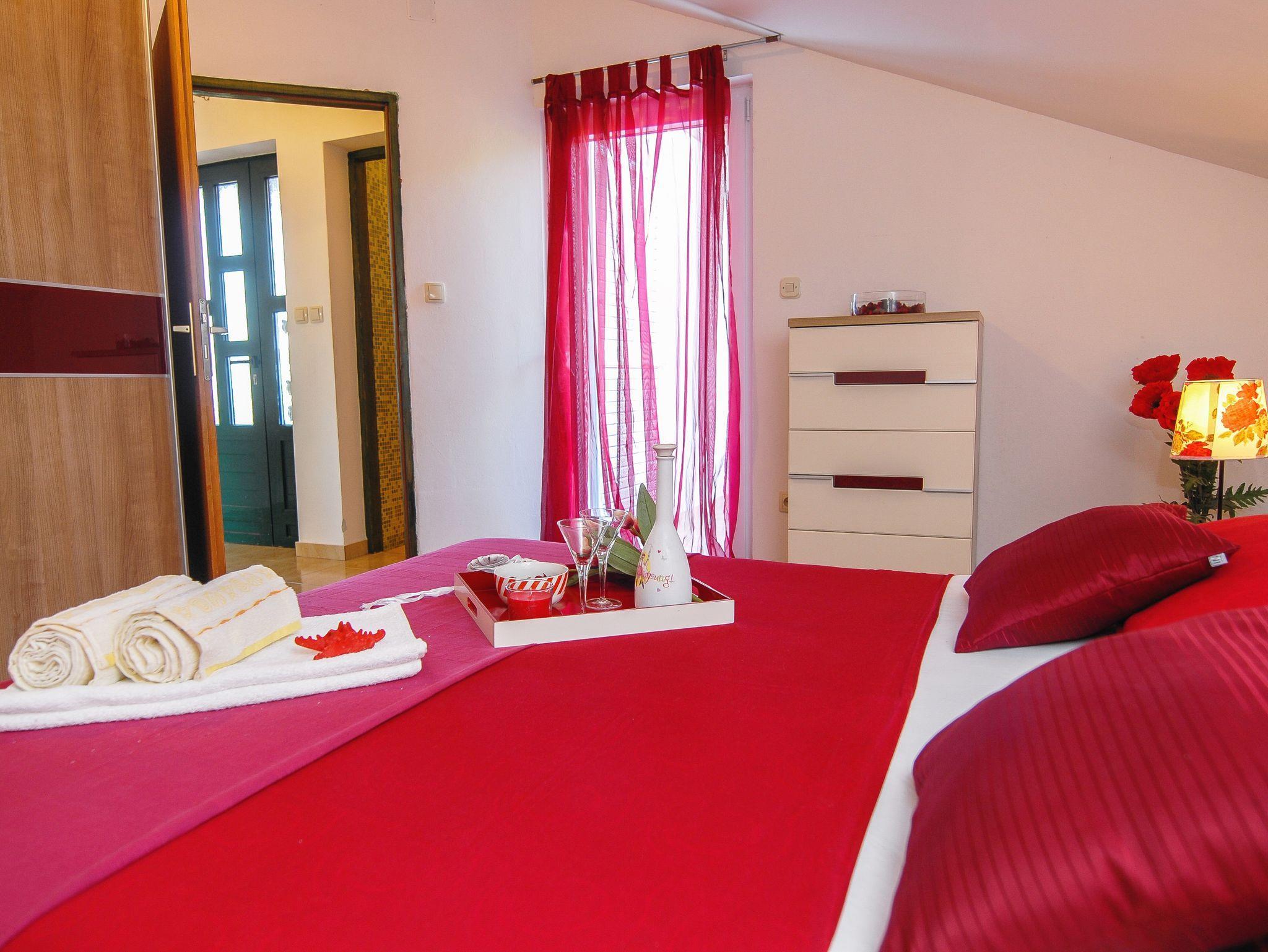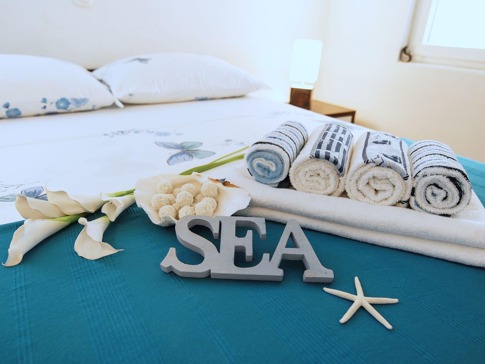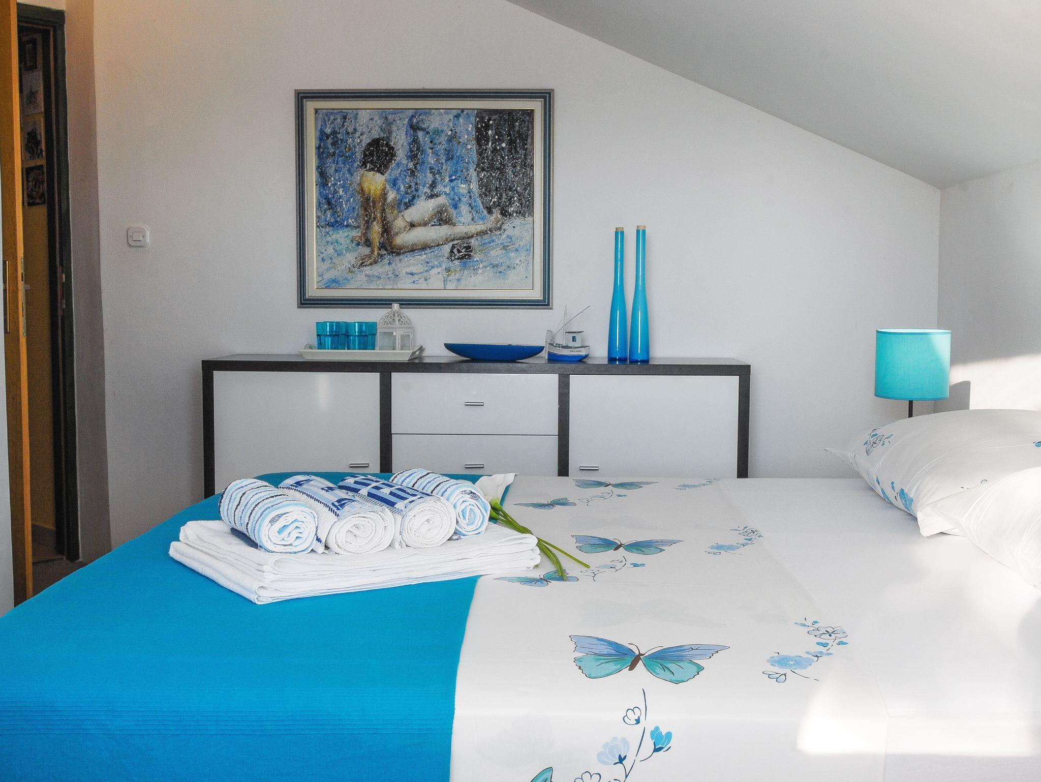 Ferienwohnung bietet Platz für 4 Gäste. Die Betten sind in Schlafzimmern, die es 2 gibt, innerhalb einer Gesamtfläche von 66m2, angeordnet. Die Gäste haben eine eigene Terrasse zur Verfügung, auf der sie in warmen Sommernächten genießen können. Das Apartment bietet Meerblick. Es ist erlaubt, Speisen auf dem Gemeinschafts-Grill vorzubereiten. IM PREIS INBEGRIFFEN: Kurtaxe, Endreinigung, Klimatisierung, Parkplatz, Internet, Kinderbett, Bügeleisen, Bügelbrett, Föhn. VERBINDLICHE ZUSÄTZLICHE KOSTEN: Aufzahlung für Kurzaufenthalte (prozentualer Zuschlag pro Nächtigungsanzahl: 30% - 1, 20% - 2, 10% - 3). Die Verfügbarkeit zusätzlicher Dienstleistungen in Ihrem reservierten Termin und die Preise derselben (falls nicht aufgeführt) müssen im Voraus überprüft werden. Zusätzliche Dienstleistungen die in der Zahlungsaufforderung nicht aufgeführt sind werden direkt beim Vermieter bezahlt, angenommen der Gast nutzt auch diese.