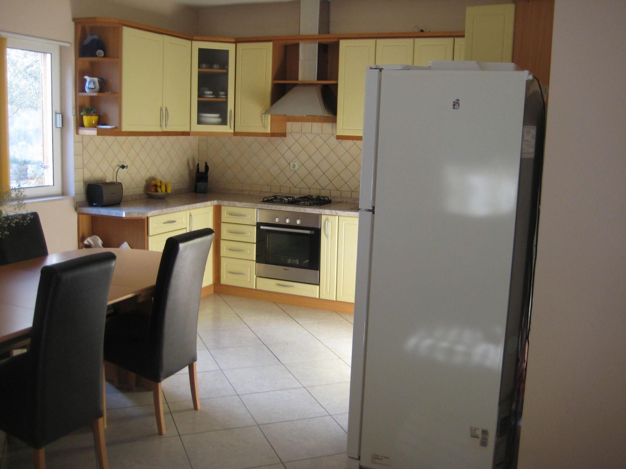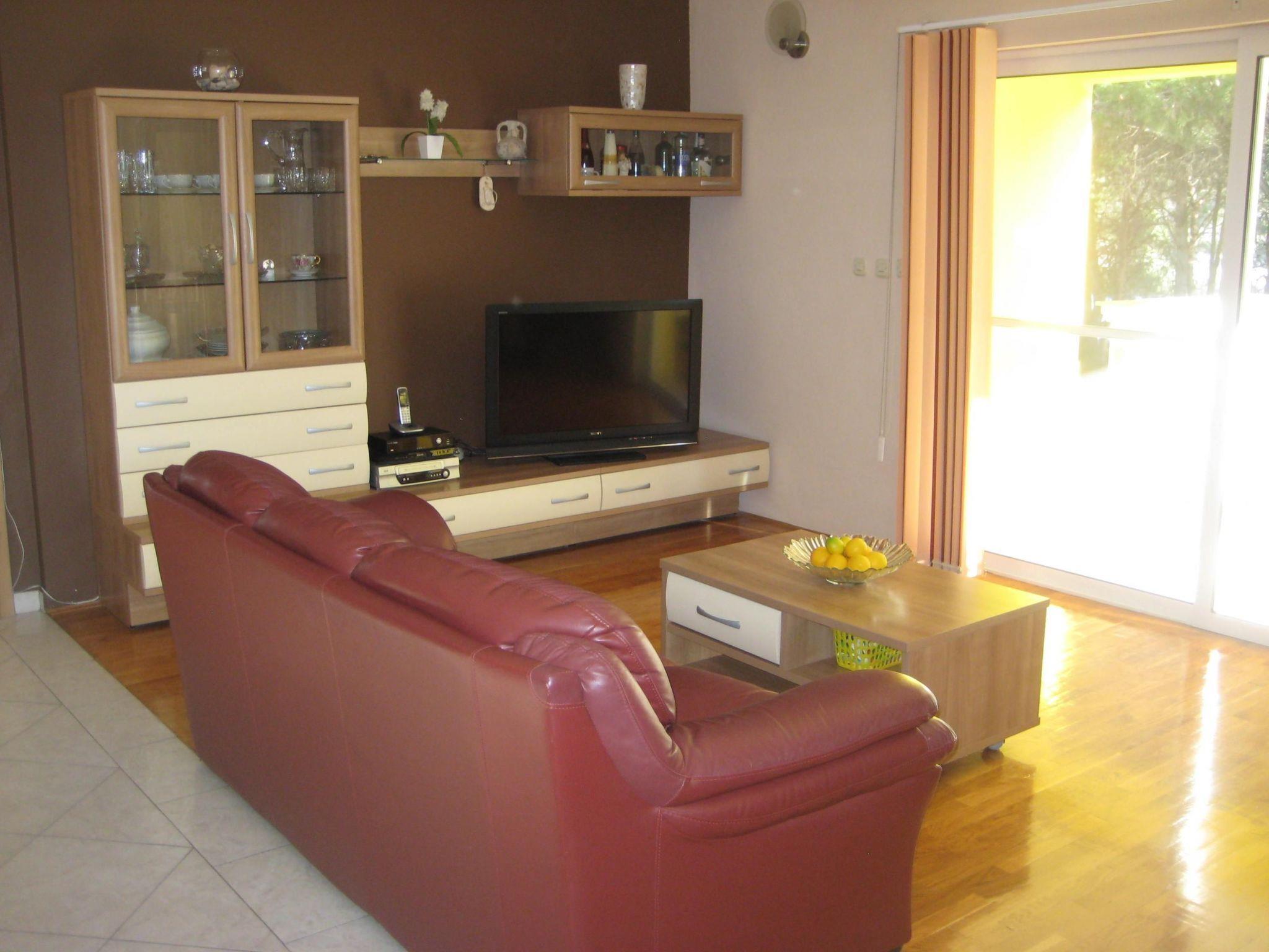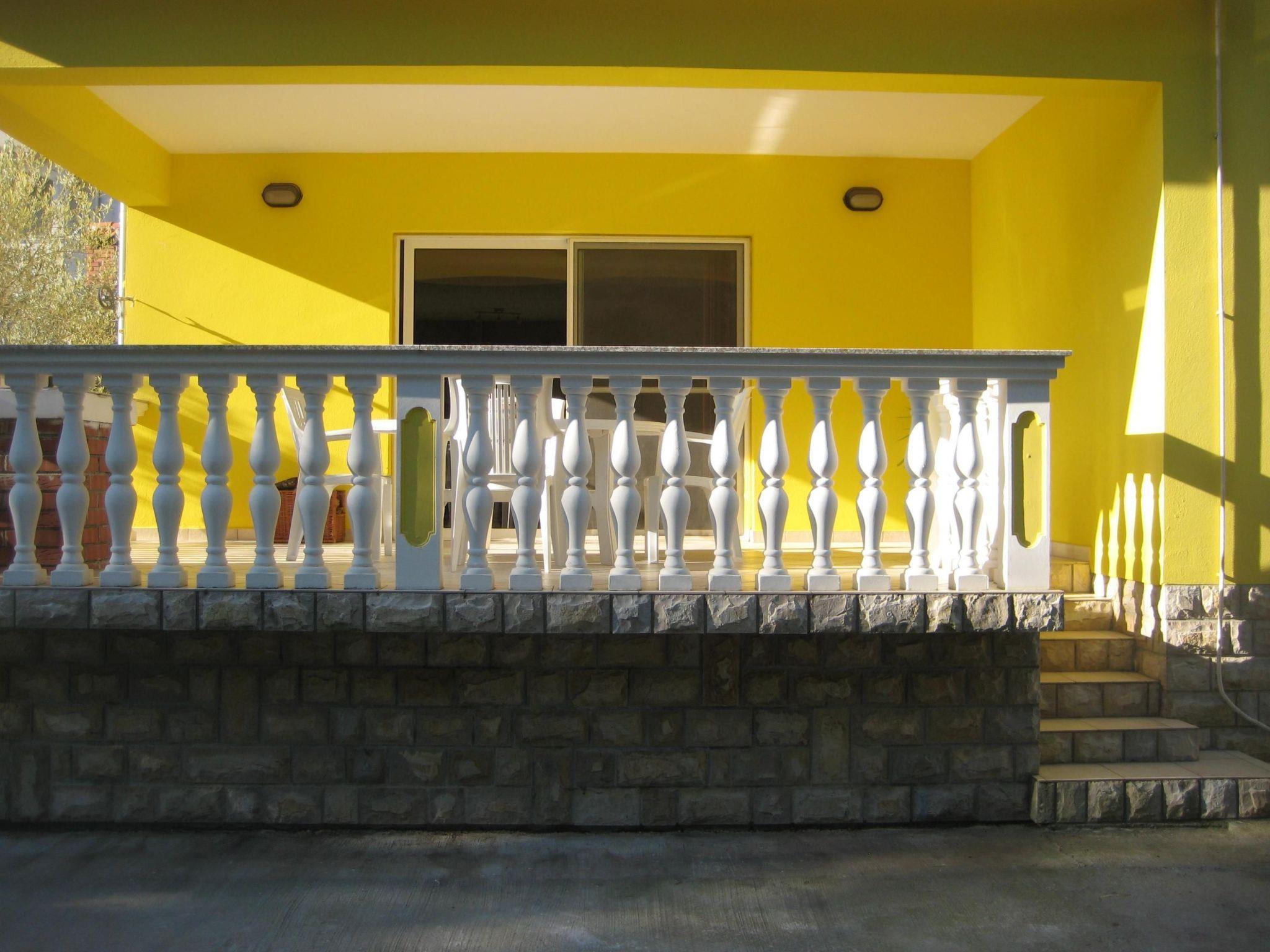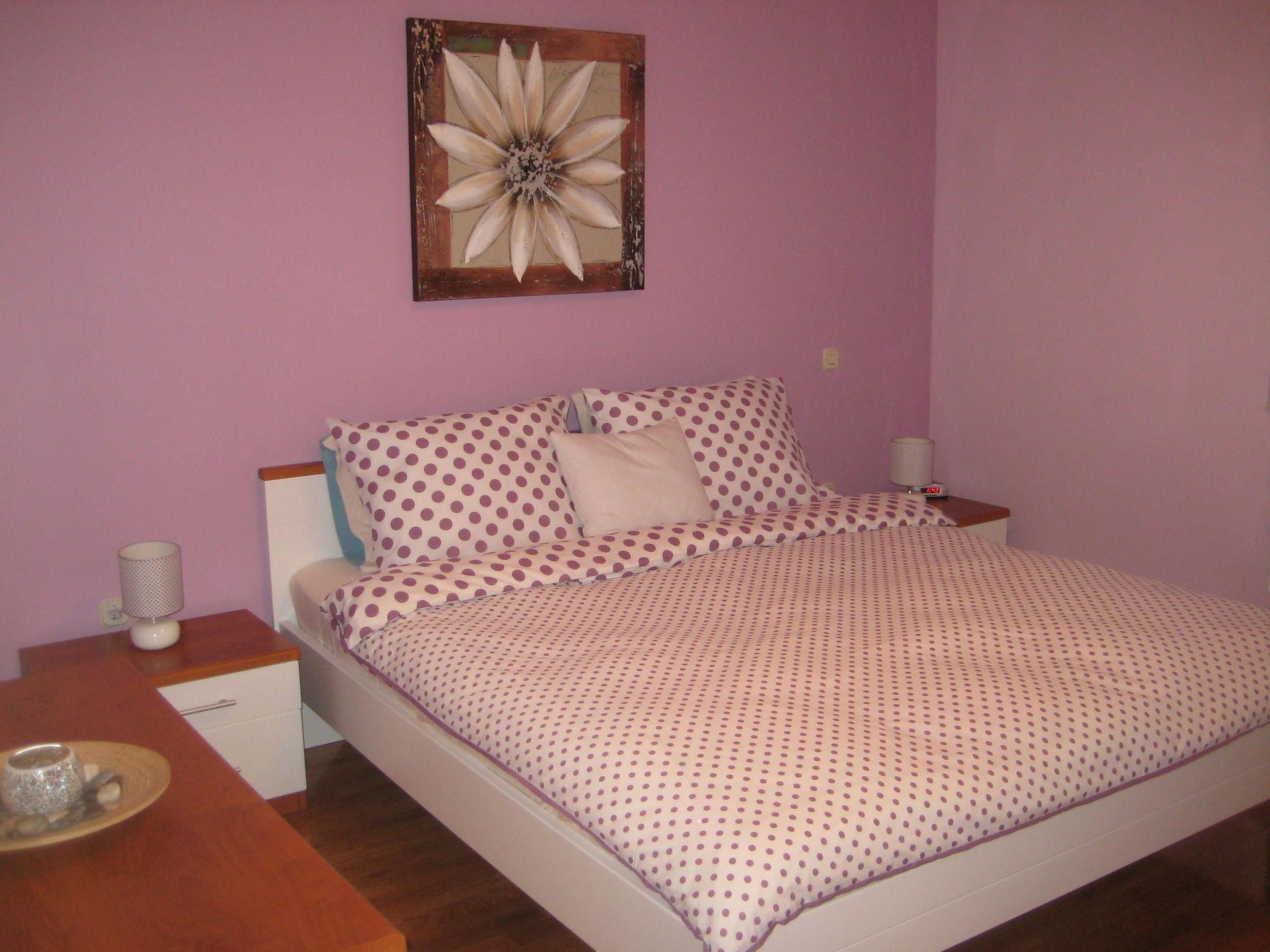 The holiday apartment is on the first floor of a residential house and can accommodate three people. It has a bedroom with a queensize double bed, bedside tables and a wardrobe. The living and dining room has a sofa, two armchairs, a TV with cable channels, a DVD player, a radio, air conditioning and Internet access. It also has a big dining table with six chairs. The open kitchen is fully-equipped with a stove, oven, fridge with freezer compartment, microwave and toaster. The living room looks out towards the terrace and the sea. The bathroom provides a shower bath, hairdryer and washing machine.