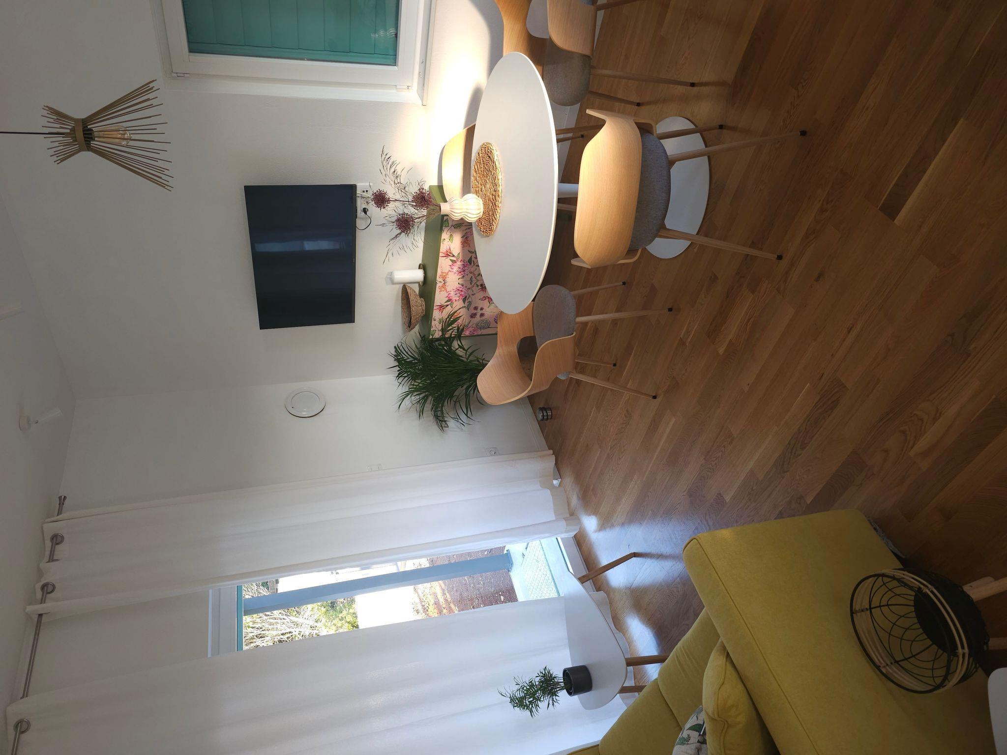 The outdoor area of this property is just as inviting, with a private garden exclusively for guests' use, adding to the feeling of seclusion and privacy. The house boasts both a terrace and a balcony, providing ample space for relaxation or dining al fresco while savoring the serene surroundings. Being pet-friendly, the property welcomes guests with small dogs, ensuring no member of the family is left behind. Moreover, its proximity to both a beach and a dedicated dog beach, each only 30 meters away, makes it an excellent choice for beach enthusiasts and pet owners alike.
