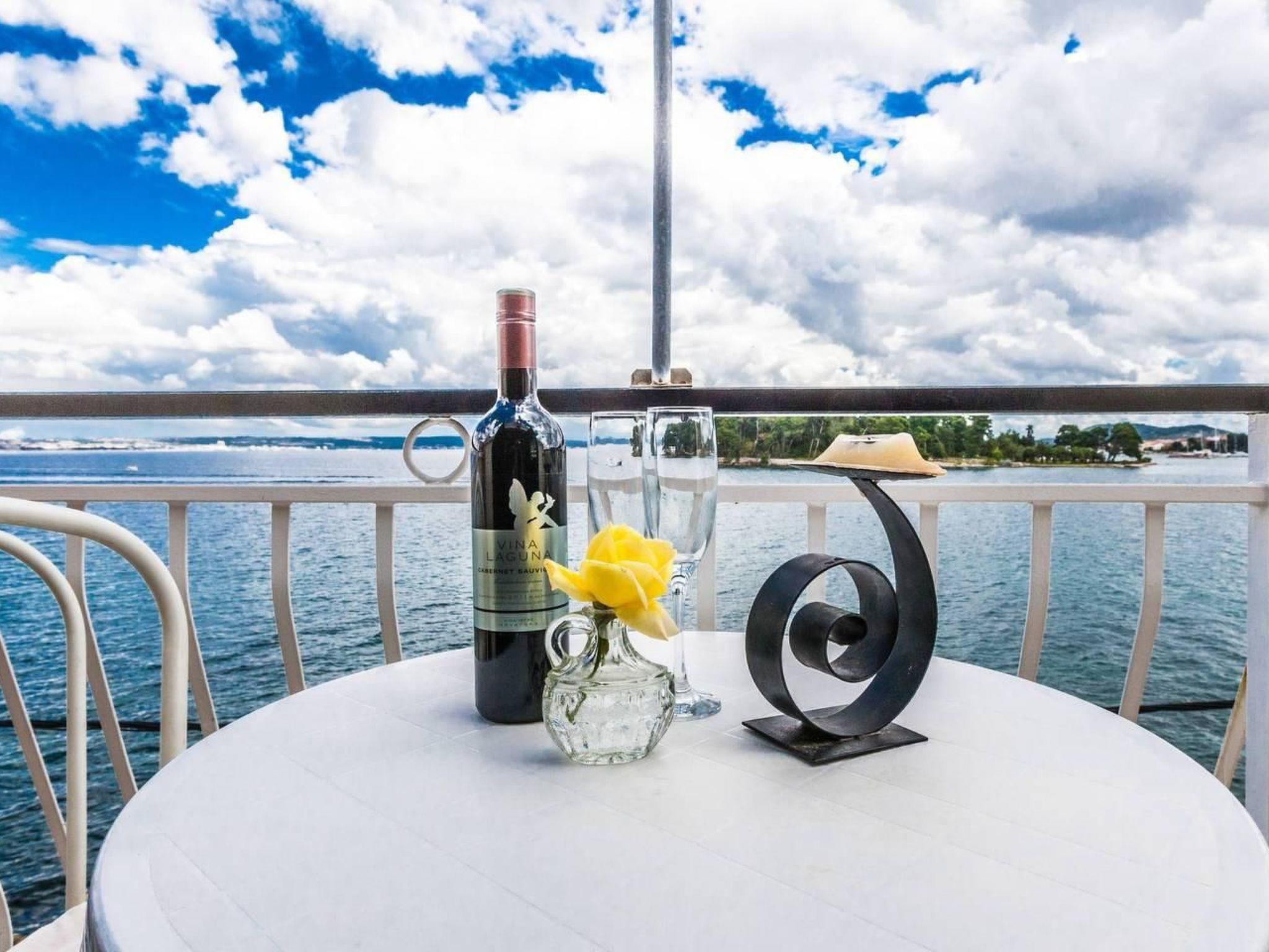 The double bedroom has direct access to the private sunny balcony, which is furnished with a table and chairs. The balcony literally hovers over the sea and you can experience spectacular sunsets here. The shared outdoor terrace is right next to the sea and you can use the grill and dining area. If you arrive by car, then there are secure parking spaces in front of the house. The owner occupies the lower floors and is happy to assist with any queries.