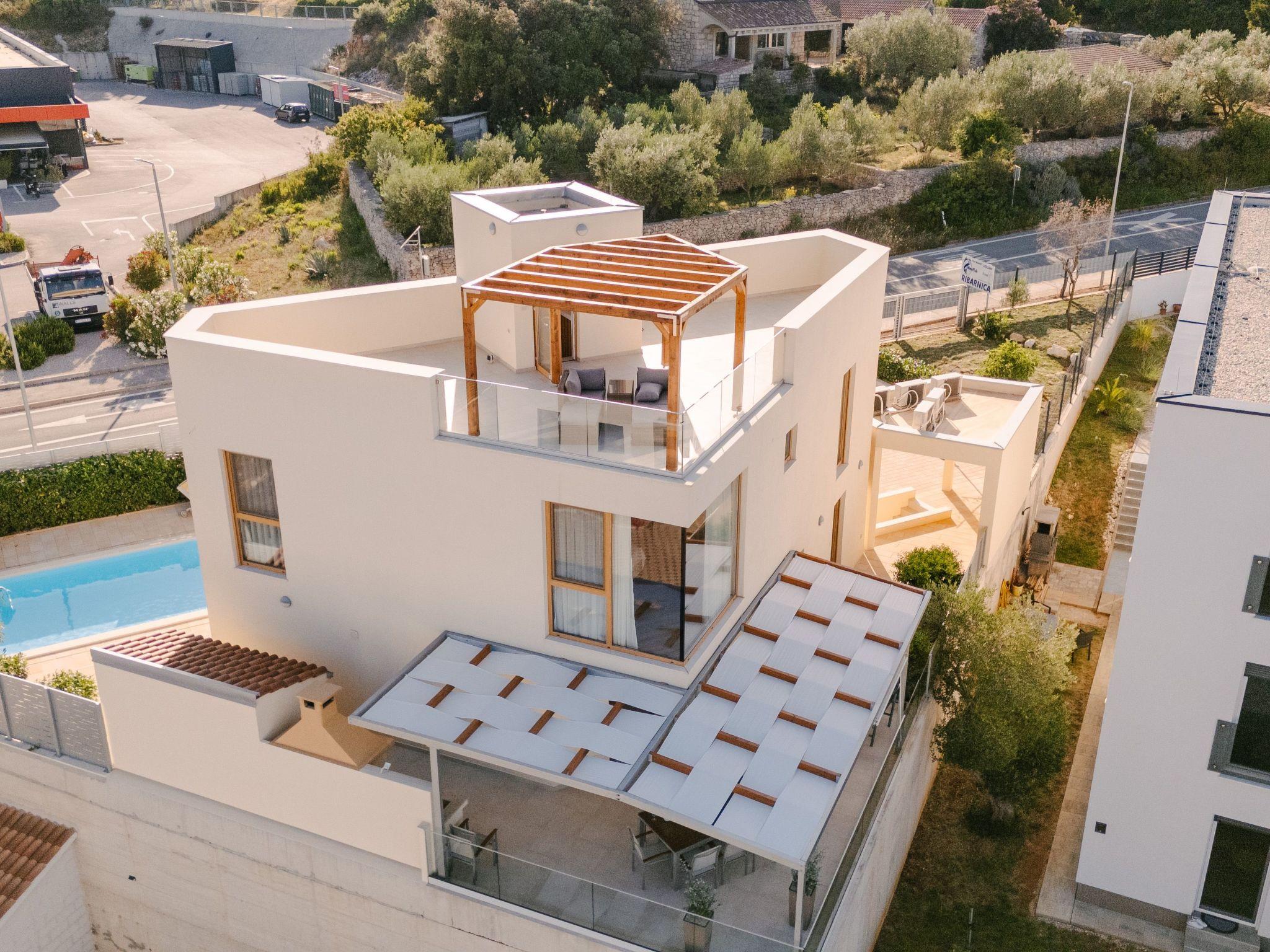 Welcome to our pristine holiday home, nestled in the heart of Preko on the enchanting island of Ugljan. This newly constructed residence, complete with a heated private swimming pool, promises an unforgettable getaway experience. Ugljan stands out for its seamless connectivity to Zadar via frequent ferry and boat services, with the international airport just a short distance from the ferry terminal. Revel in the luxury of direct views to the crystal-clear sea and enjoy the convenience of being just a 3-minute stroll from the acclaimed Blue Flag-certified Jaz Beach.Inside, the house boasts contemporary elegance with 4 stylish bedrooms and 3 sophisticated bathrooms, designed for your comfort. The interiors feature high-end Grohe and Laufen fixtures, prestigious designer tiles, and sleek glass shower doors, complementing the quiet-mode air conditioning available in every room for a restful sleep. The main living space is an open-plan area, equipped with an ultra-modern DanKüchen kitchen, offering top-tier appliances and all the amenities necessary to prepare gourmet meals. For added convenience, high-speed Starlink Wi-Fi is accessible throughout, alongside a dedicated workspace in the basement, furnished with a desk, monitor, and ergonomic chair for those needing to stay connected.The exterior of this holiday haven is equally impressive. Enclosed within a fully fenced spacious yard adorned with lush greenery, guests can enjoy the solar-powered shower, the stone BBQ area equipped for both meat and fish, and dine al fresco on the ground-floor terrace, large enough to host up to 10 guests. The rooftop terrace affords panoramic 360° views, perfect for soaking in the breathtaking scenery or entertaining under the stars. Both the pool terrace and the living room are fitted with ceiling Bluetooth speakers to enhance your outdoor and indoor leisure moments.Situated across from the island's largest supermarket and café, this location couldn't be more ideal. Steps away from Jaz Beach, the largest sandy beach in Preko, and a short car ride from essential services like a first aid clinic, pharmacies, and a dental office, convenience is at your doorstep. With complimentary wooden sun loungers on all local beaches and a scenic road opposite the house leading to trails ideal for walking, hiking, and cycling, the promise of adventure and relaxation is ever-present.Our holiday home is the epitome of modern luxury and convenience, designed for those seeking an unforgettable island retreat. Whether you're indulging in the comfort of our elegant interiors, basking in the serenity of our lush garden, or exploring the vibrant environment of Ugljan, every moment promises to be exceptional. Secure your stay with us for a journey filled with relaxation, adventure, and picturesque views at every turn.