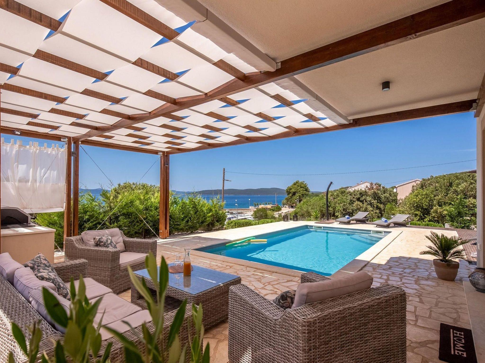 Villa Gellia. It is located in the Zadar archipelago on the island of Ugljan, 20 meters from the sea in a peaceful environment. The island of Ugljan is called the green island, covered with pines, olives, figs, and vines, and is ideal for all lovers of natural beauty.The villa is located in an ideal position, created for enjoying the charms of nature and the beauty of the sea that surrounds it. The panoramic view from the villa will take your breath away every morning.It was built in 2017 and since then it has been serving the owners and satisfied guests who return again and again to enjoy the charms of summer in this magical location.On its 180m2, this villa contains three spacious bedrooms with double beds, one children's bedroom, three beautiful bathrooms, one separate toilet, a modern kitchen and a living room. The lounge area around the pool with barbecue covered by a pergola offers complete privacy with an incredible view of the sunset.